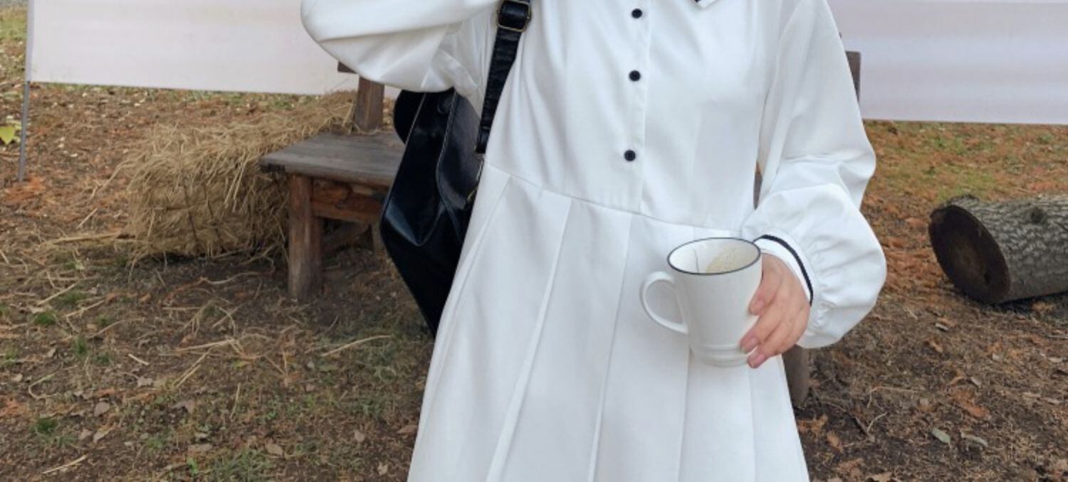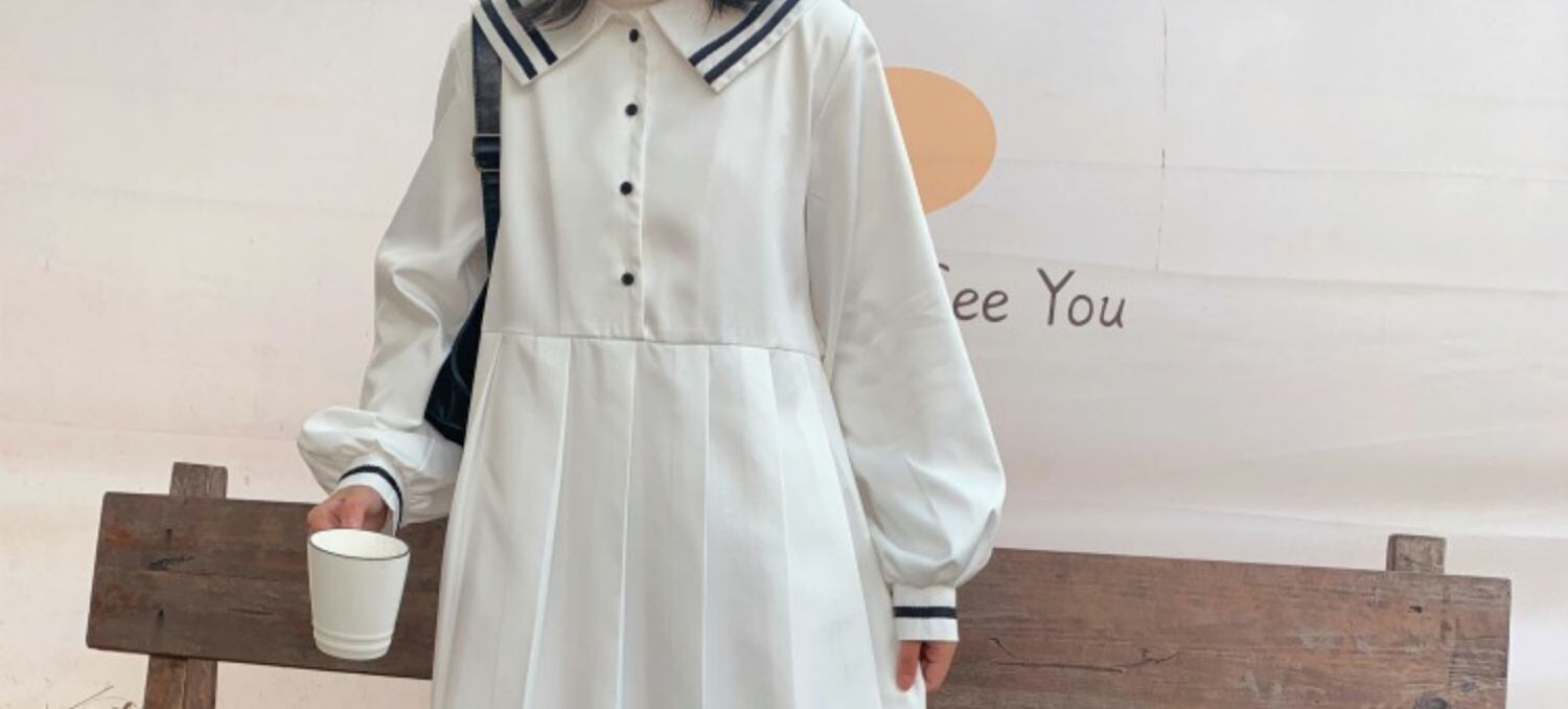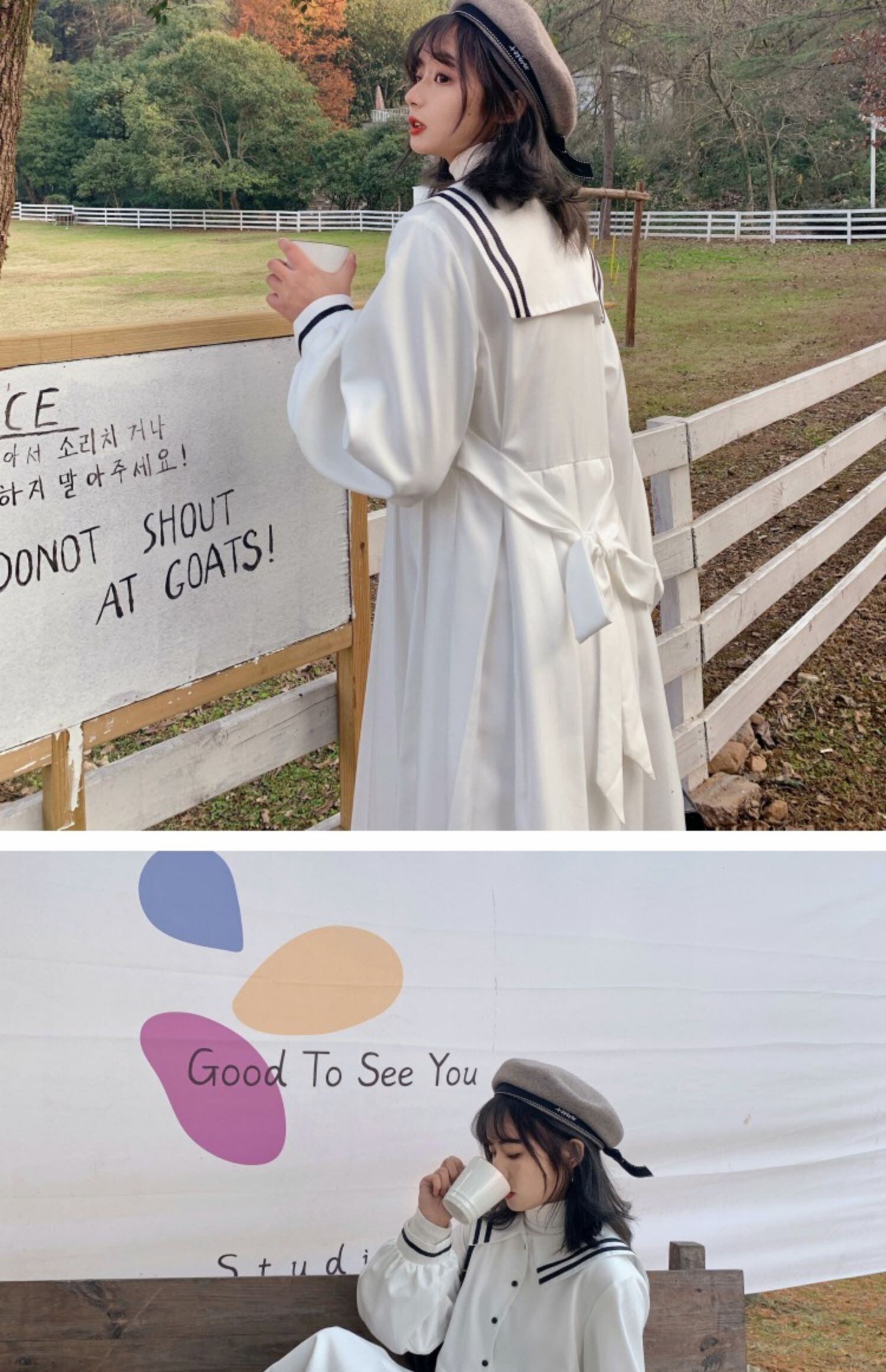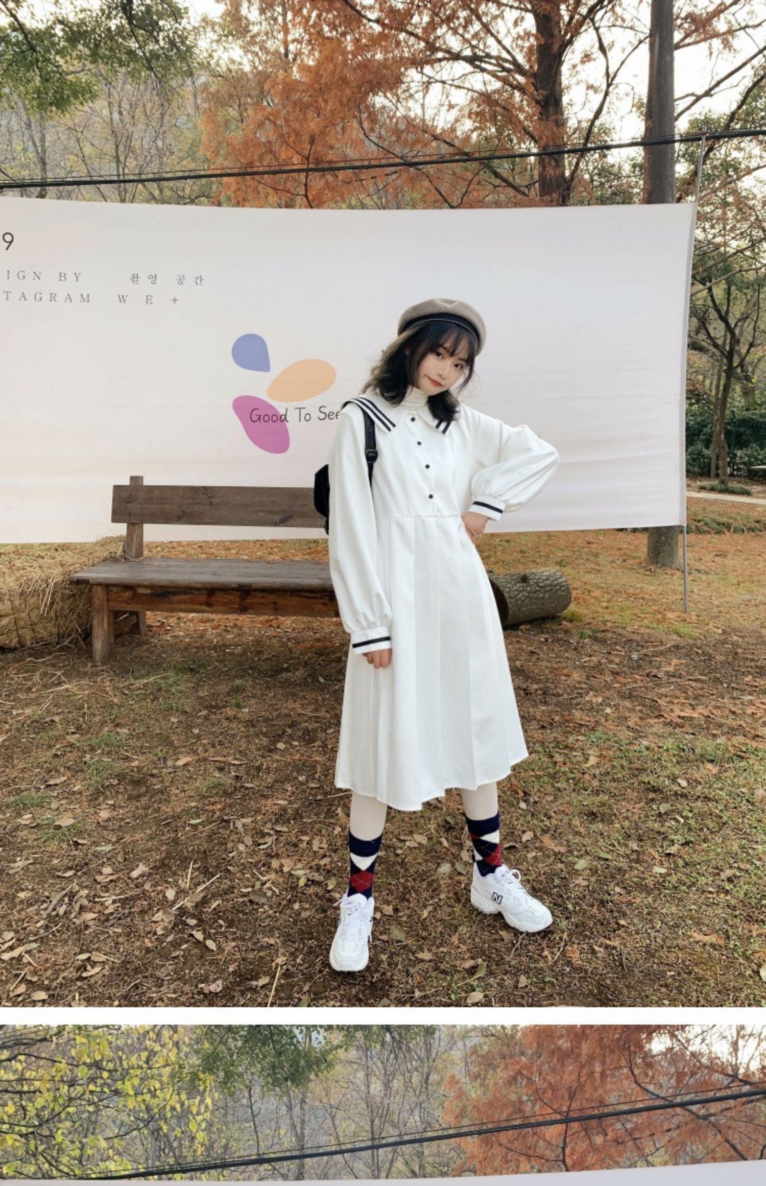 スタイルネイビーカラードレス スプリングホワイトオータムロングスカート 春物 秋物 萌量不足24715183796