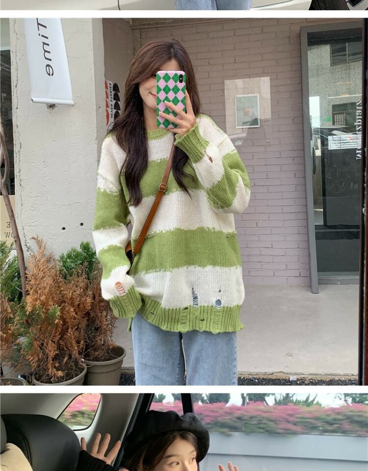 ストライプセーター レディースオータムウィンタートップス ルーズ ロング 秋物 冬物 萌量不足60778312096