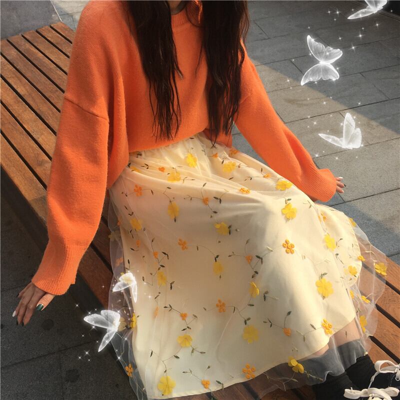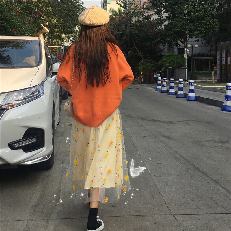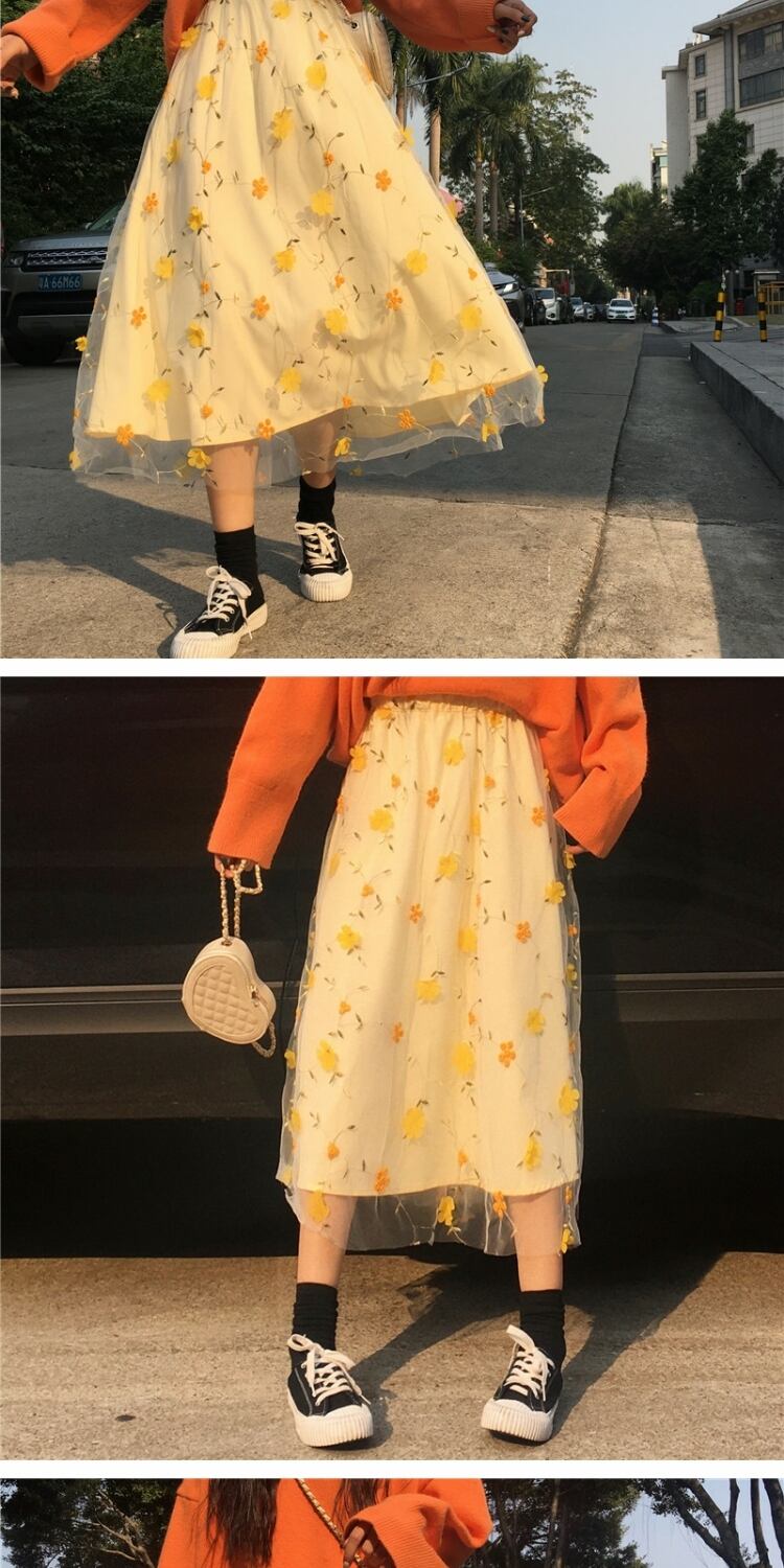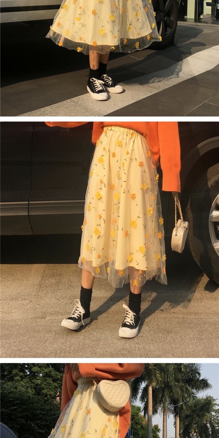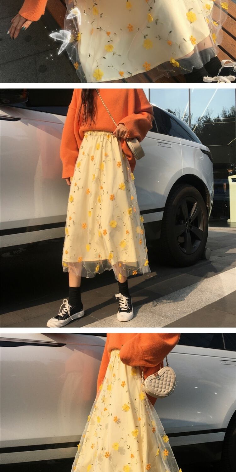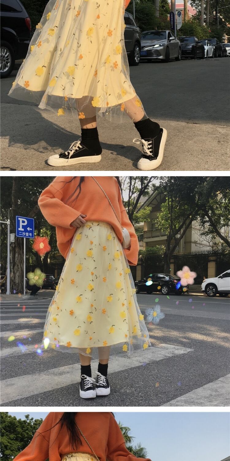 スプリングスカート ロングメッシュAライン 春物 萌量不足13652410301