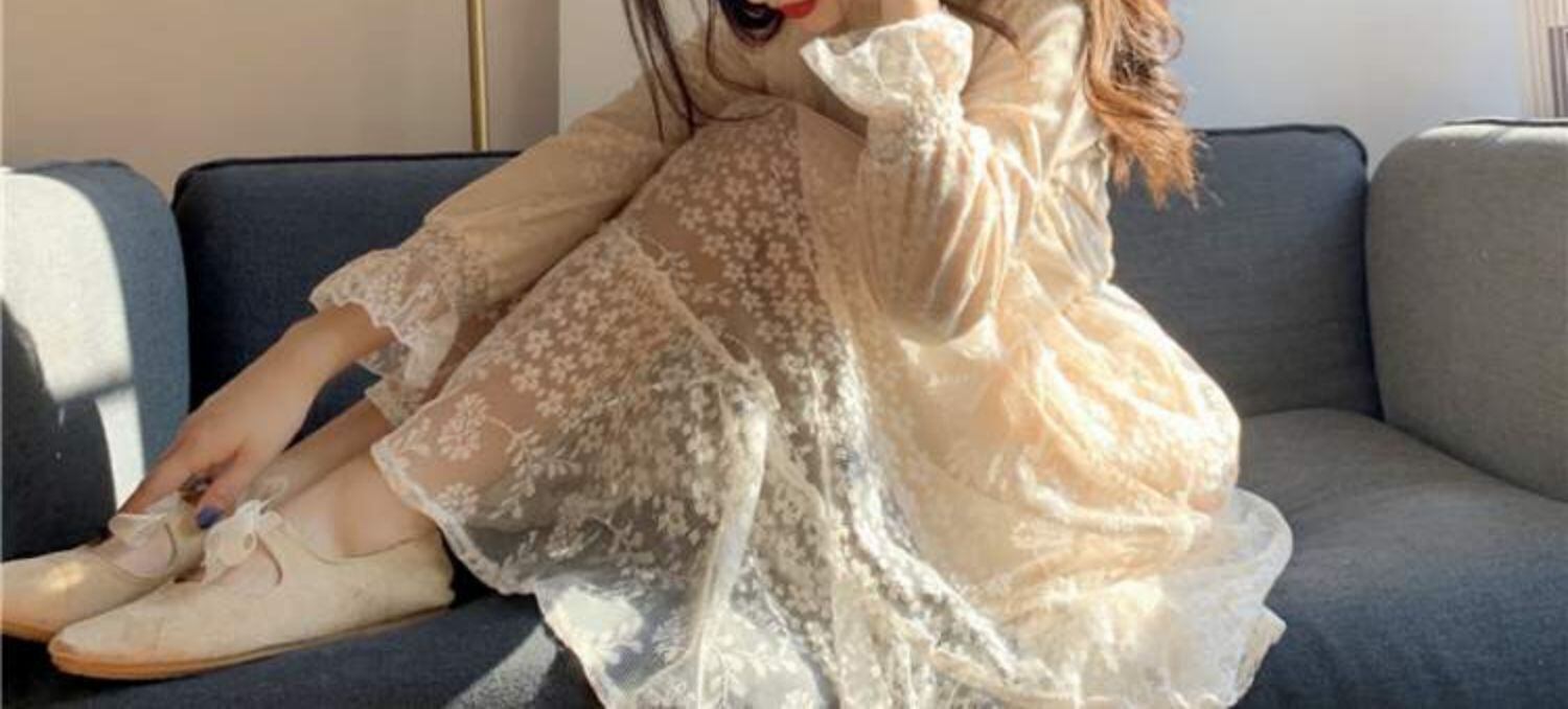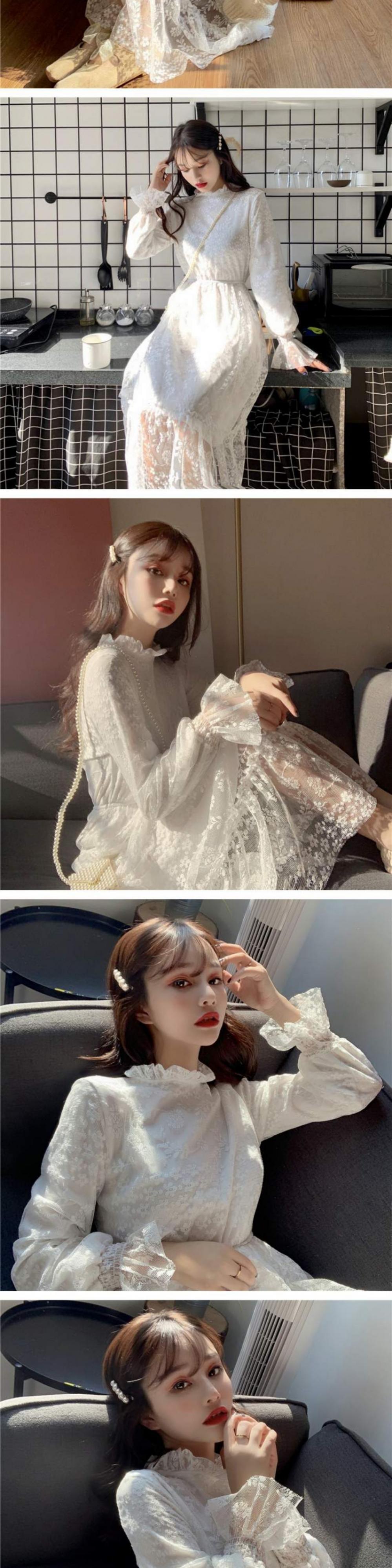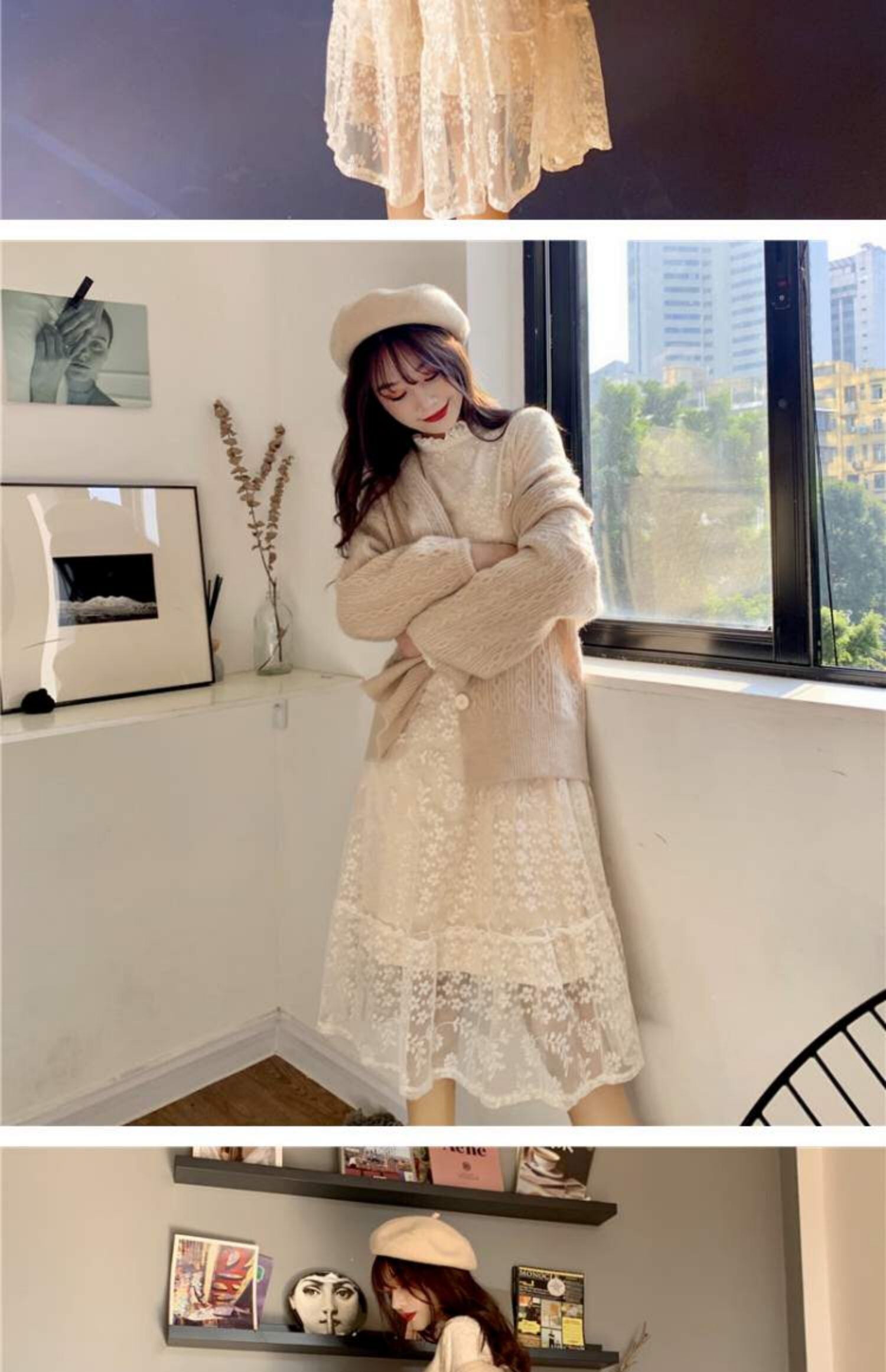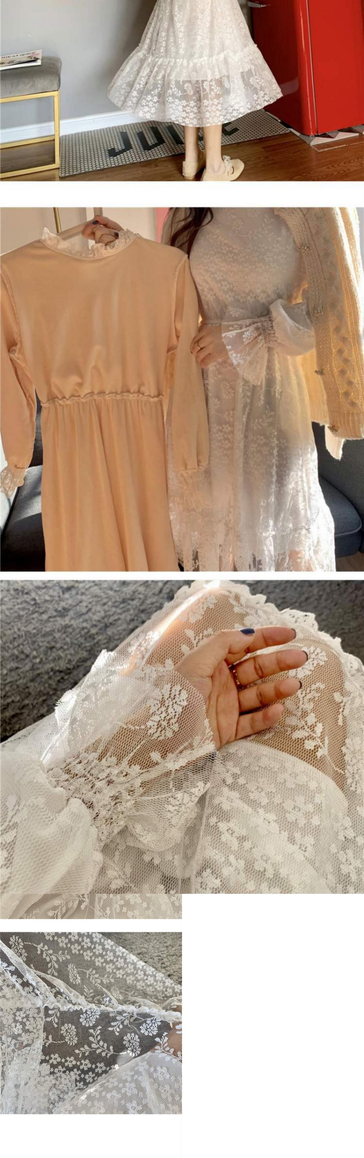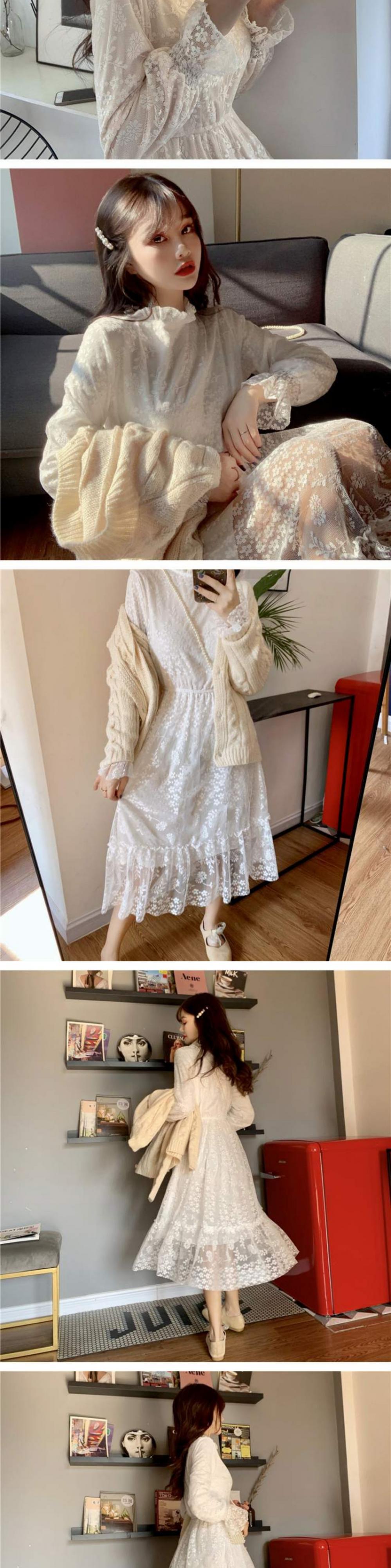 スプリングオータムウィンターレースドレス Aラインスカート 大人ガーリー スウィート キュート カジュアル 春物 秋物 冬物 萌量不足73097029085