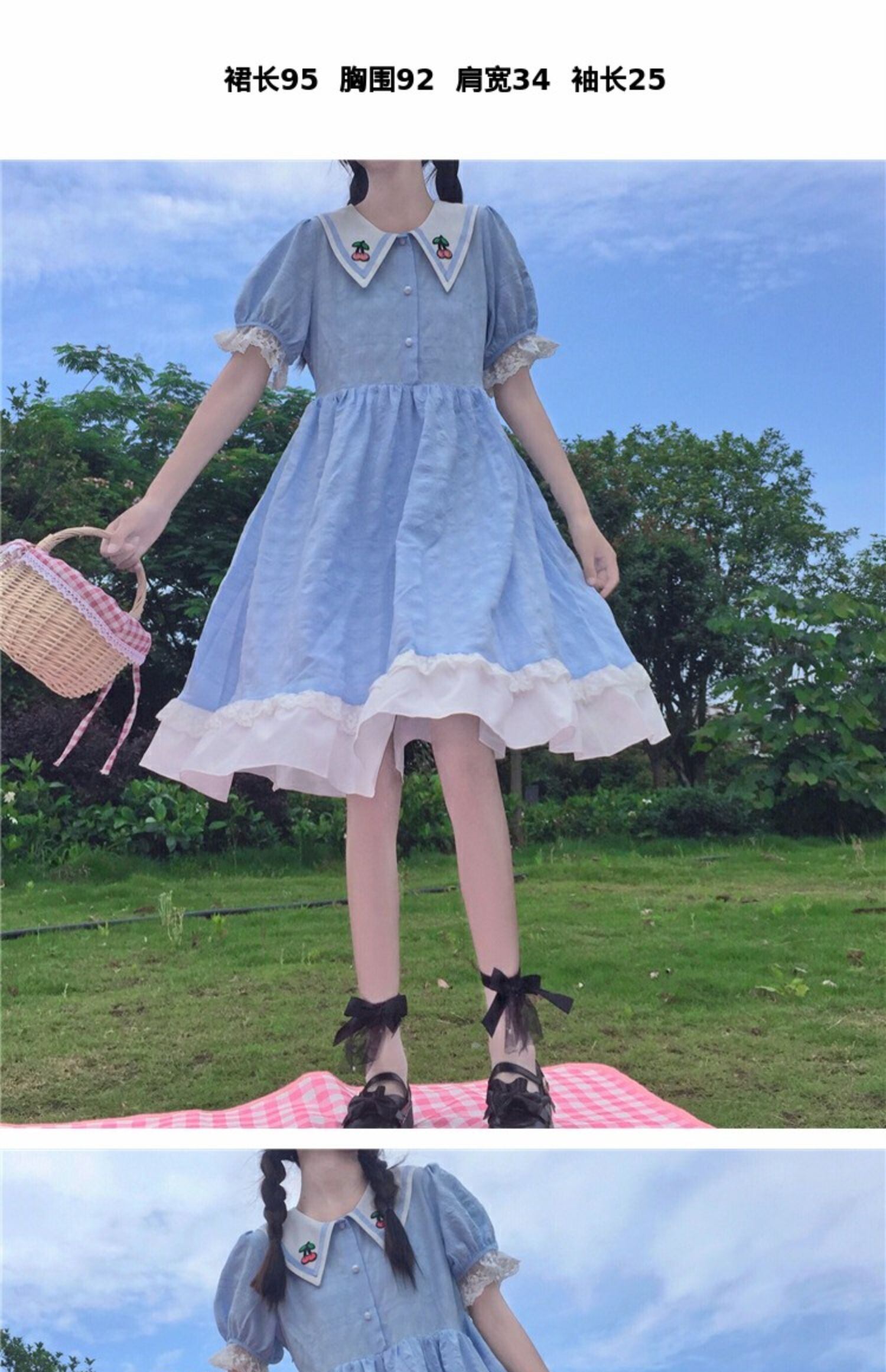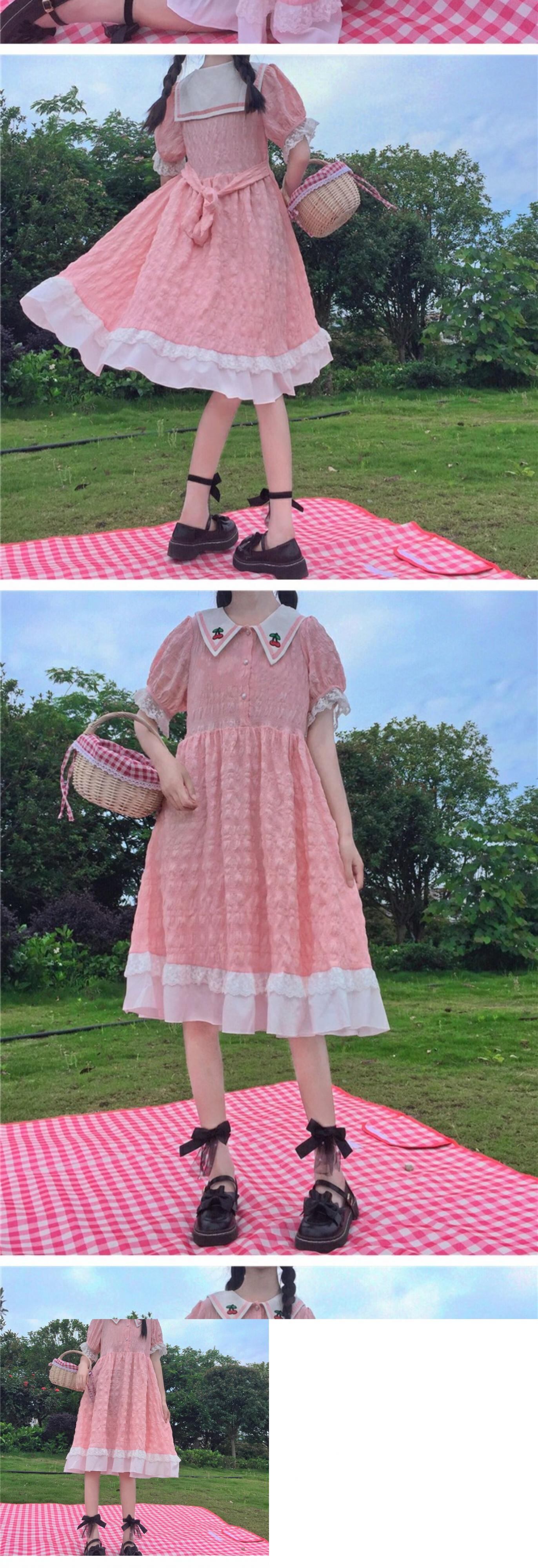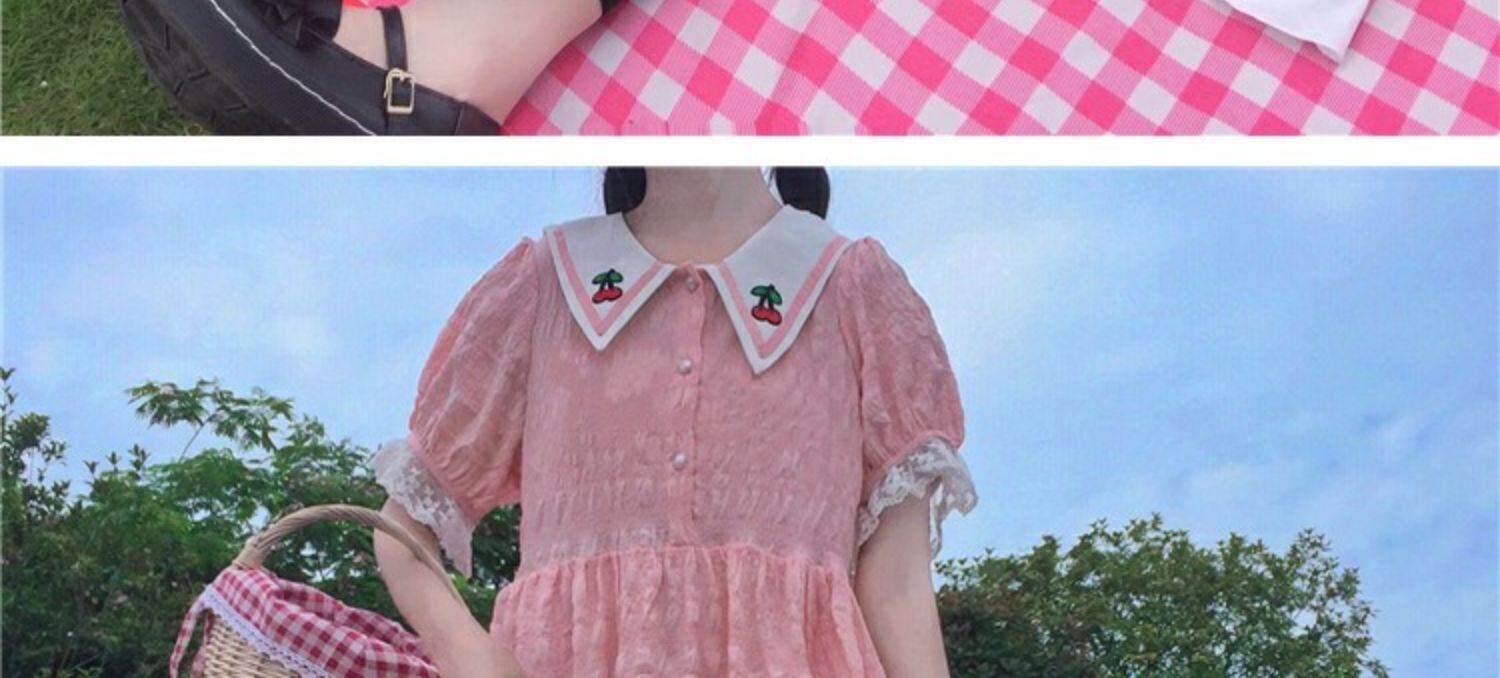 スカート スプリングカラースリーブドレス レッド 刺繍 大人ガーリー スウィート キュート カジュアル 春物 萌量不足30425725060