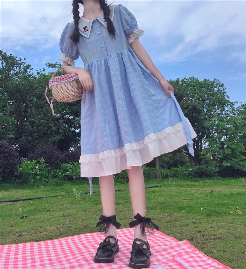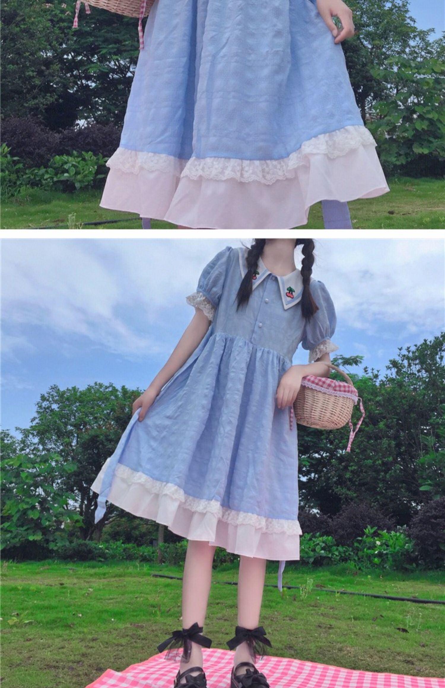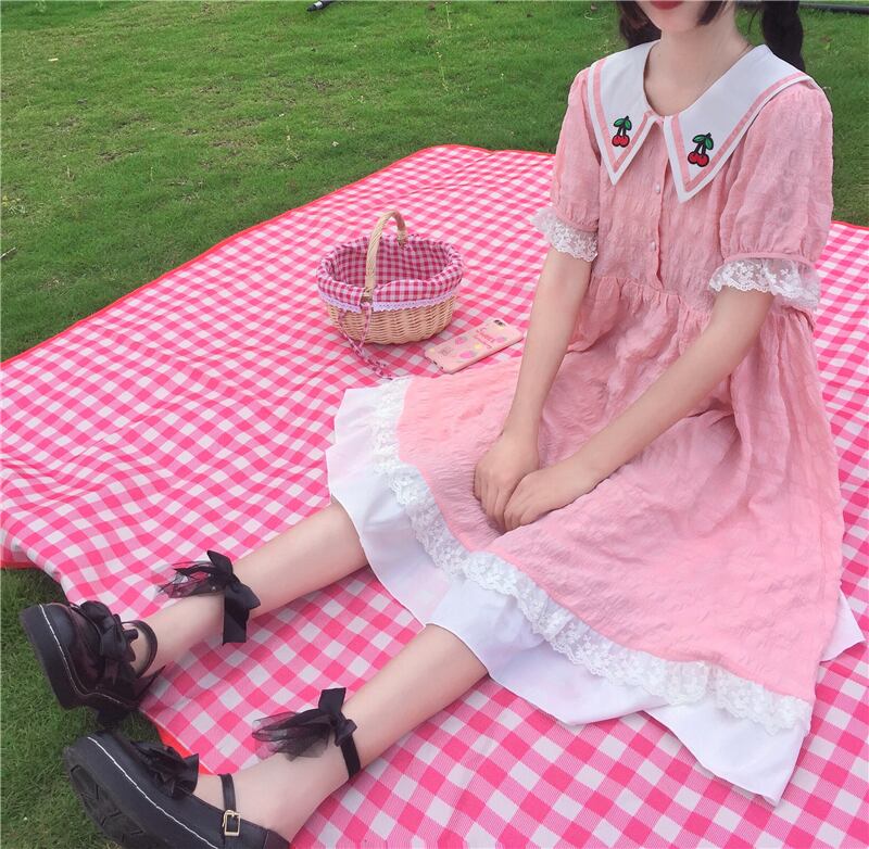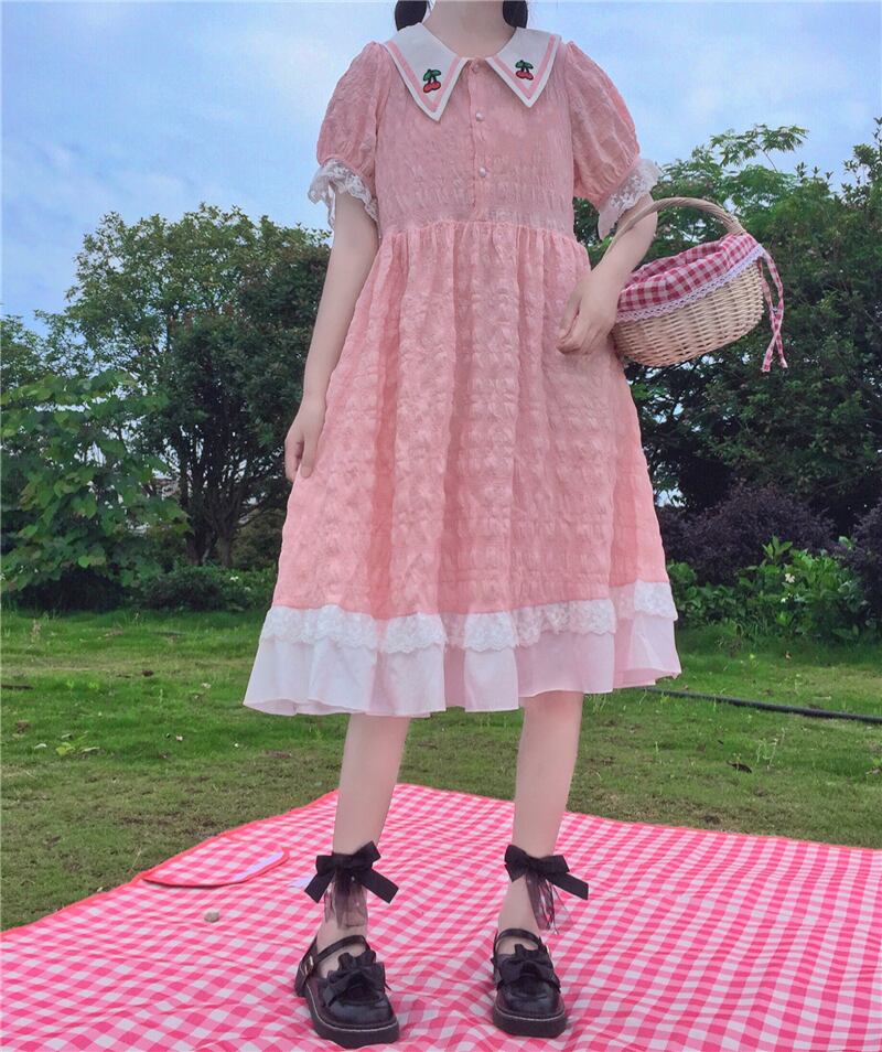 スカート スプリングカラースリーブドレス レッド 刺繍 大人ガーリー スウィート キュート カジュアル 春物 萌量不足30425725060