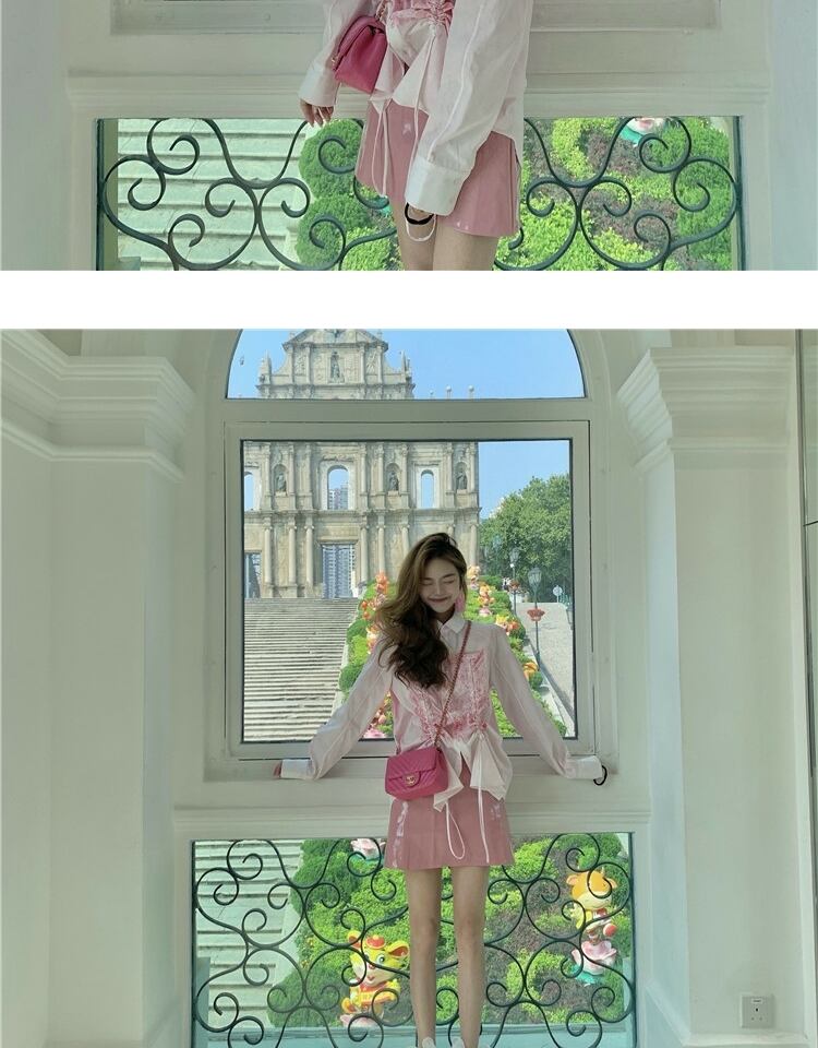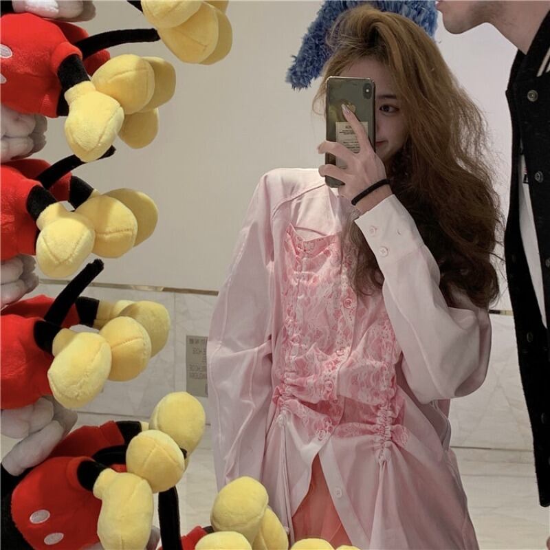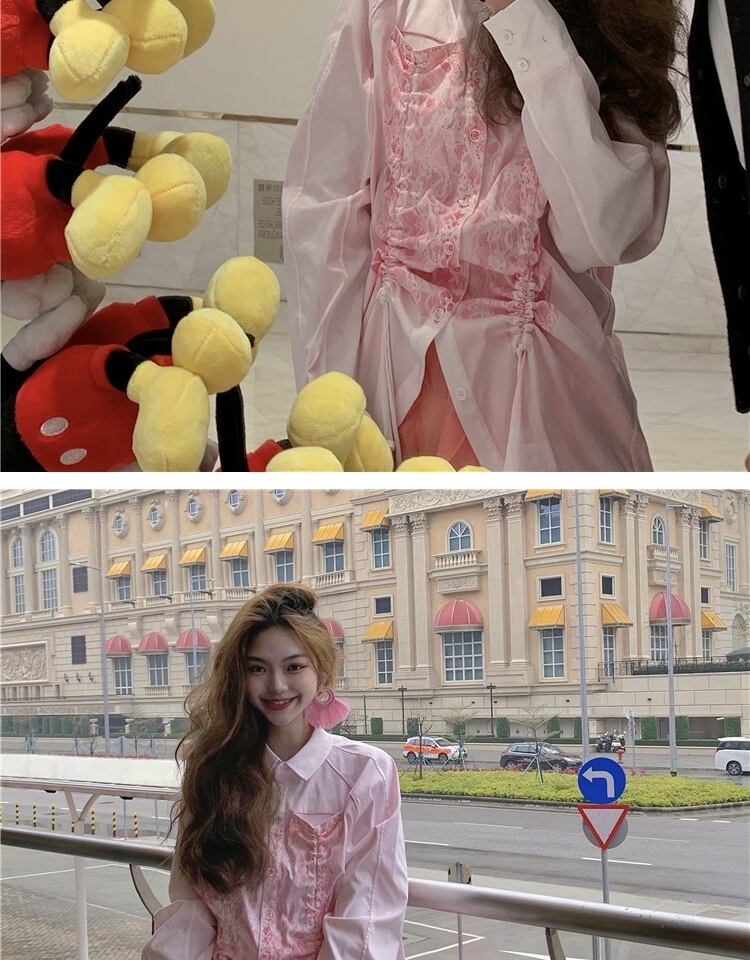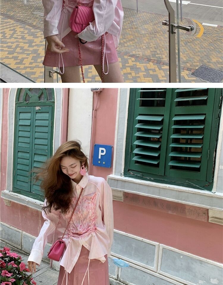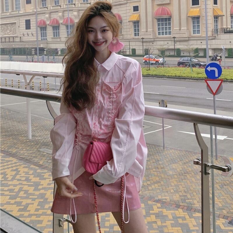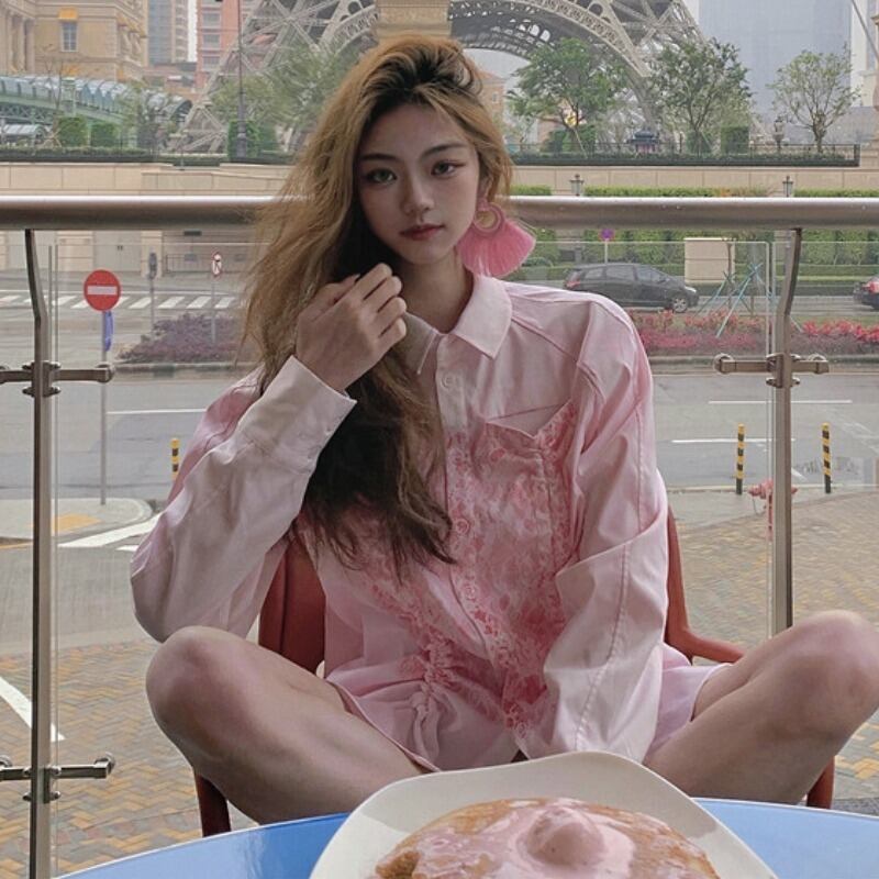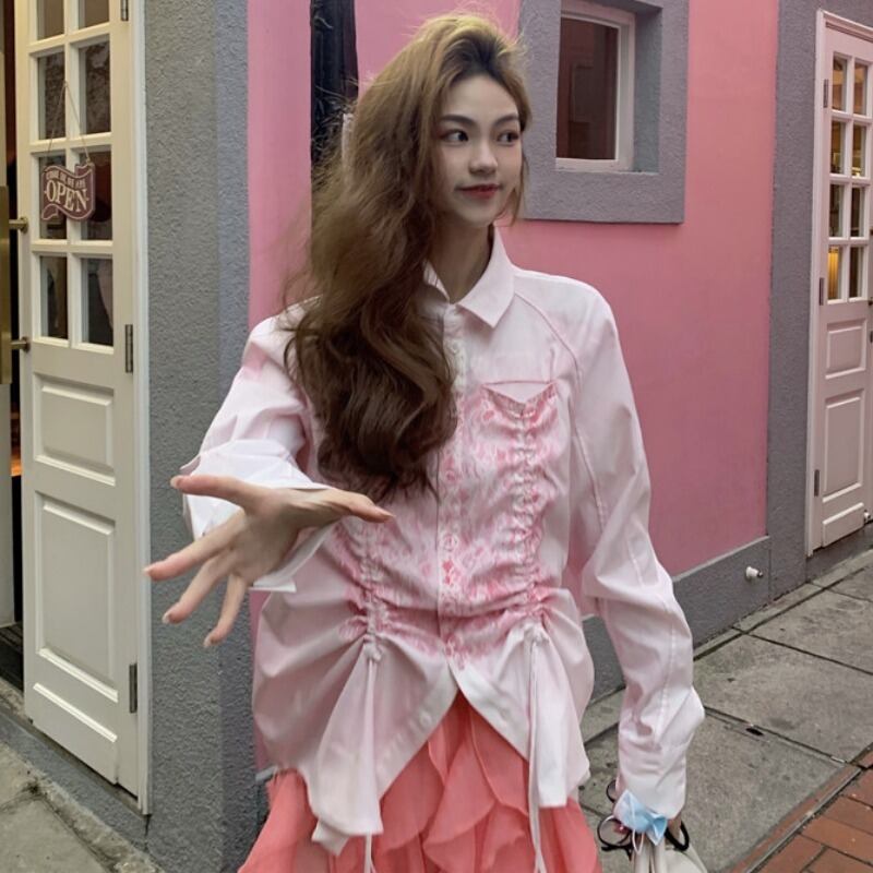 プリント柄ブラウス レディーススプリングオータムシャツ ピンク 春物 秋物 萌量不足90775355533