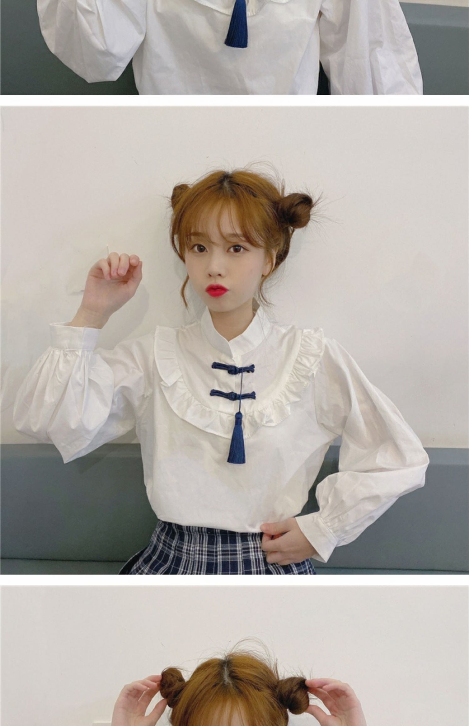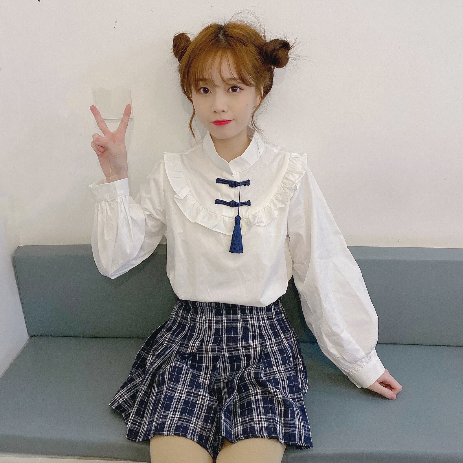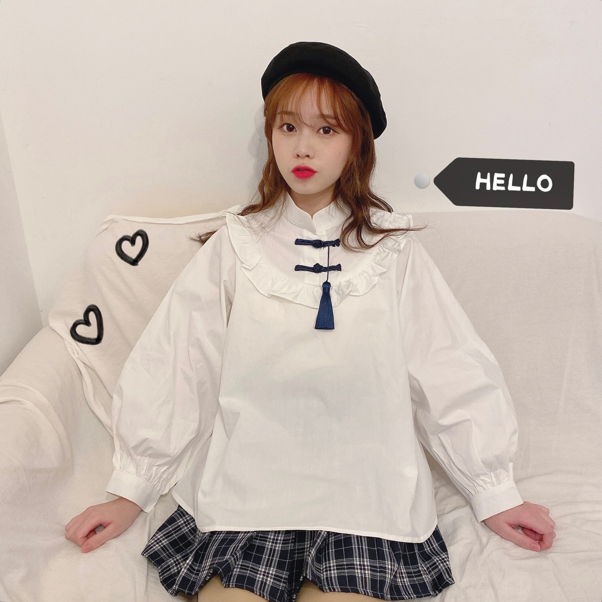スプリングオータムスタンダードボタンシャツ カラートップス ロング レトロ 春物 秋物 萌量不足38824895982