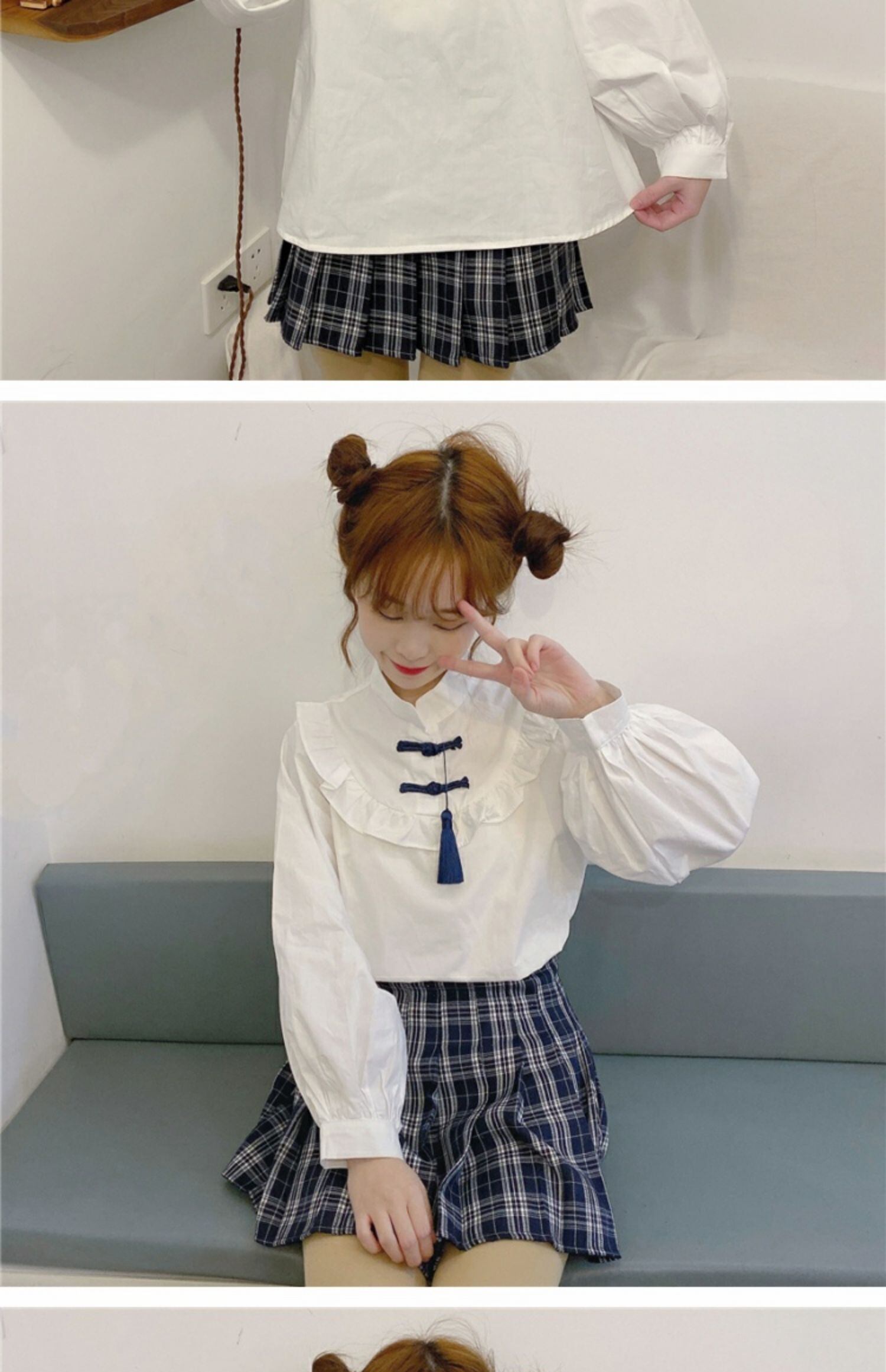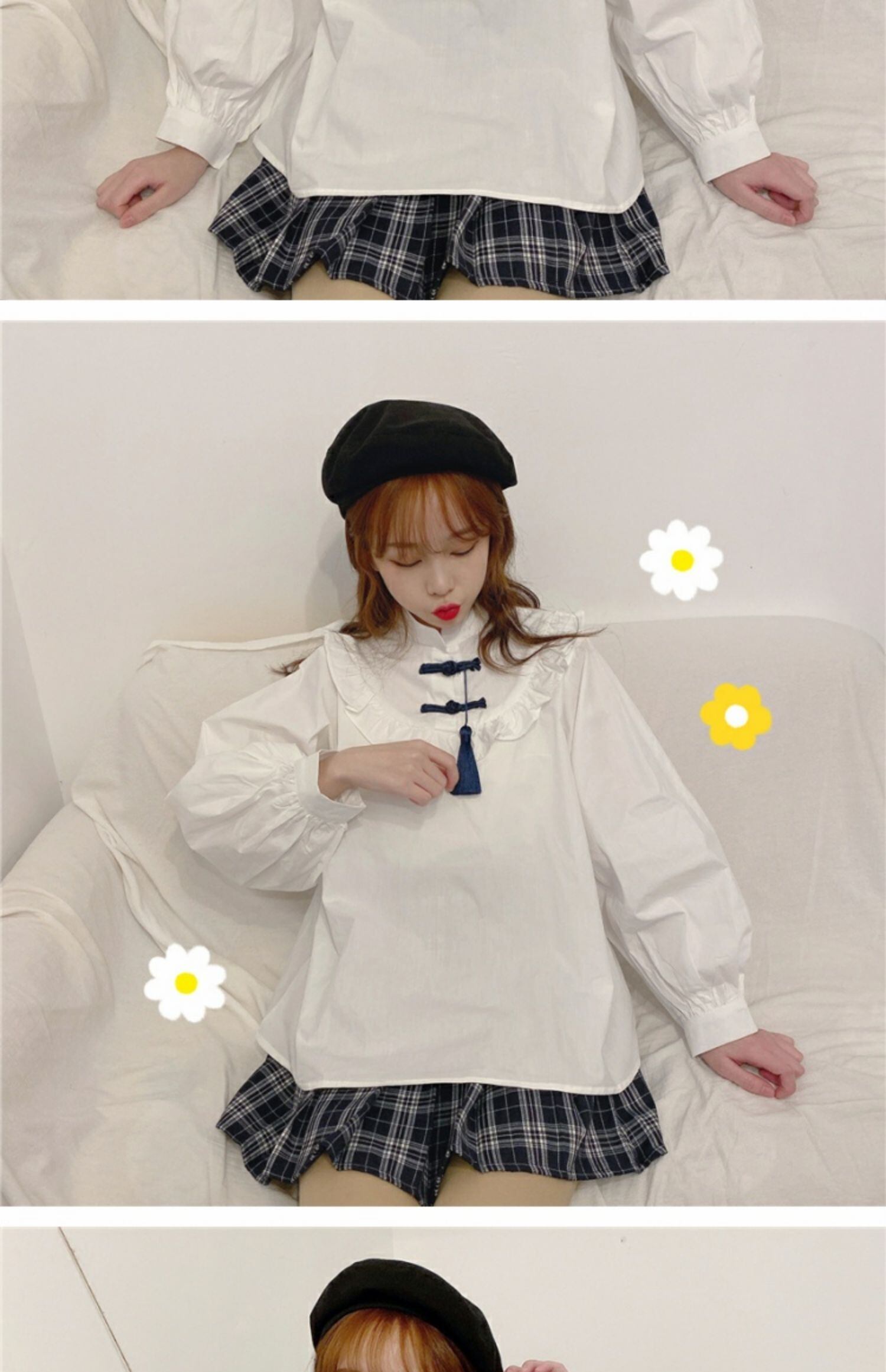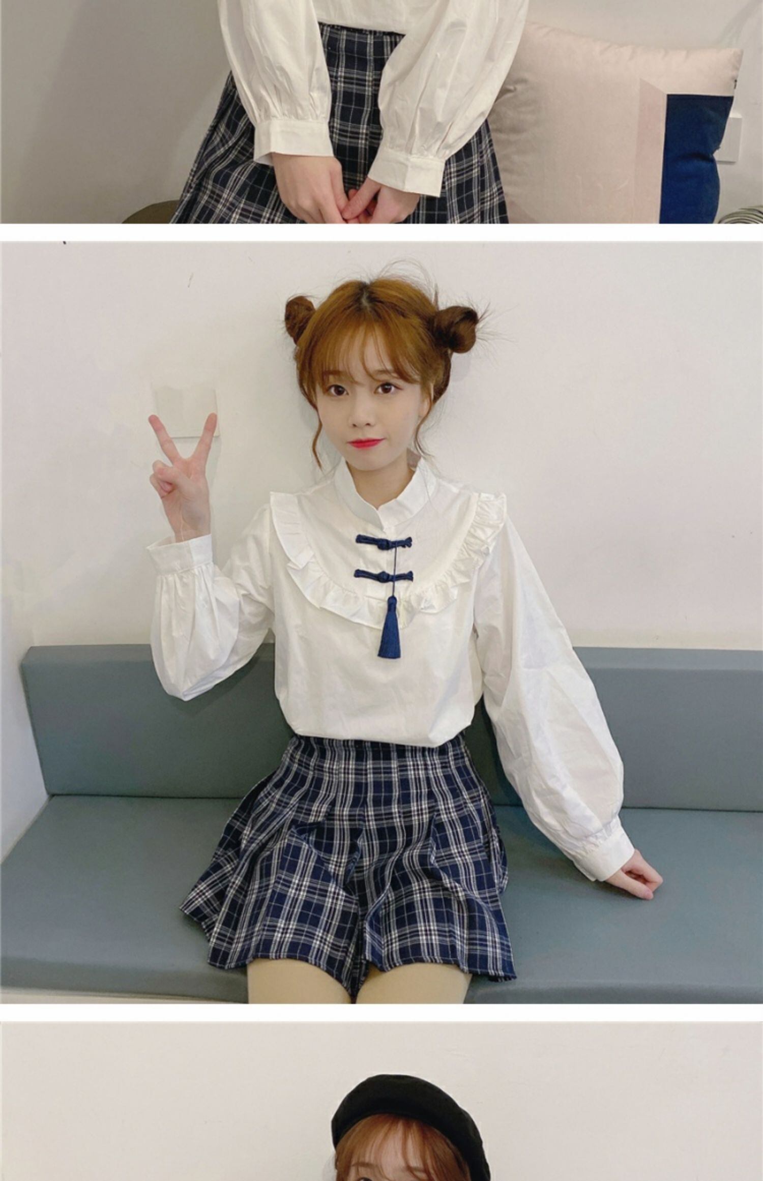 スプリングオータムスタンダードボタンシャツ カラートップス ロング レトロ 春物 秋物 萌量不足38824895982