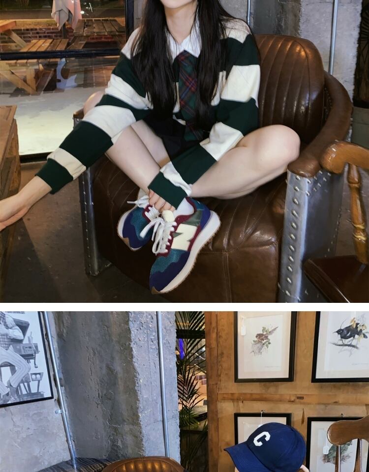 スタンダードシャツ カラープルオーバー ストライプセーター オータムルーズ ロング レトロ 秋物 ステッチ 萌量不足85046048636
