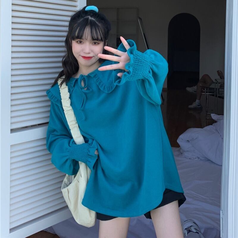 ルーズカラーセーター スプリングオータムトップス ロング レッド 春物 秋物 萌量不足9443951679