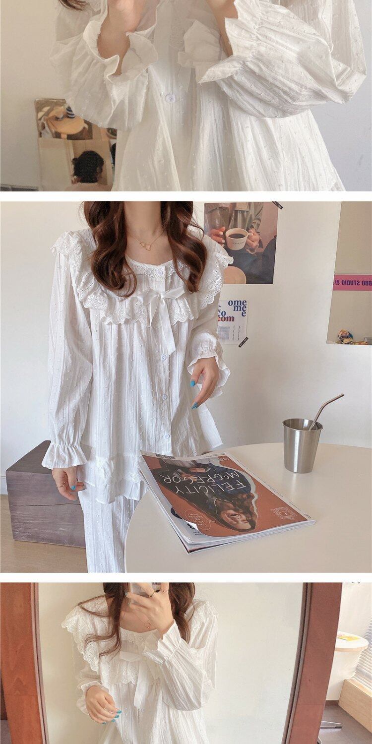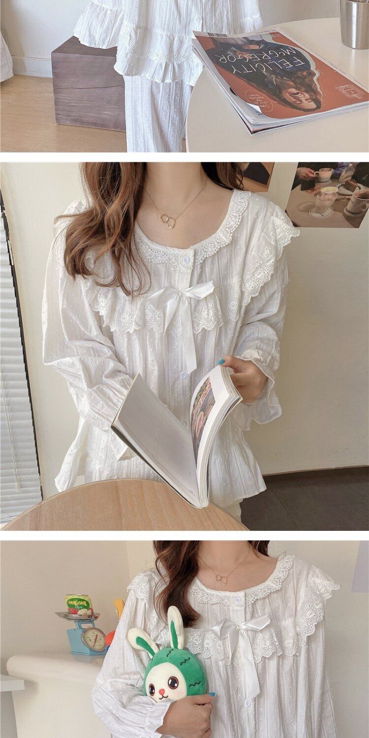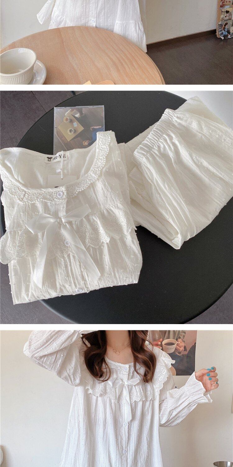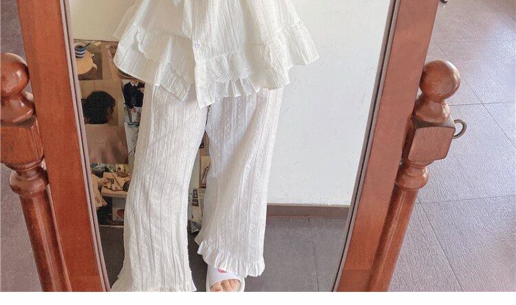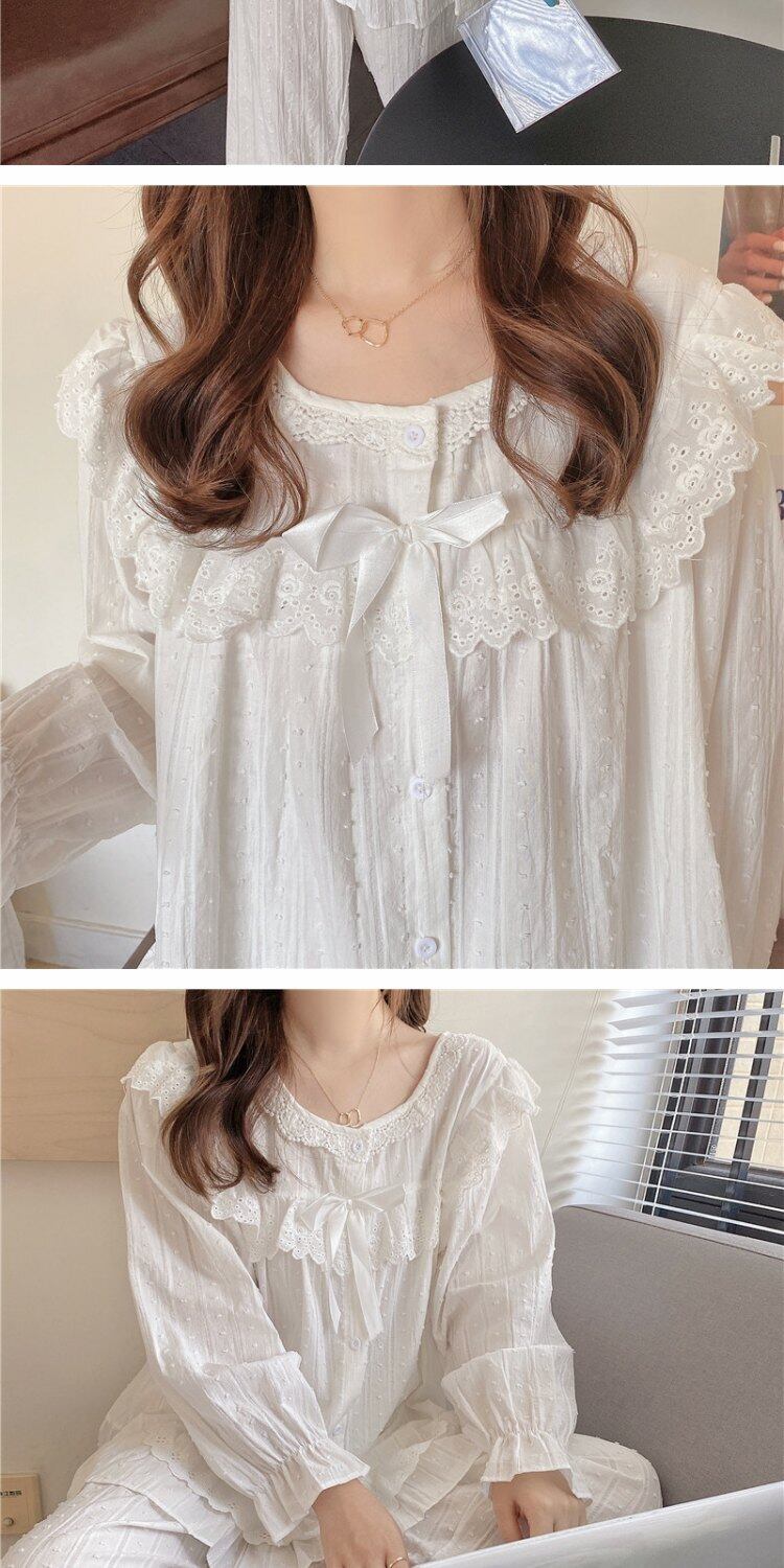 スプリングオータムジャカードレースホワイトカジュアル 春物 秋物 萌量不足35220601189