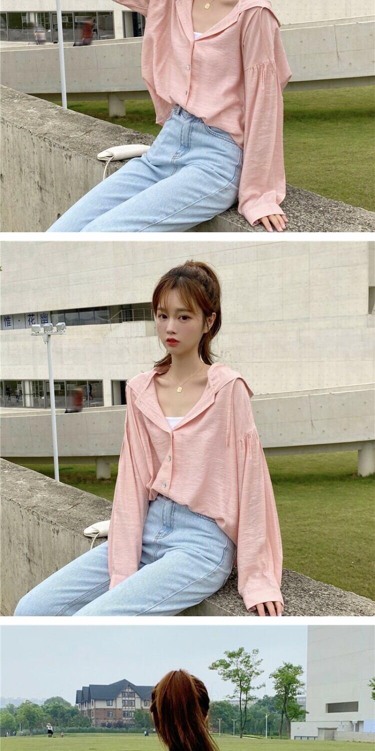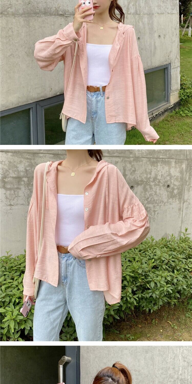 サマー薄手スリーブカジュアルフードジャケット ランタンスリーブ 夏物 萌量不足69865590348
