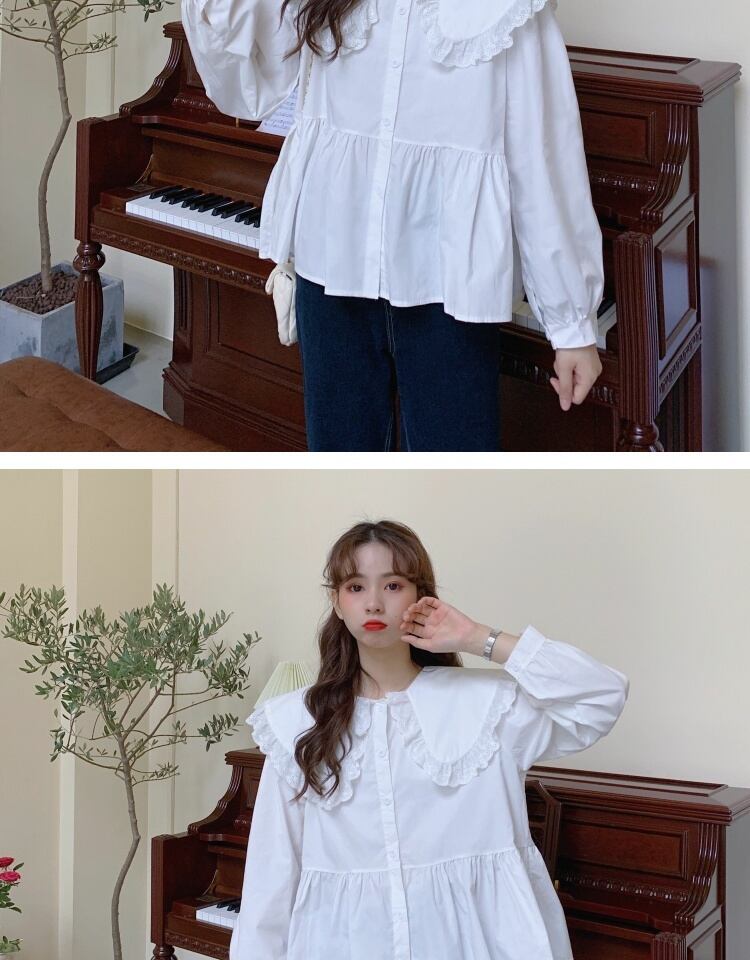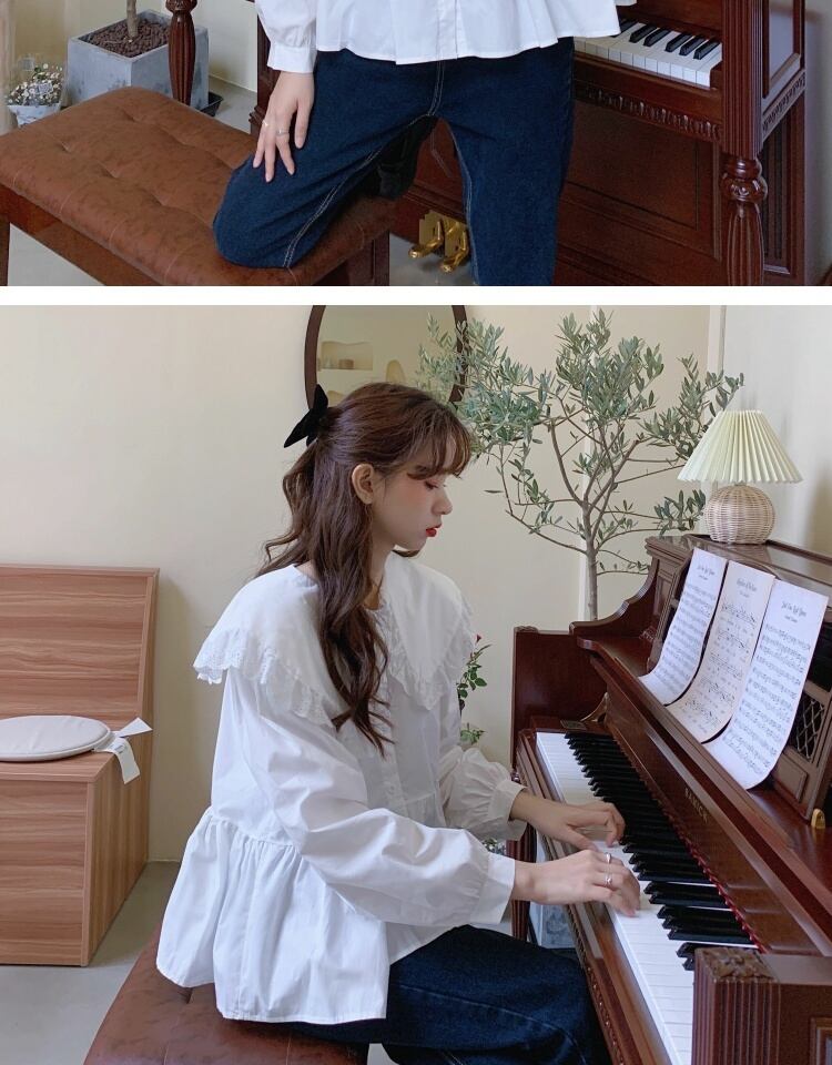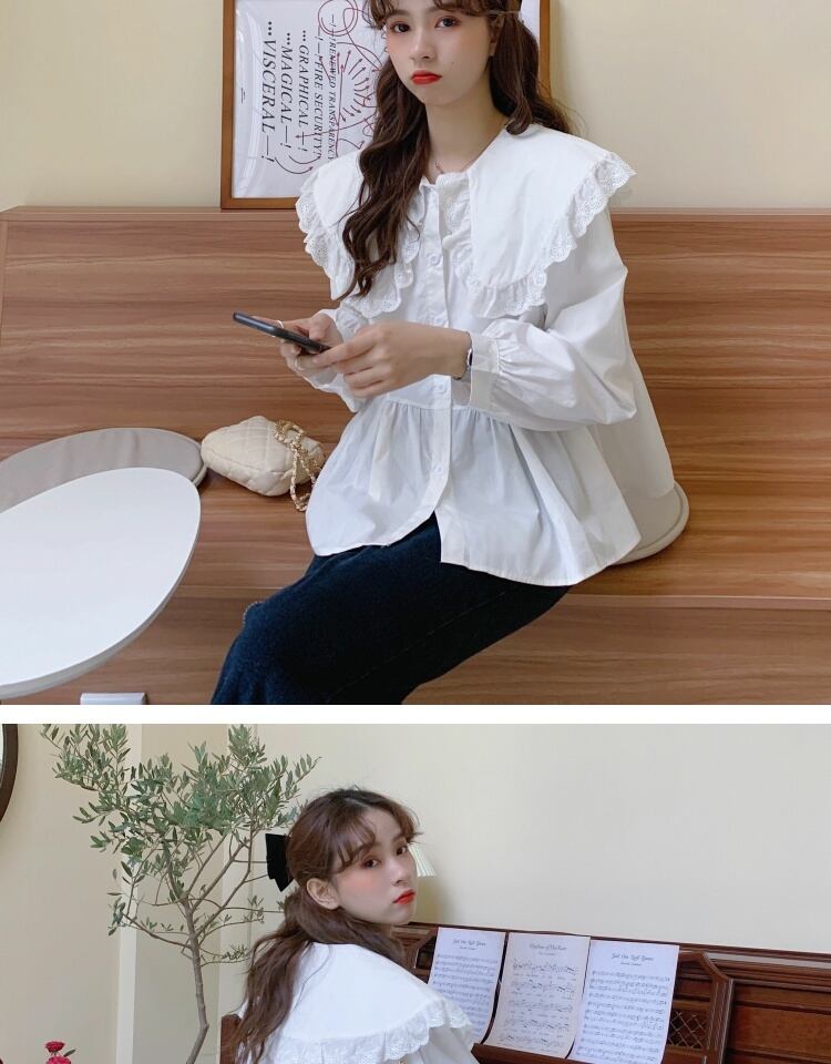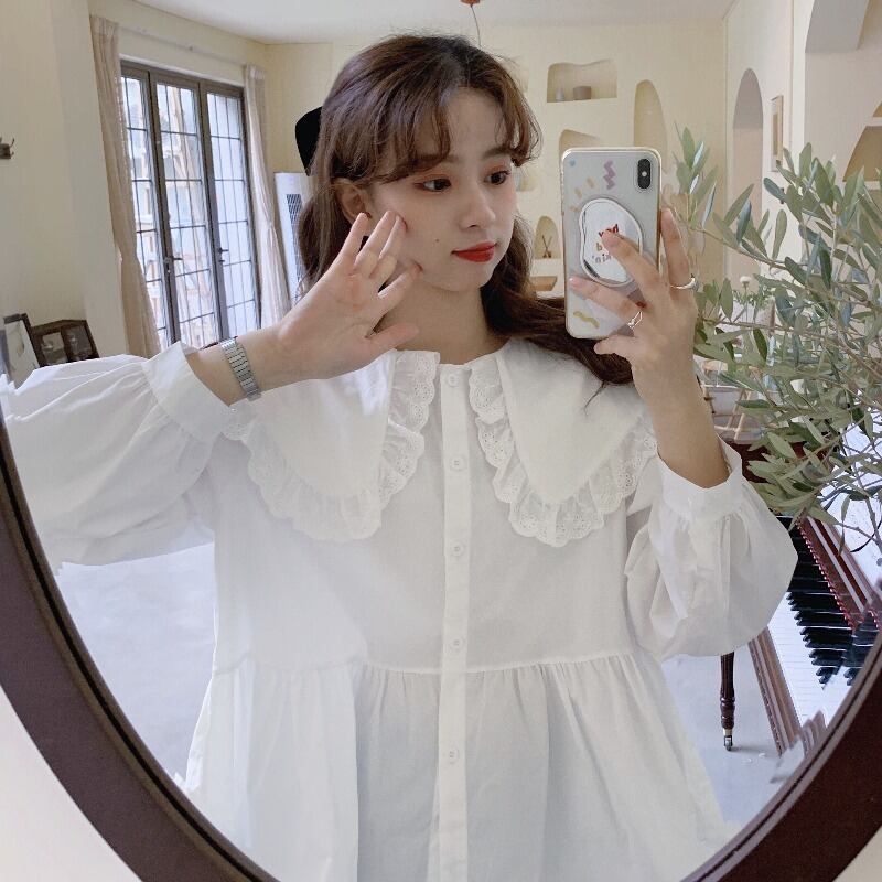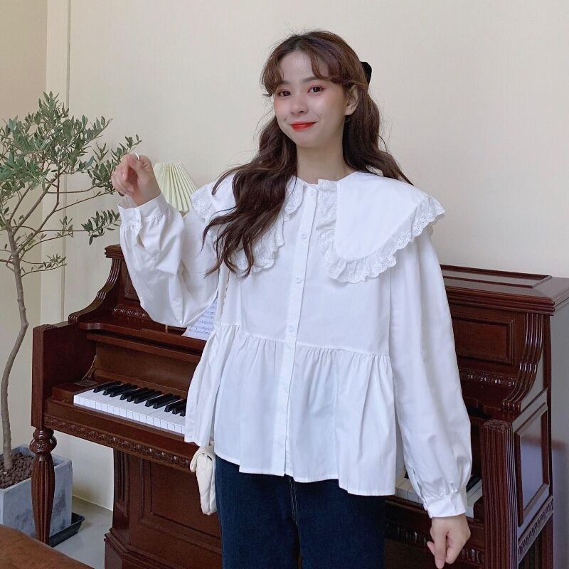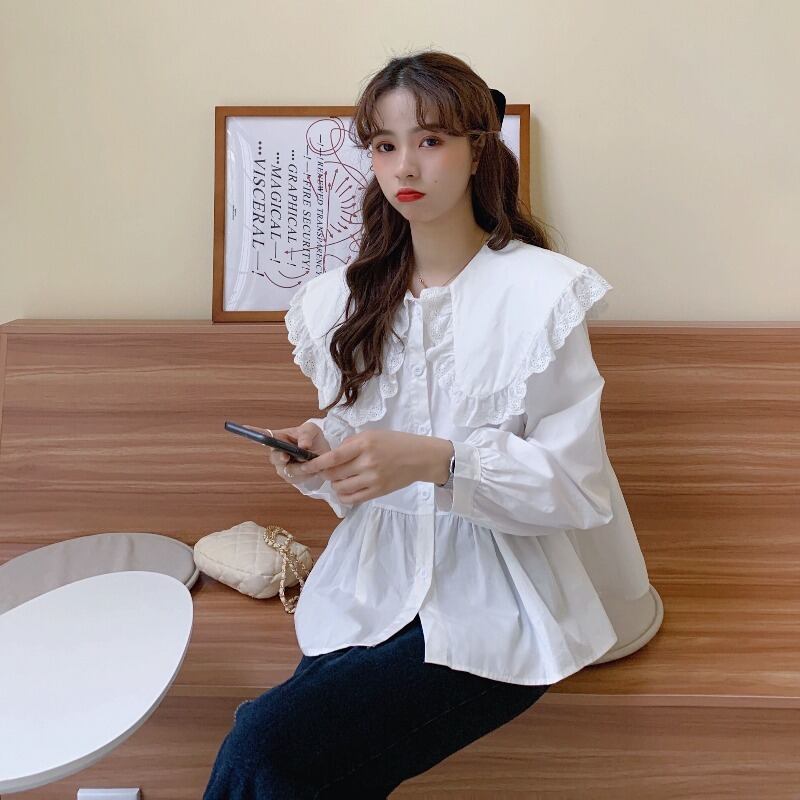 オータムカラーシャツ スプリングスタイルブルーブラウス ジャケット ロング 春物 秋物 萌量不足68575854661