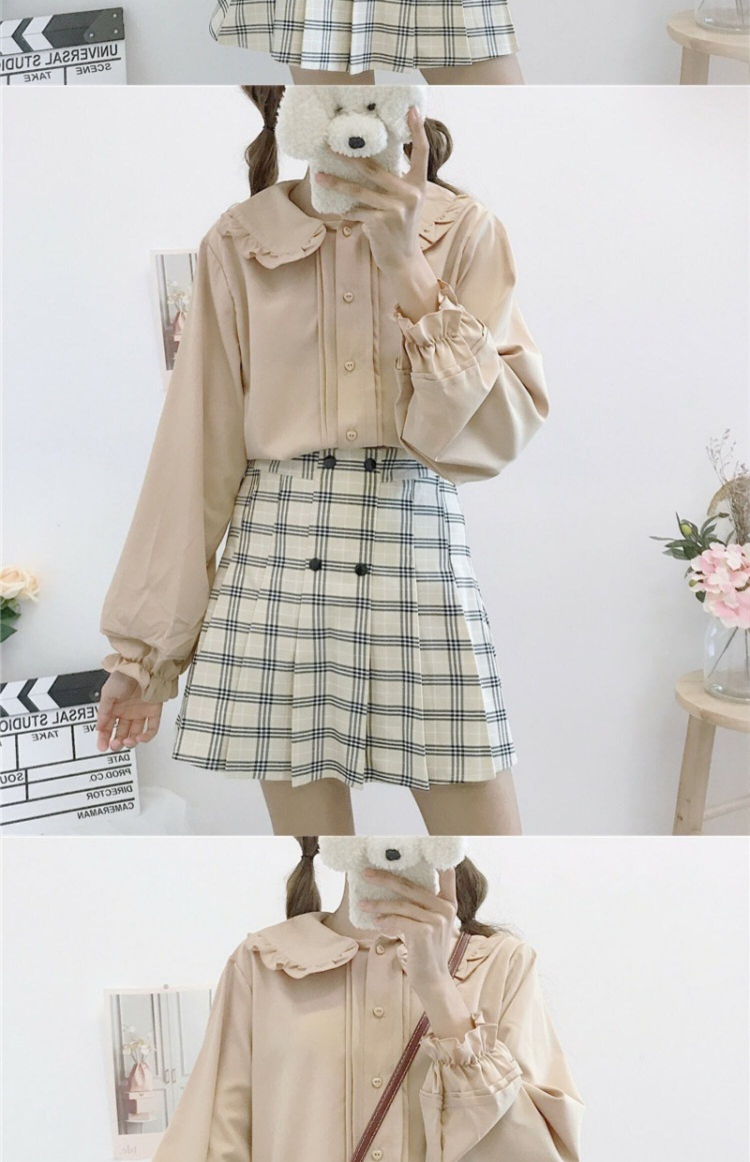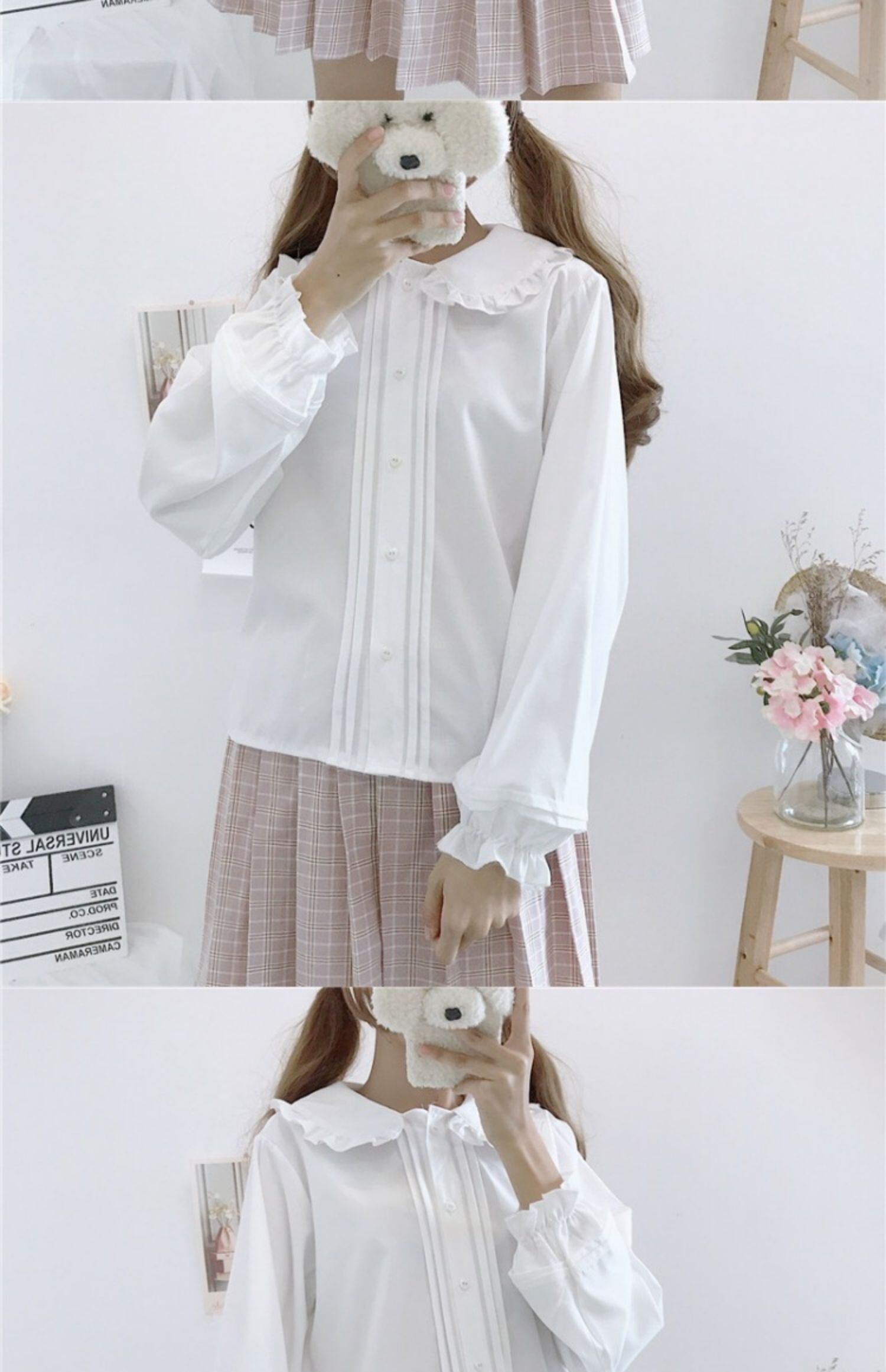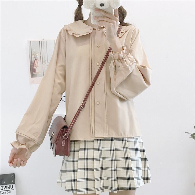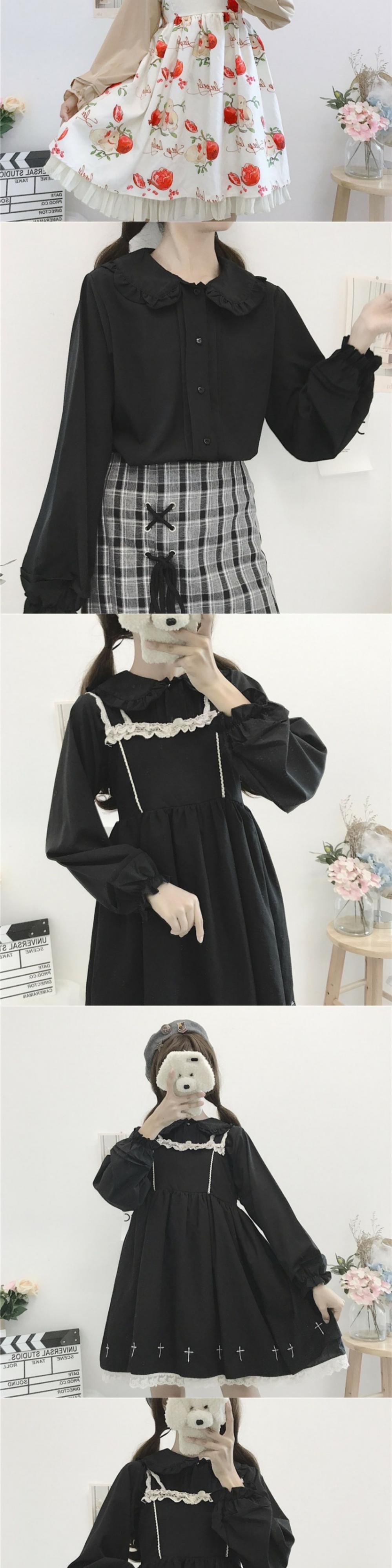 シャツ レディースオータムブラックカラーホワイトトップス 大人ガーリー スウィート キュート カジュアル 秋物 萌量不足11412857343