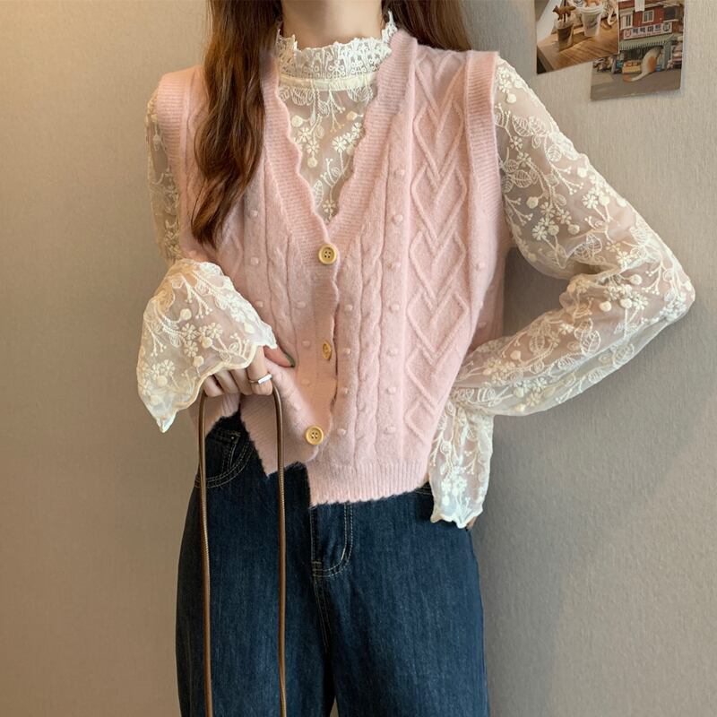 Vネックニットカーディガンセーター スプリングオータムショートジャケット 春物 秋物 萌量不足71066319977