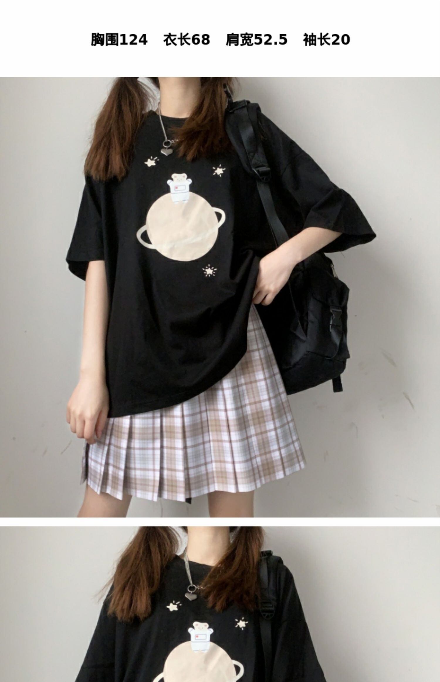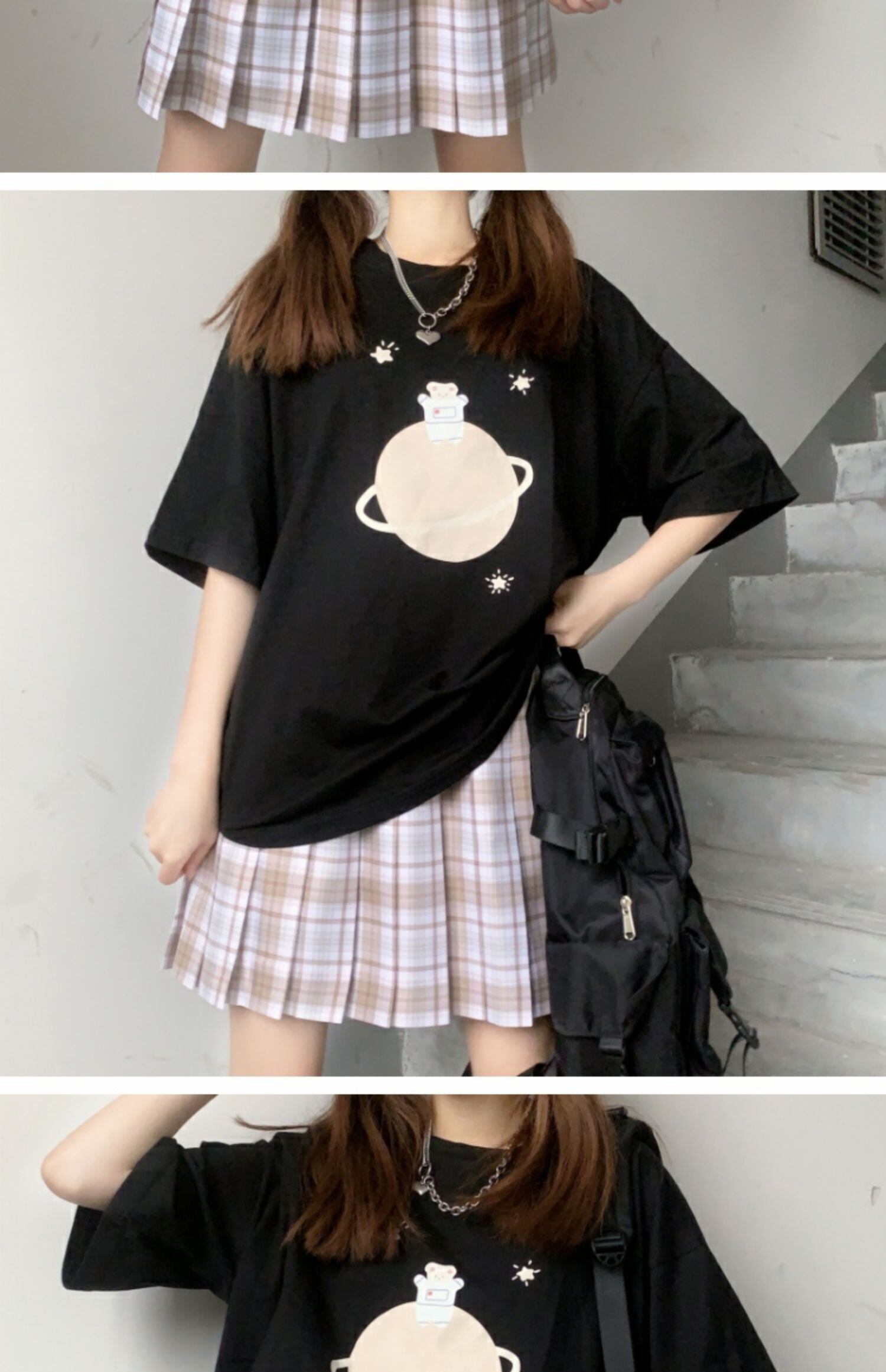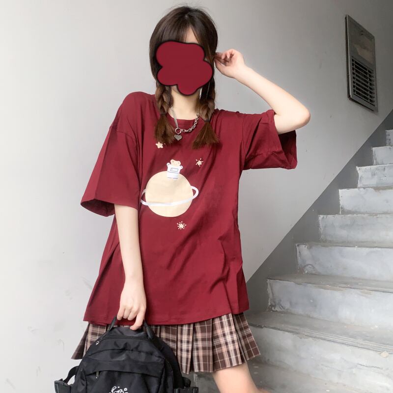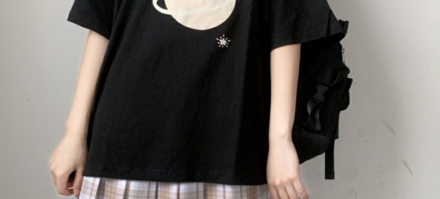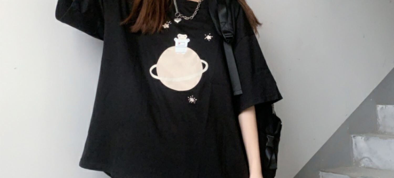 ルーズブラックブラウス プリントTシャツ サマー 大人ガーリー スウィート キュート カジュアル 夏物 萌量不足37505892199