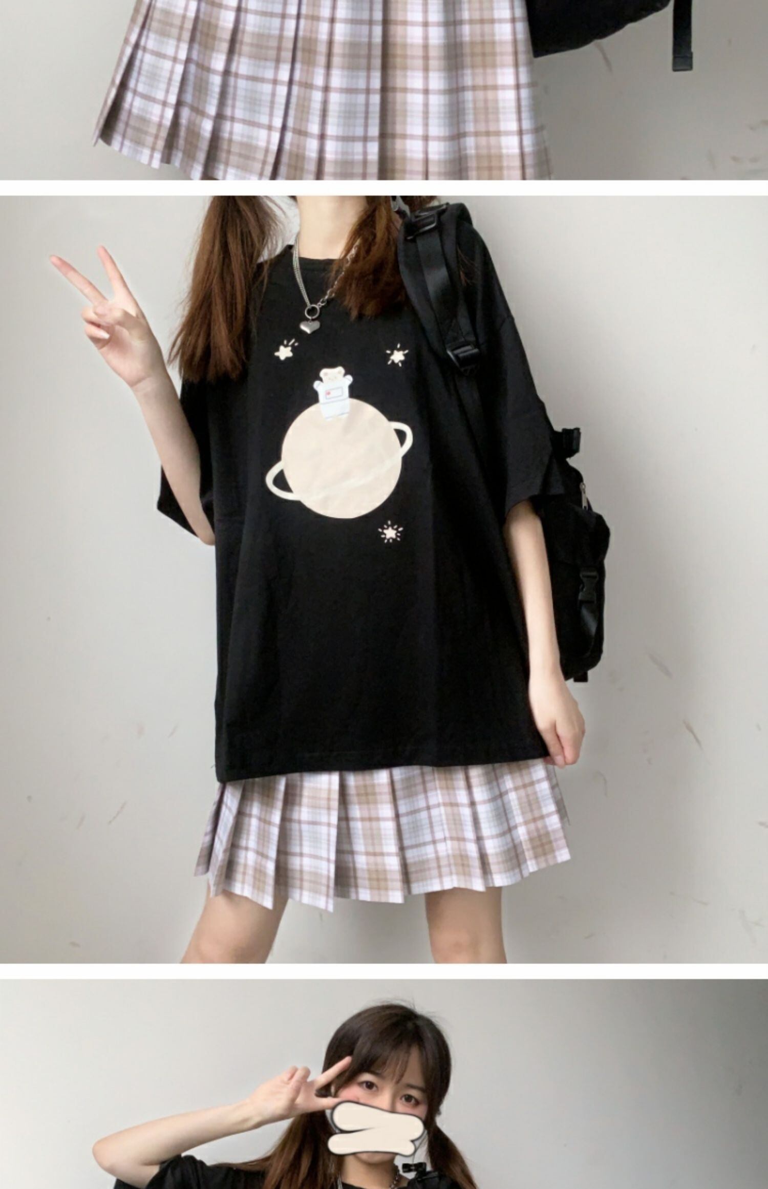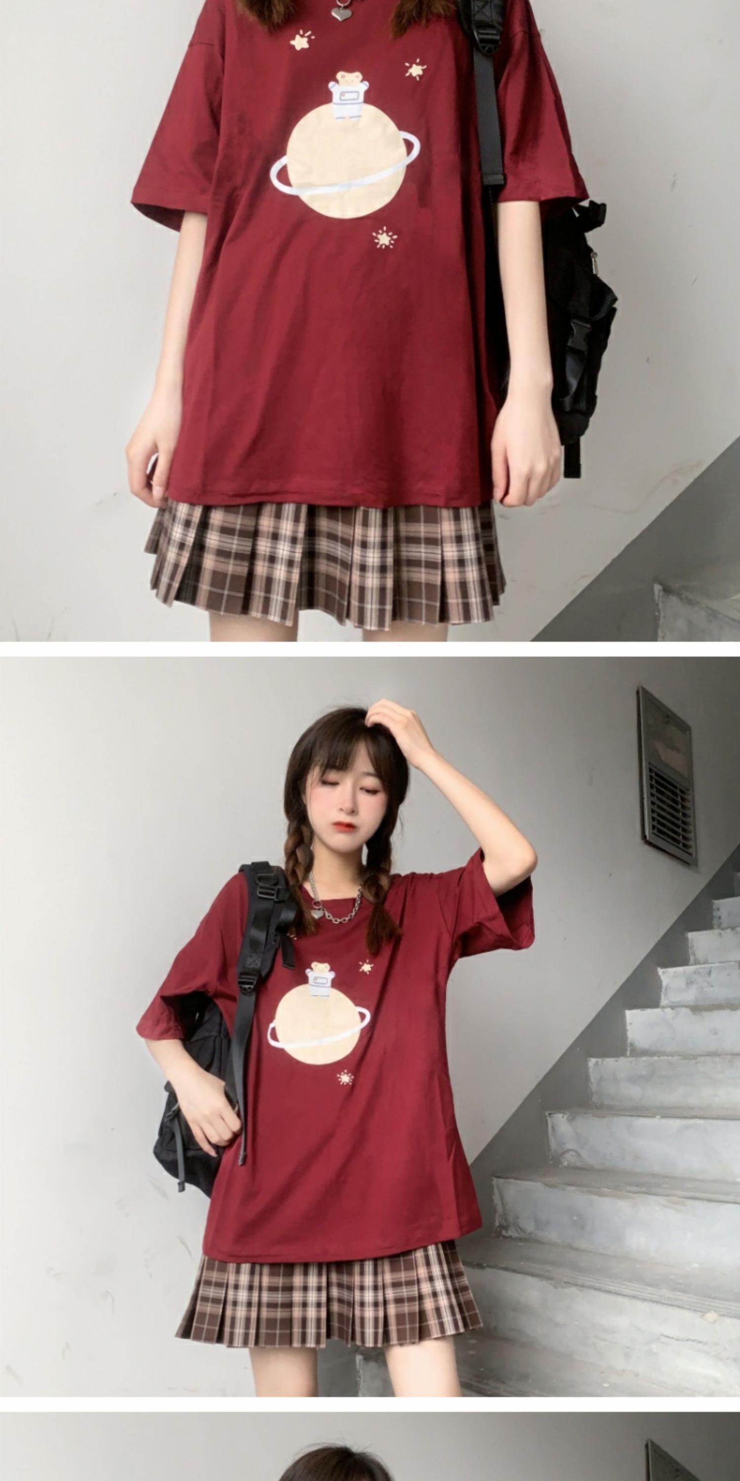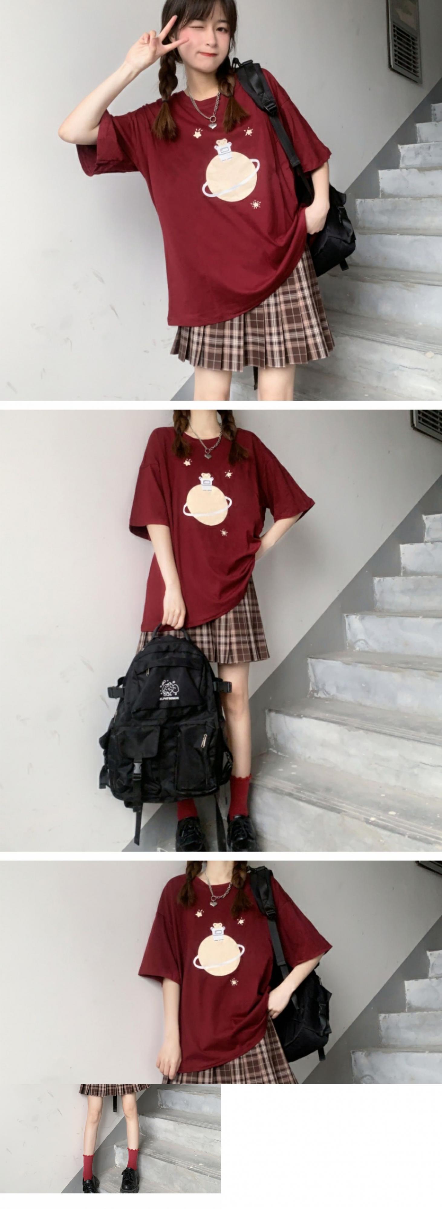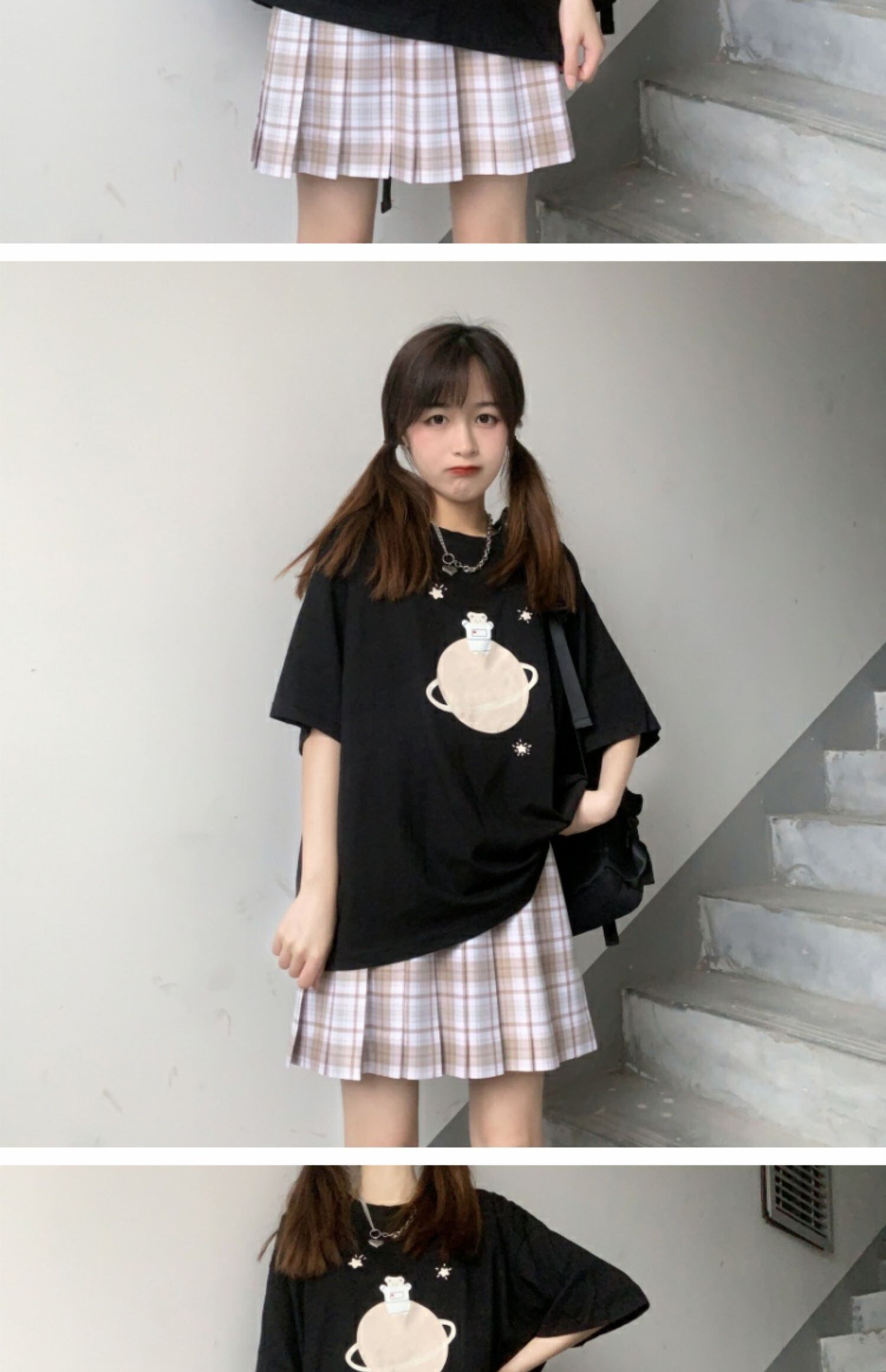 ルーズブラックブラウス プリントTシャツ サマー 大人ガーリー スウィート キュート カジュアル 夏物 萌量不足37505892199