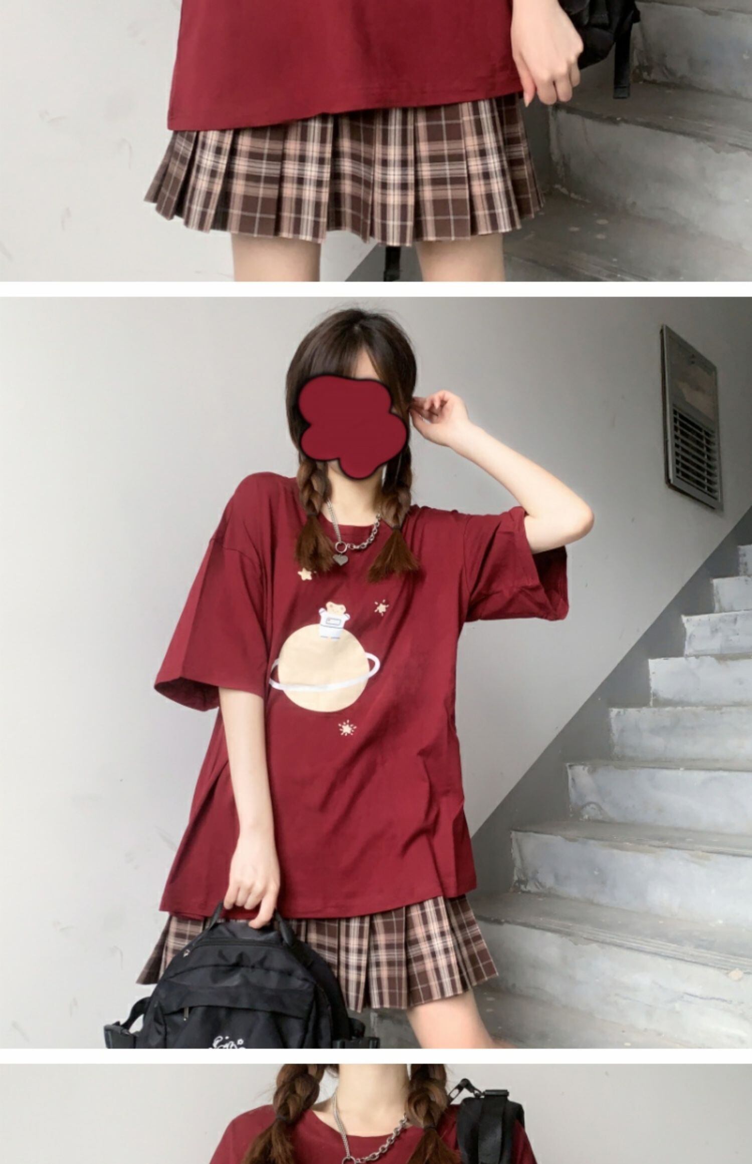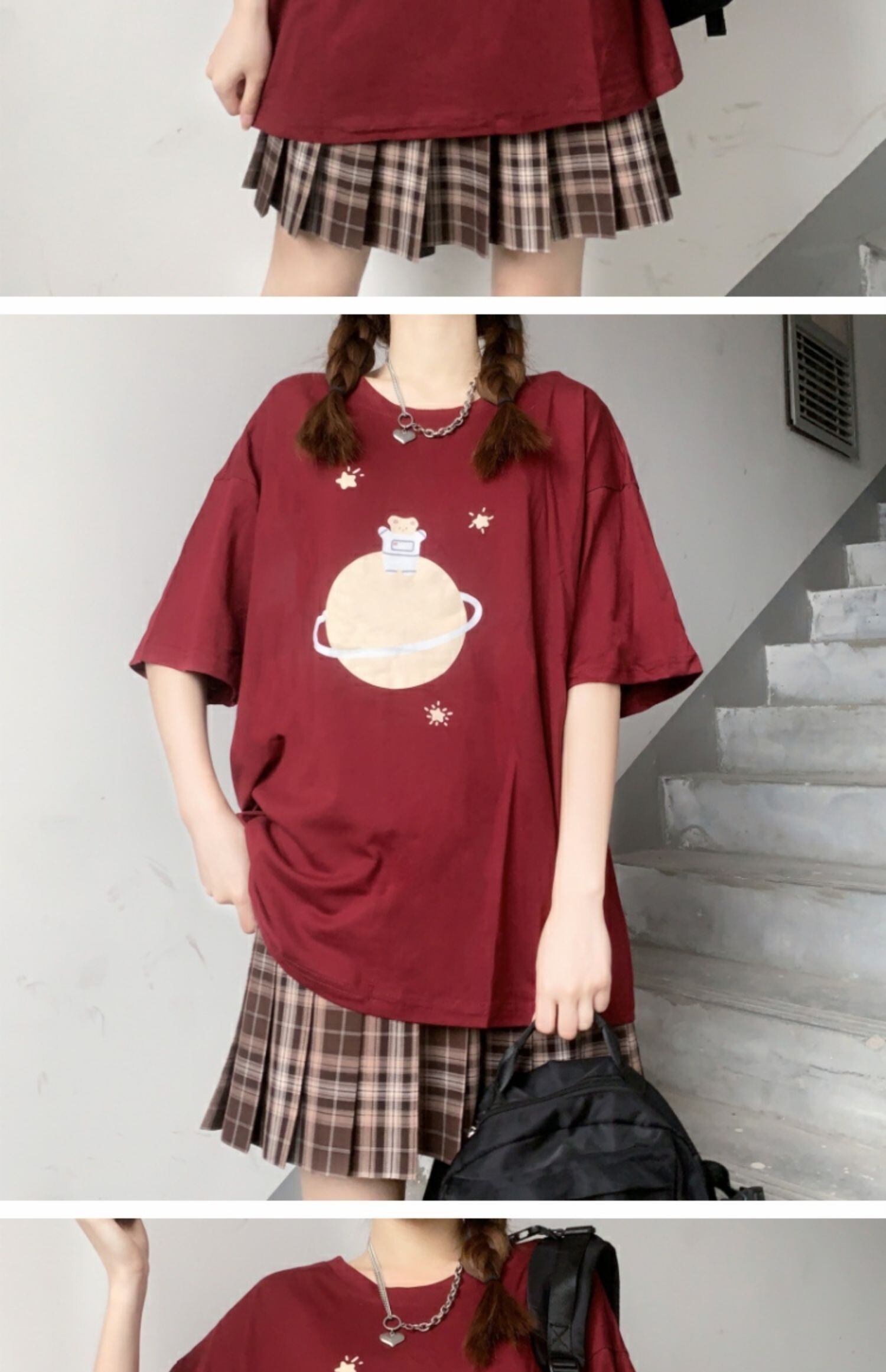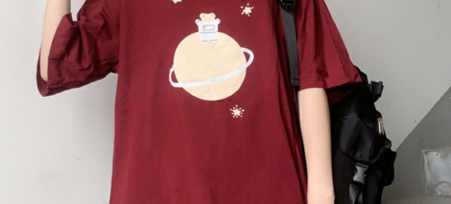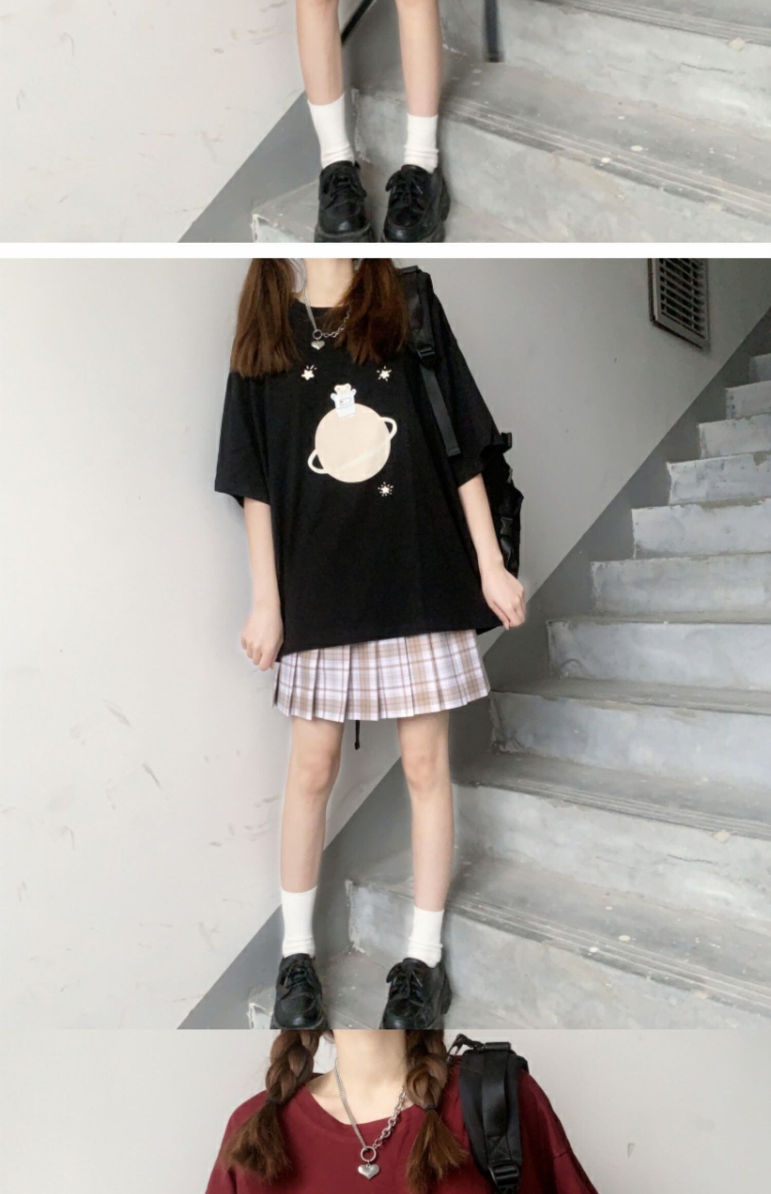 ルーズブラックブラウス プリントTシャツ サマー 大人ガーリー スウィート キュート カジュアル 夏物 萌量不足37505892199