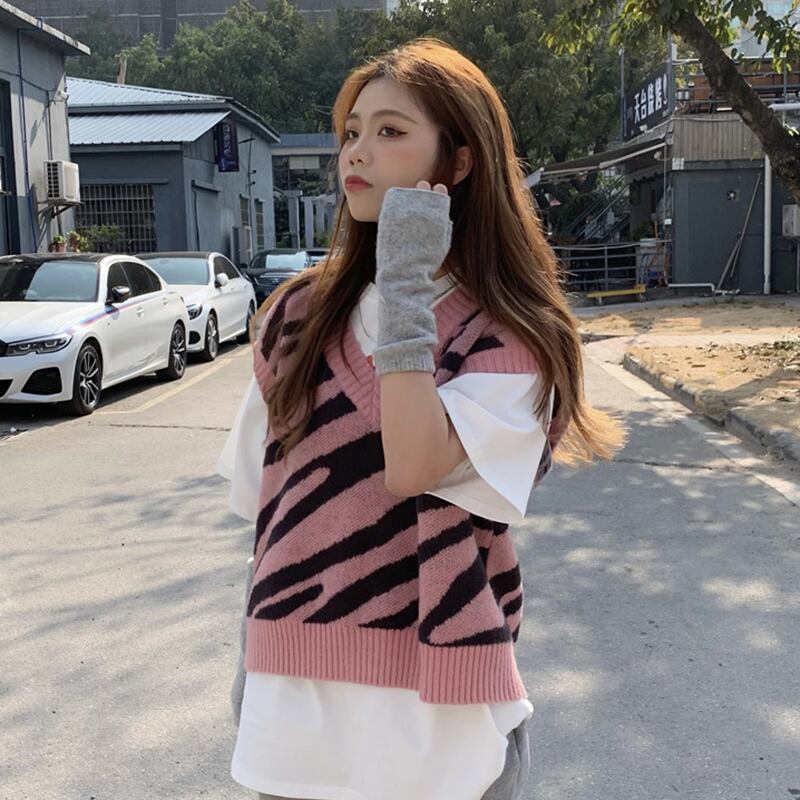 レオパードプリント柄セーター レディースルーズオータムニットジャケット ピンク 秋物 萌量不足62109148047