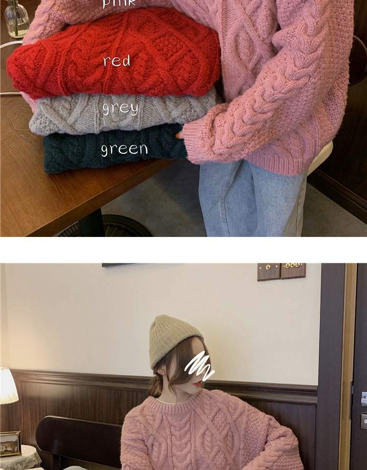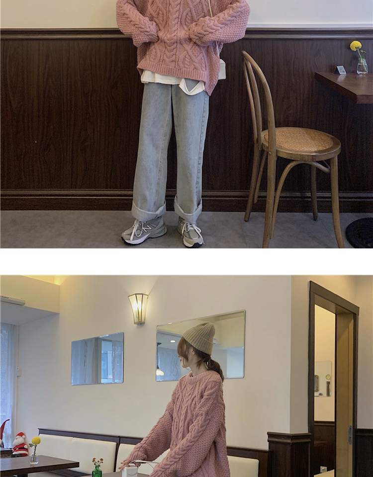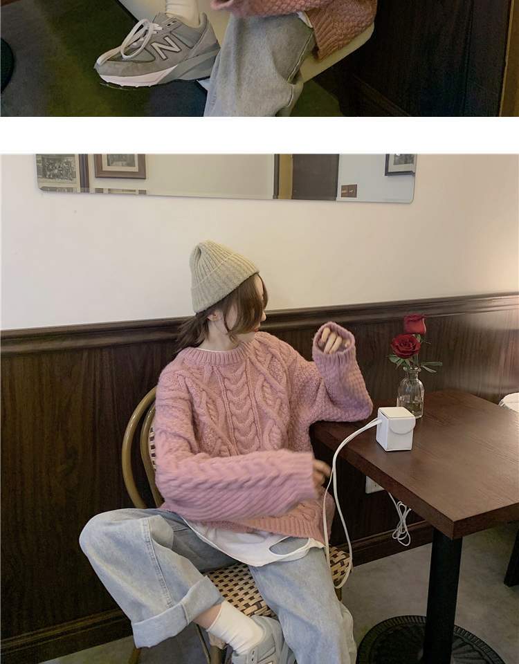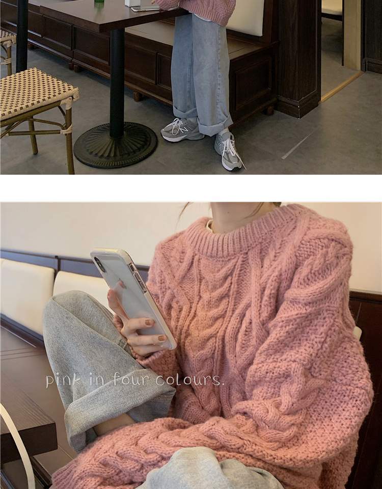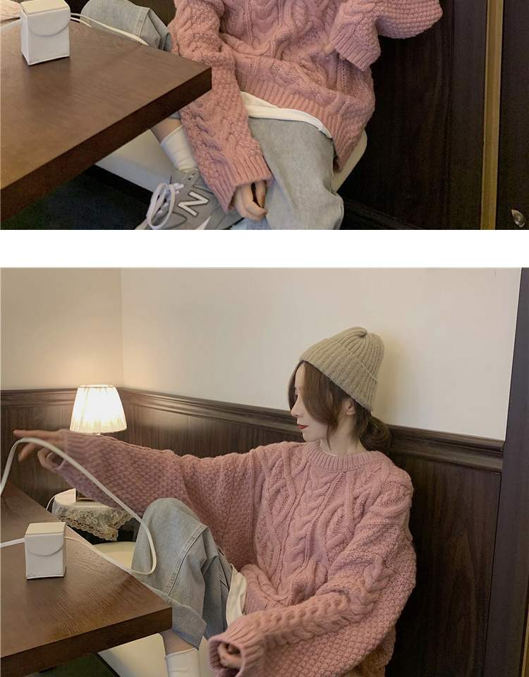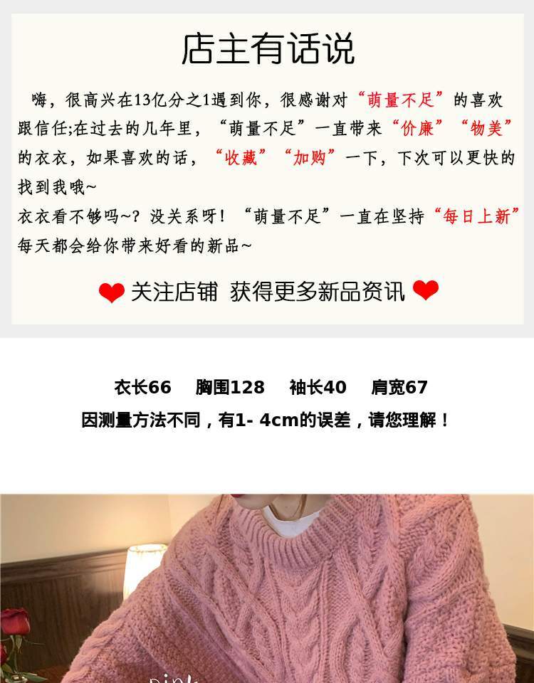 オータムウィンターセーター レディースルーズプルオーバー ピンク 秋物 冬物 萌量不足464409188