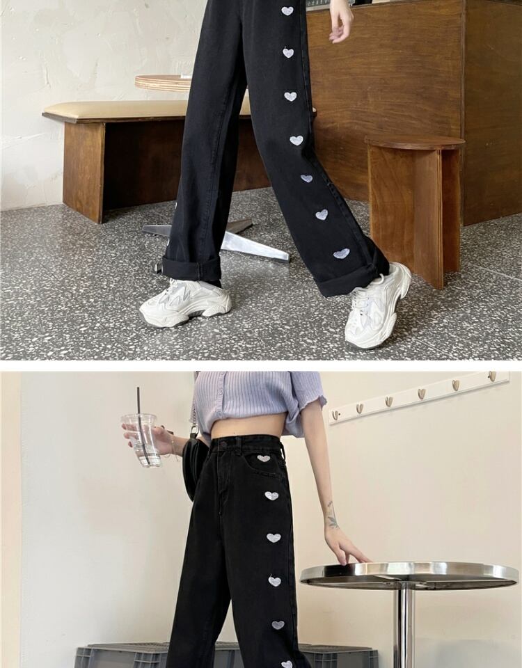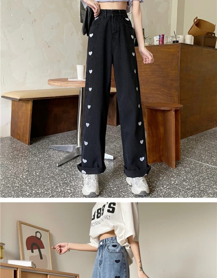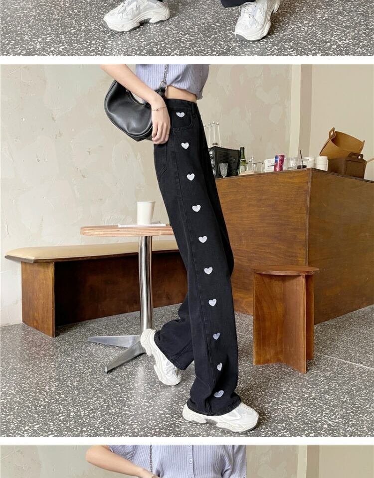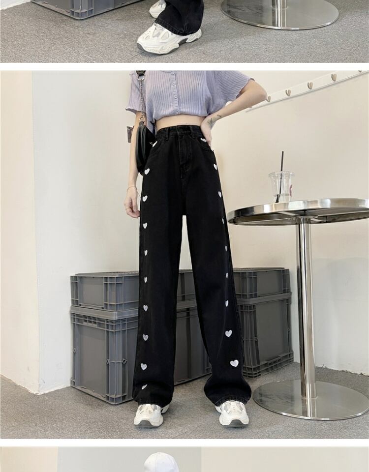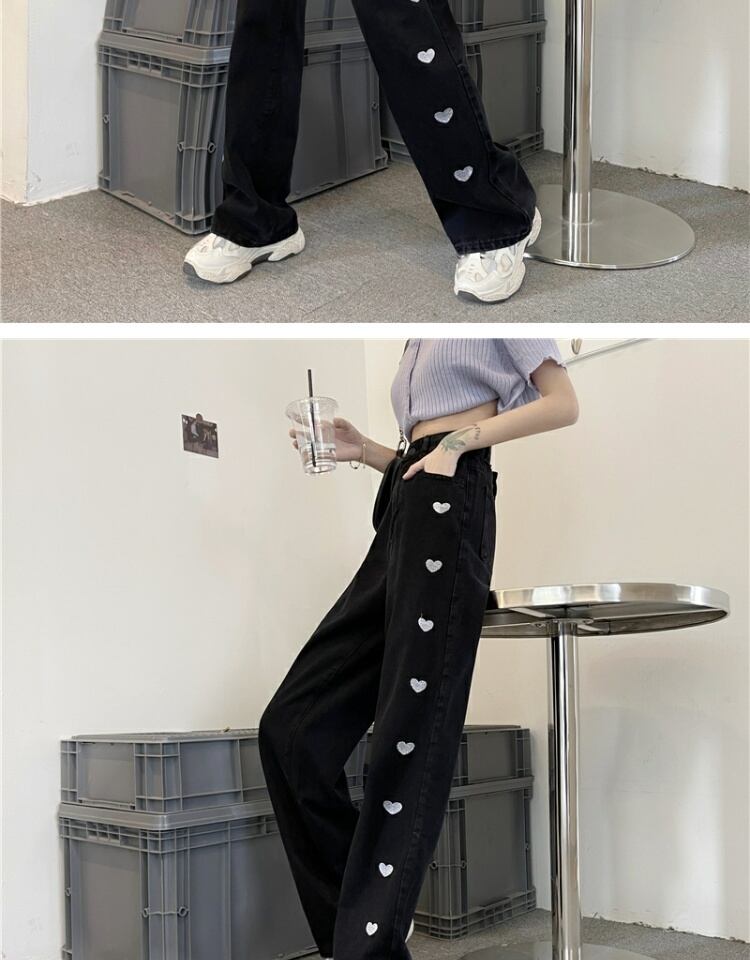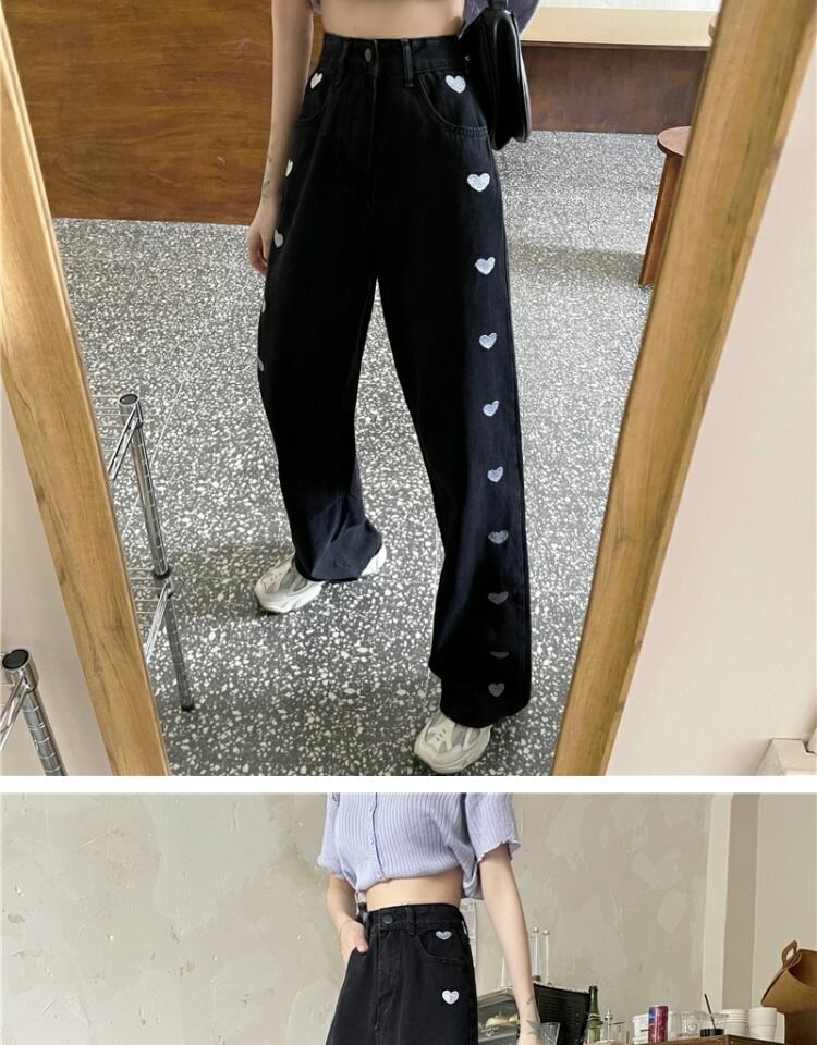ブラックジーンズ オータム薄手パンツ ルーズ レッド 秋物 萌量不足2650844184