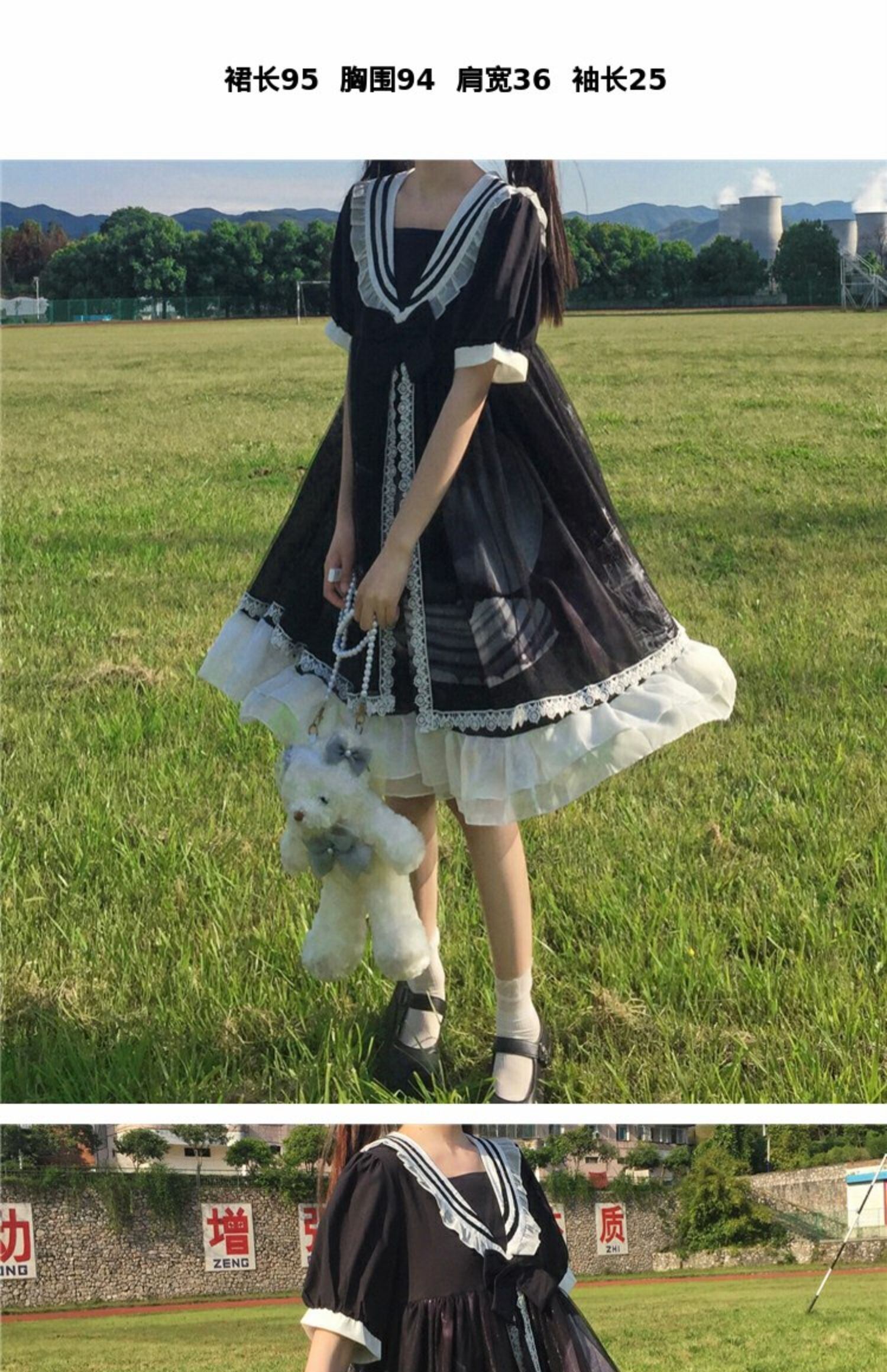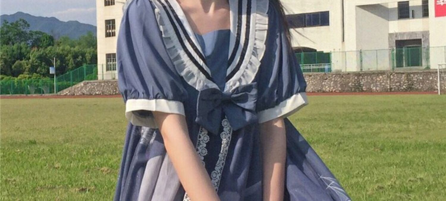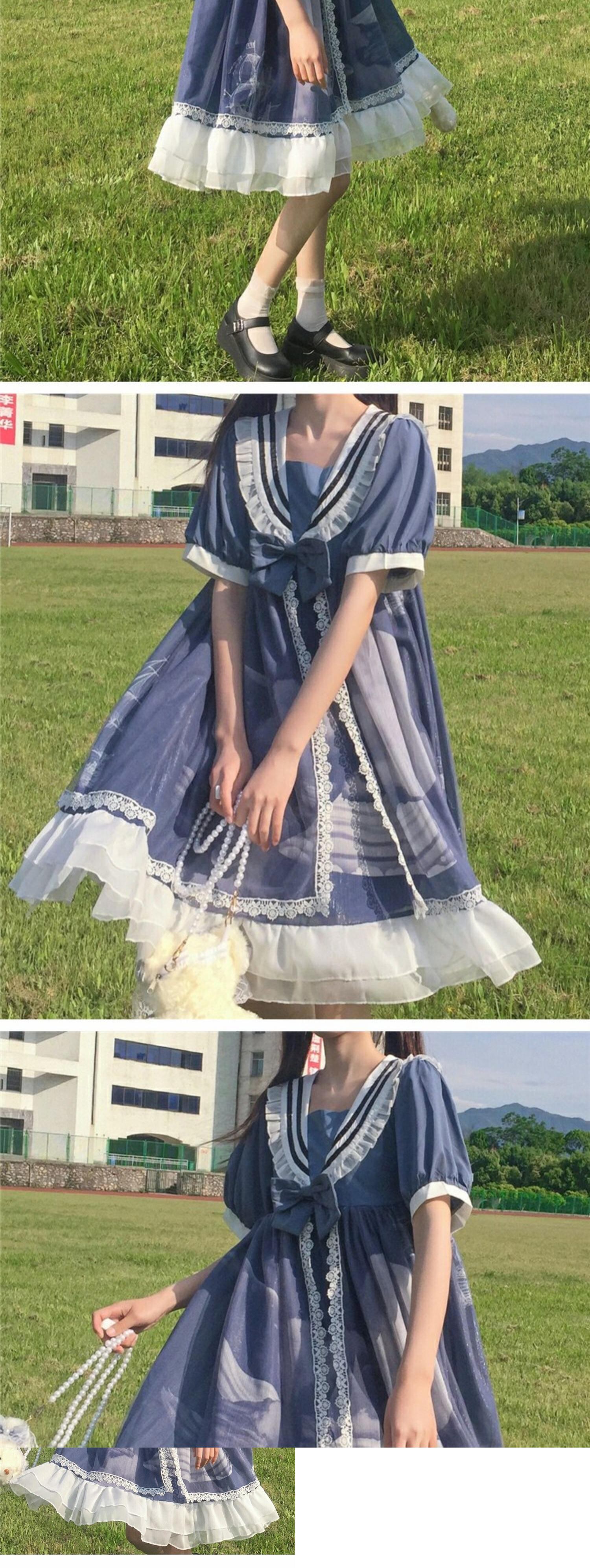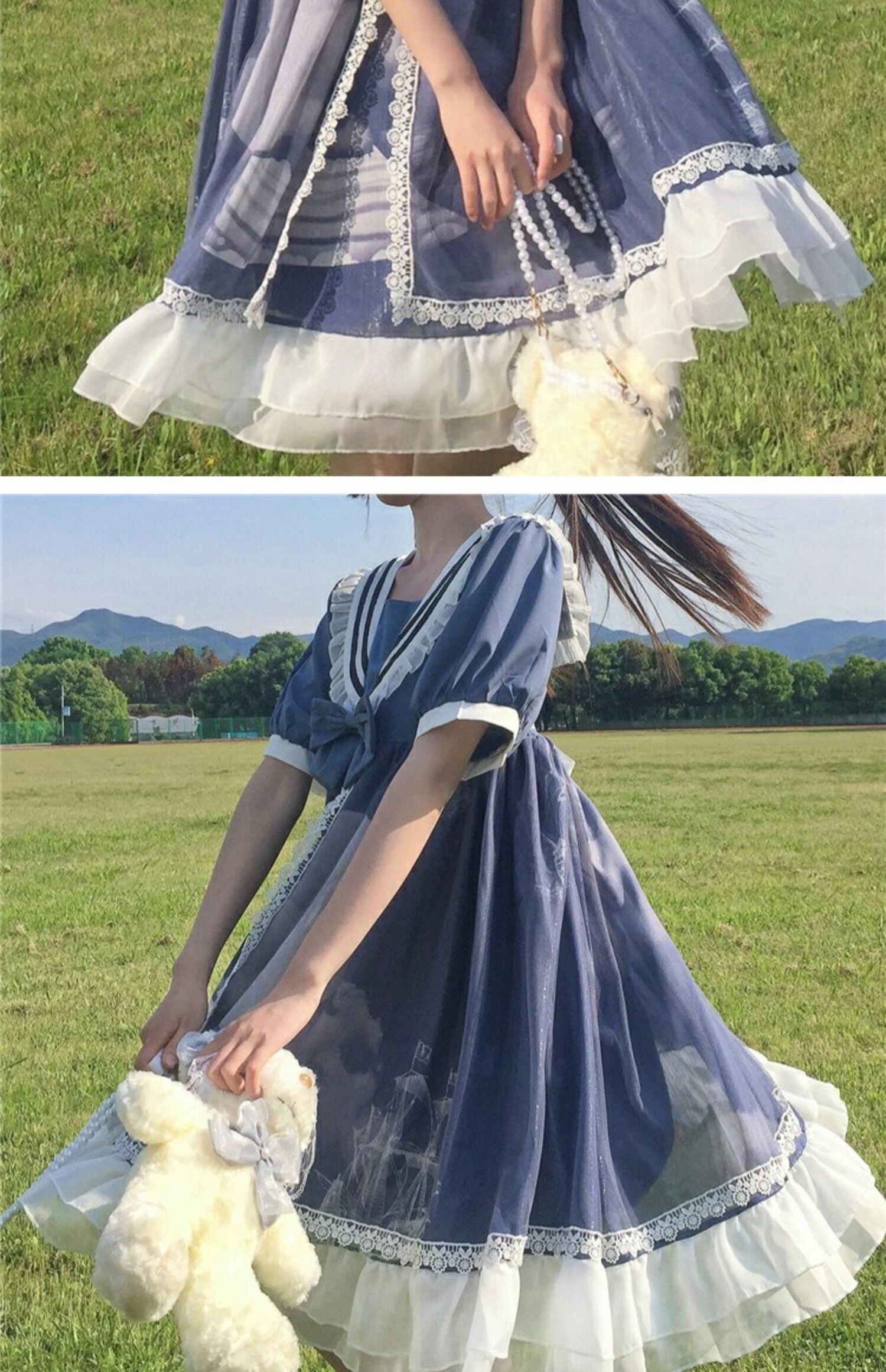 スカート サマー薄手ネイビーカラールーズロングドレス 大人ガーリー スウィート キュート カジュアル 夏物 萌量不足56318429195