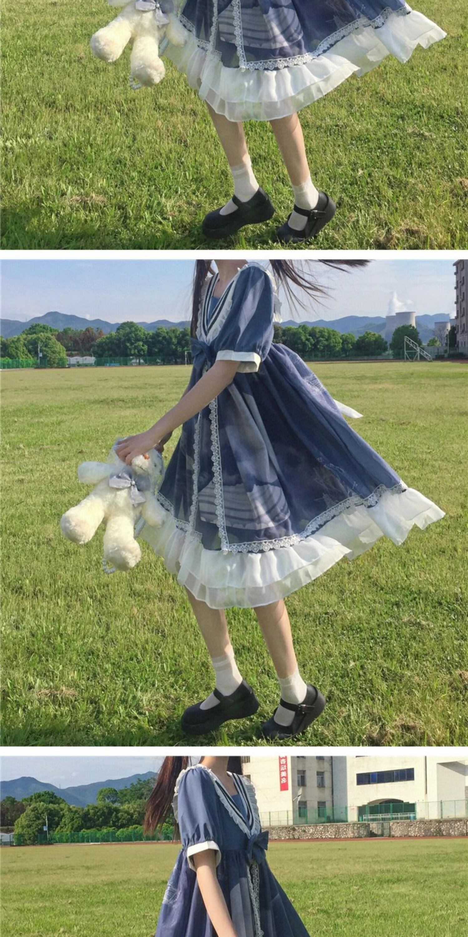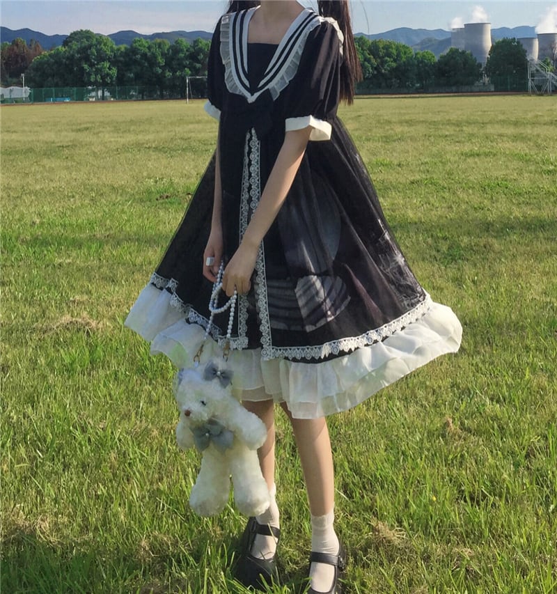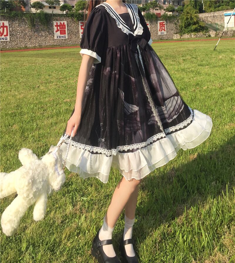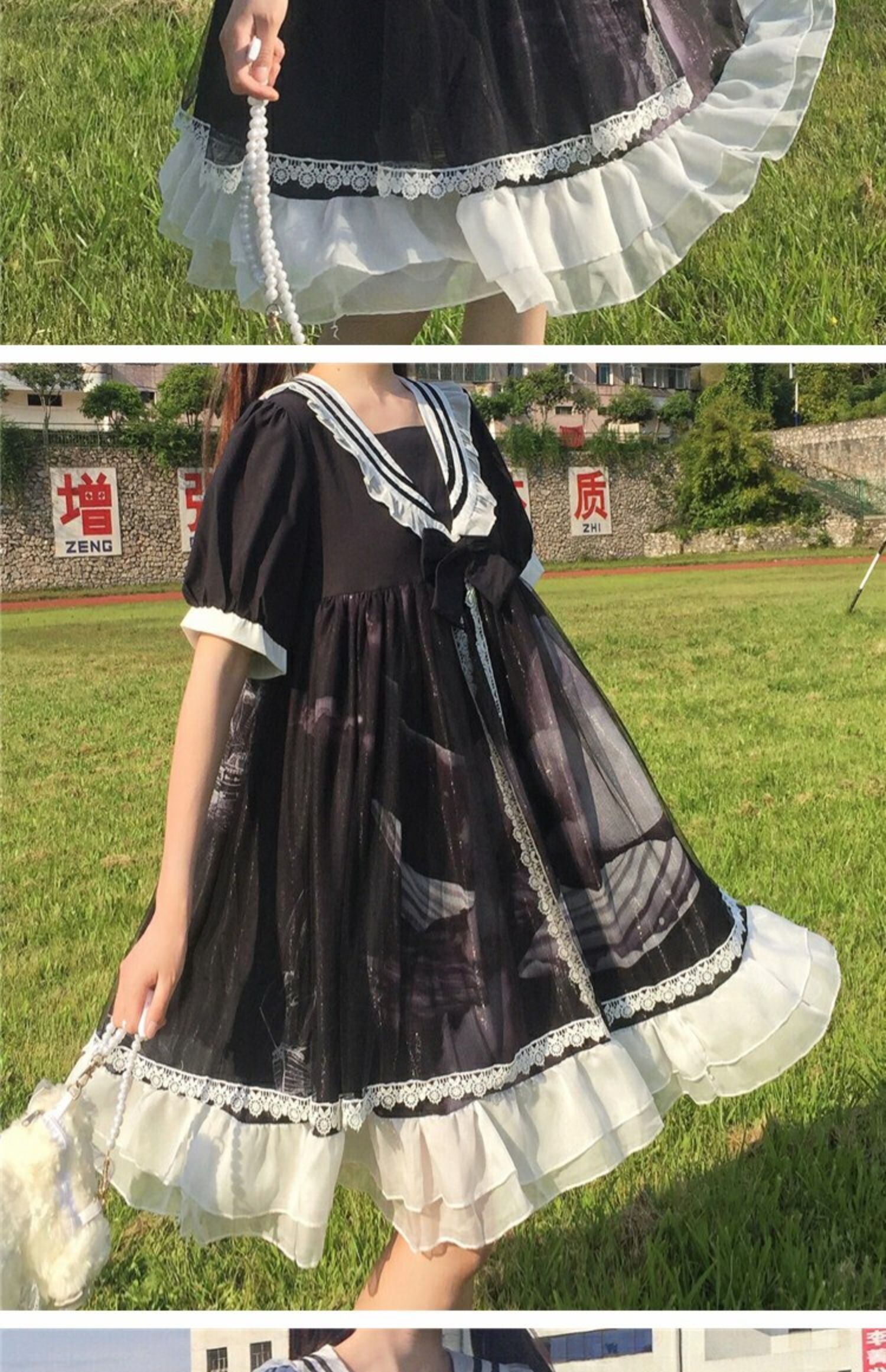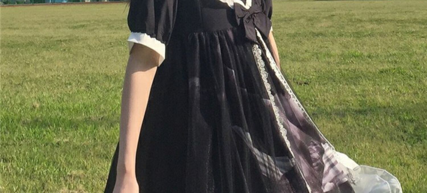 スカート サマー薄手ネイビーカラールーズロングドレス 大人ガーリー スウィート キュート カジュアル 夏物 萌量不足56318429195