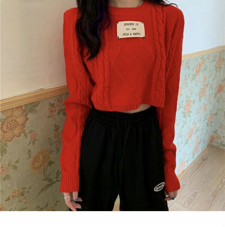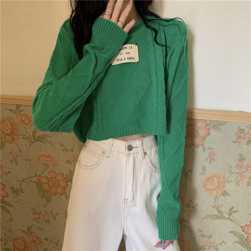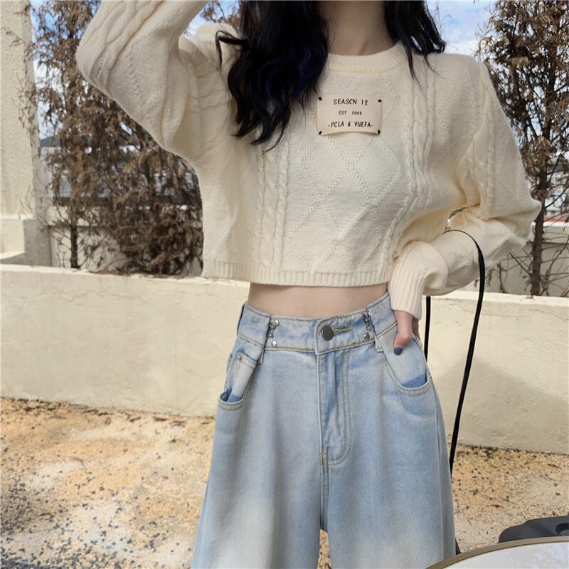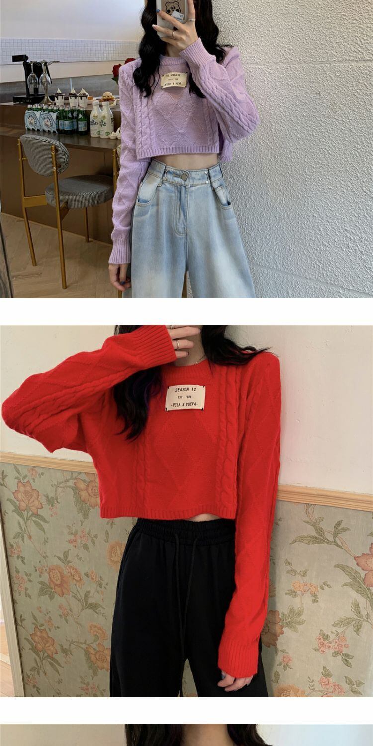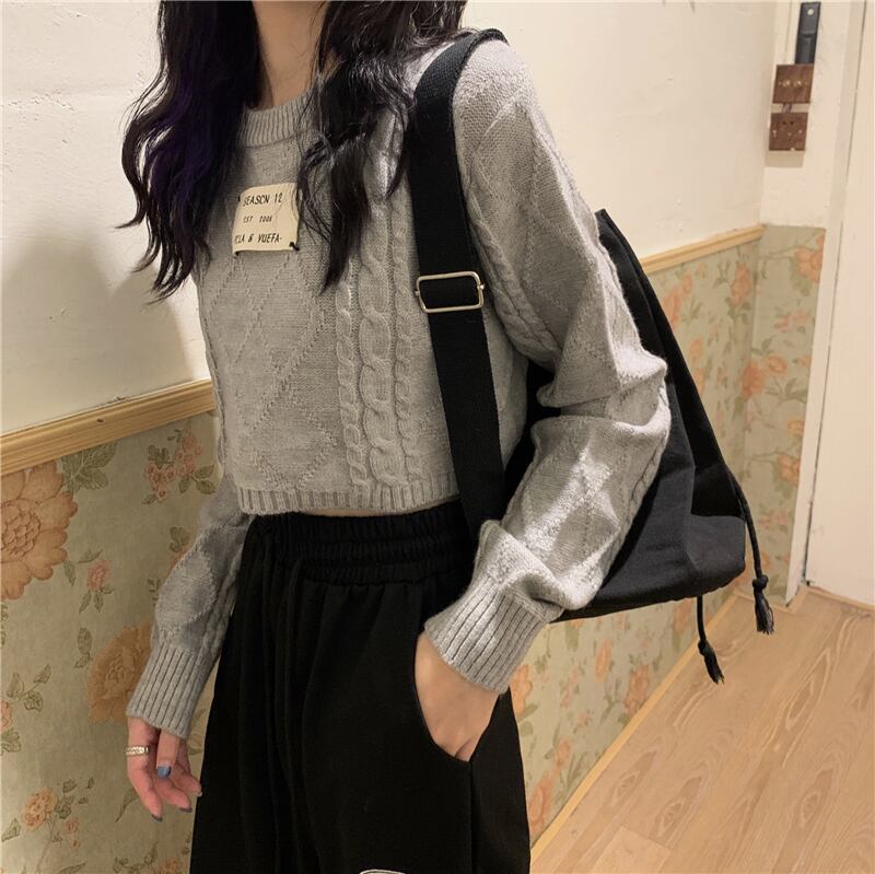 セーター レディースオータムウィンタールーズショートラウンドネックプルオーバー 長袖スリーブトップス ロング 秋物 冬物 Oネック 萌量不足24509601329