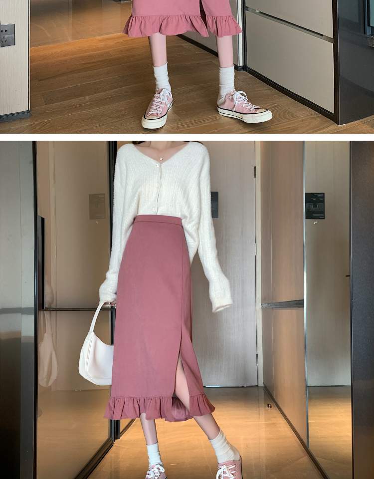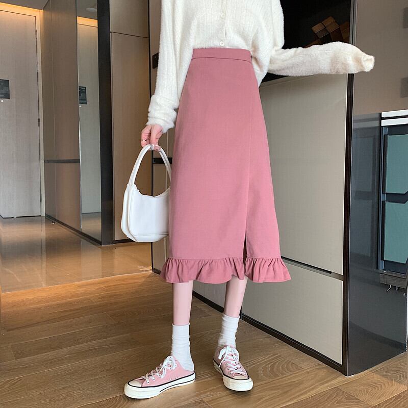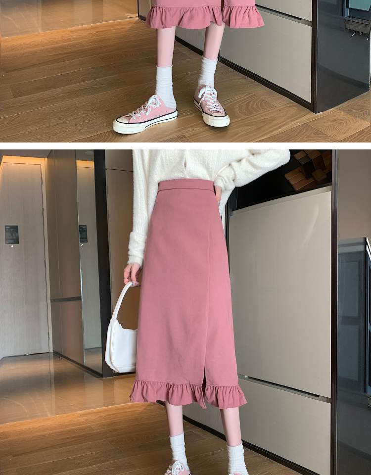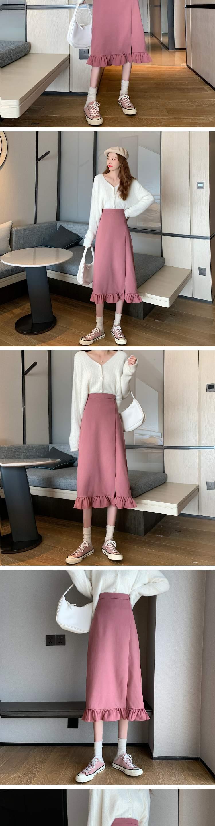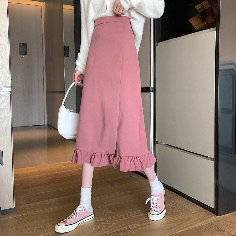 ラッフルスカート ブラックハイウェストウェストAラインロング 萌量不足76031952718