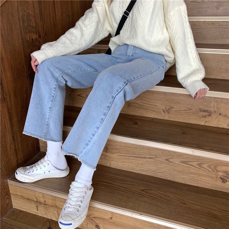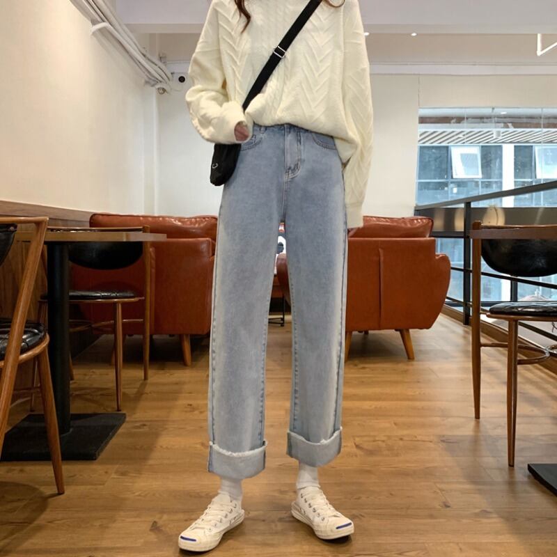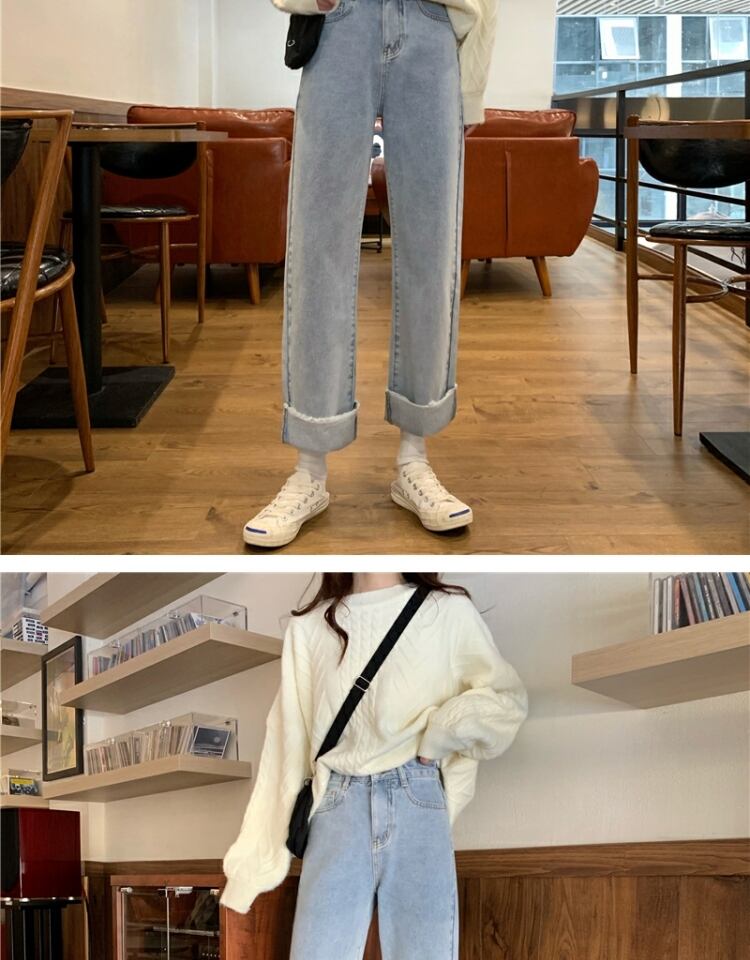スプリングオータムハイウェストジーンズ レディースルーズパンツ 春物 秋物 萌量不足95158192244