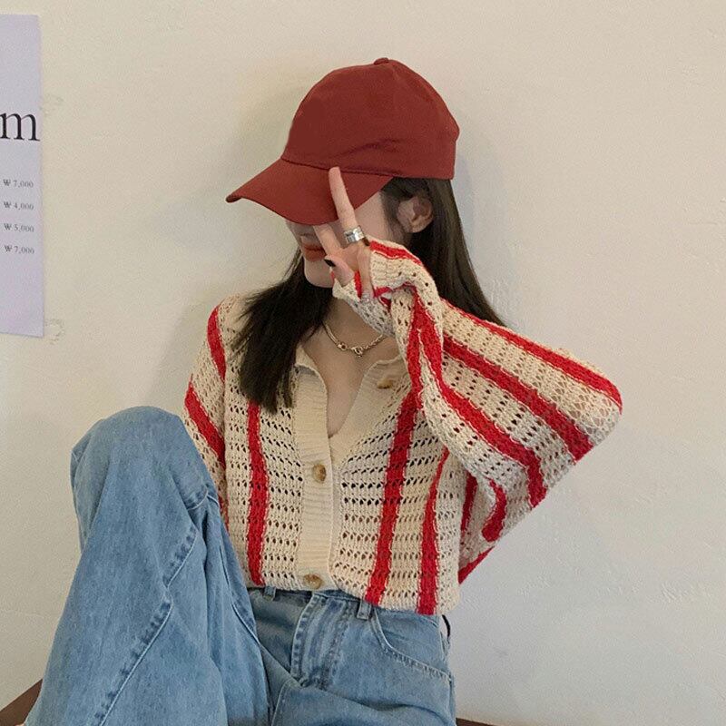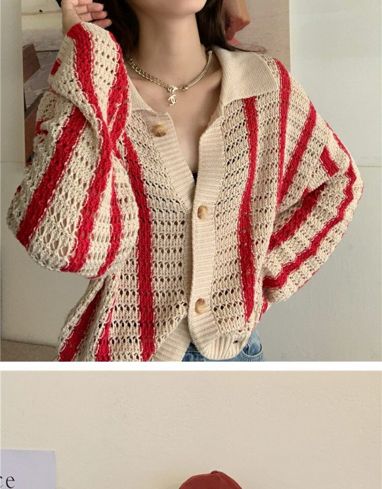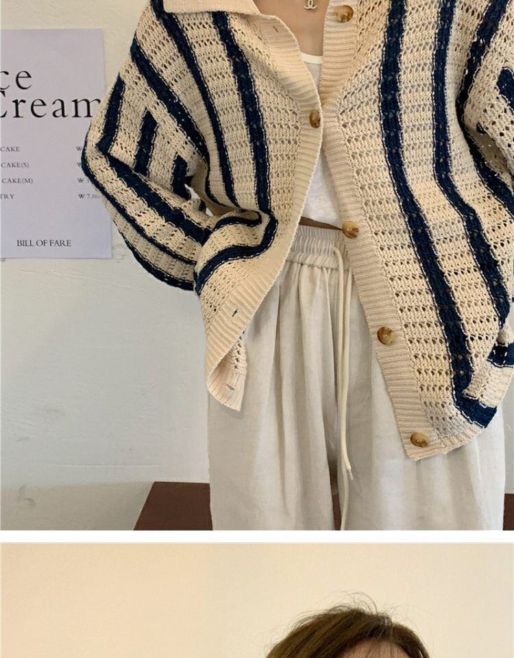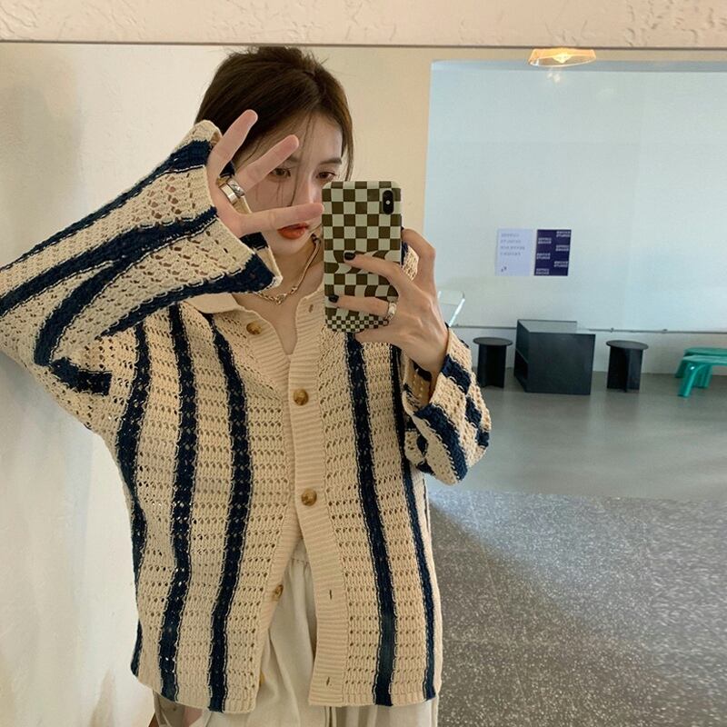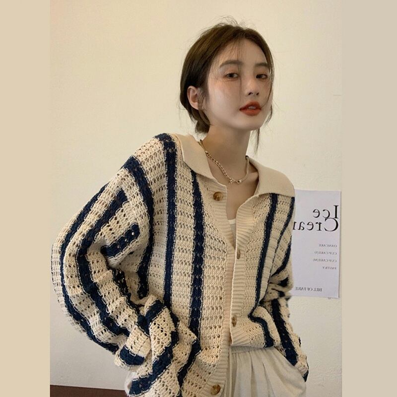 ストライプニット スプリングオータムカーディガンセーター ジャケット 春物 秋物 萌量不足5939939091