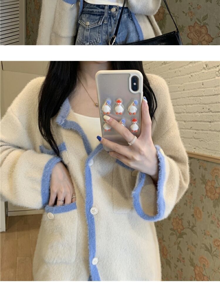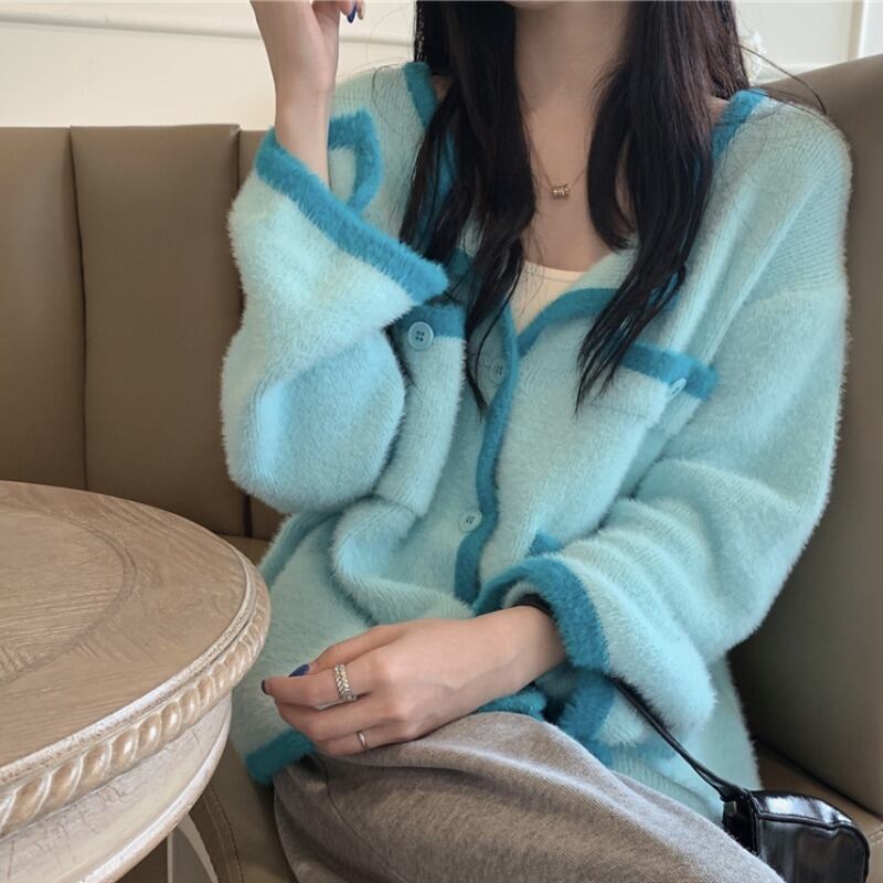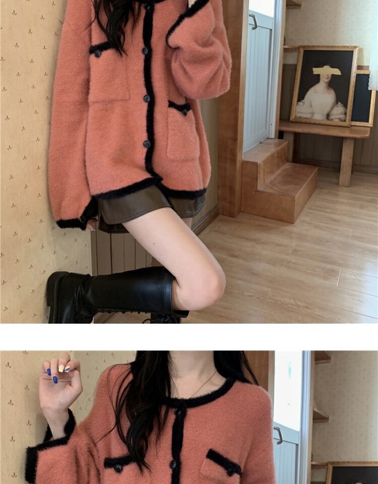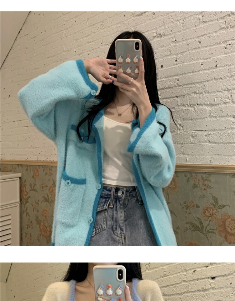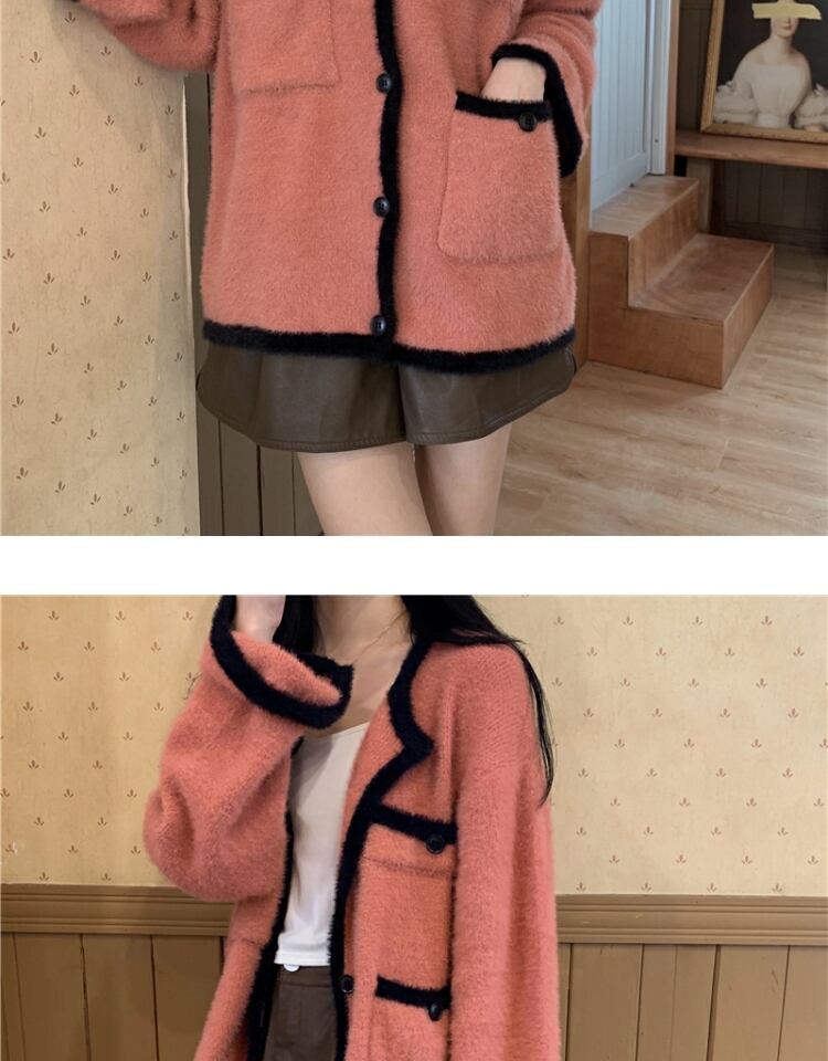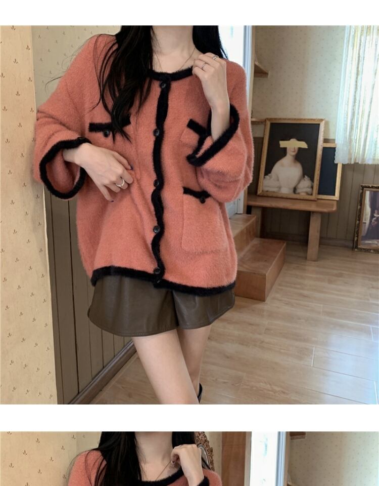 カラーニットカーディガンジャケット ルーズ薄手セーター オータムトップス ロング 秋物 萌量不足14849829810