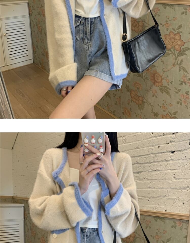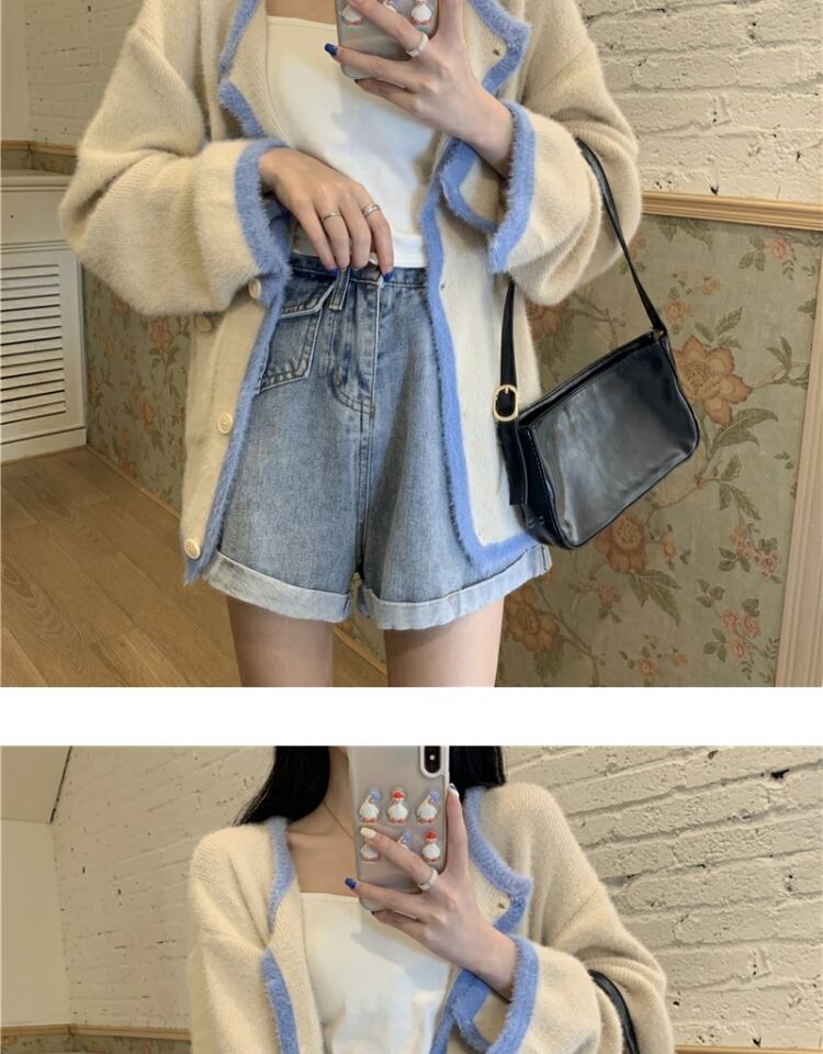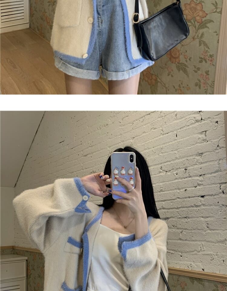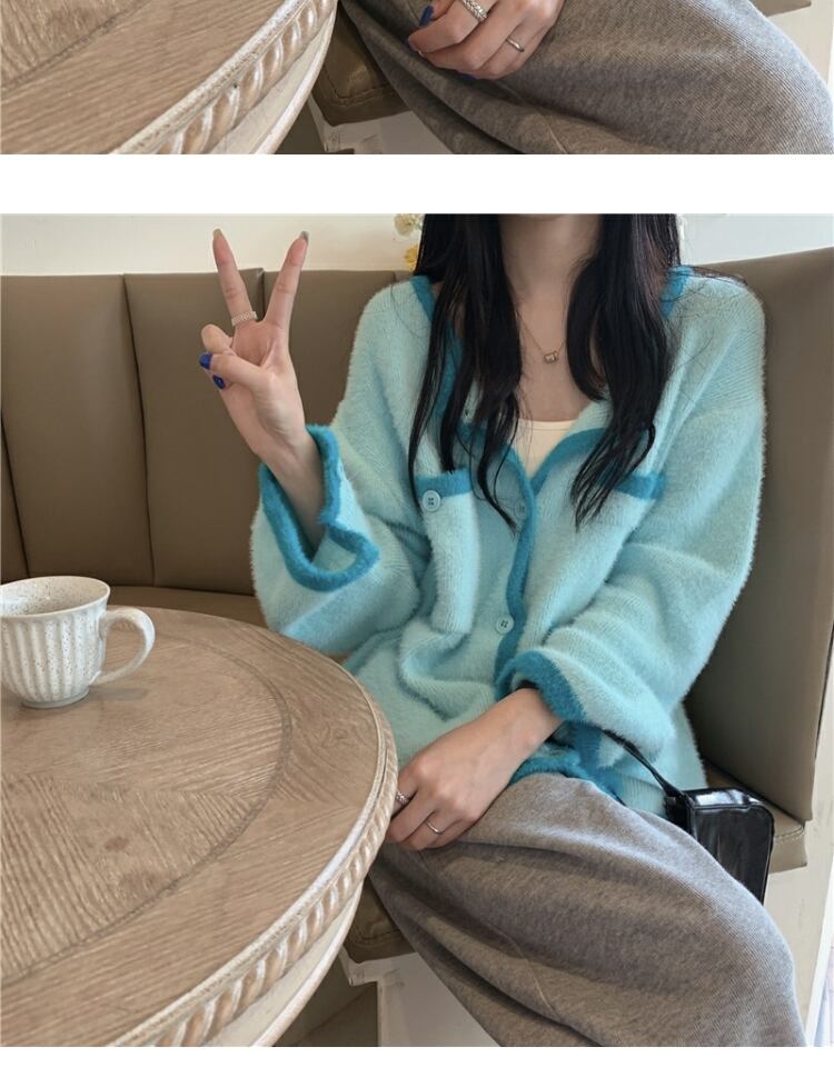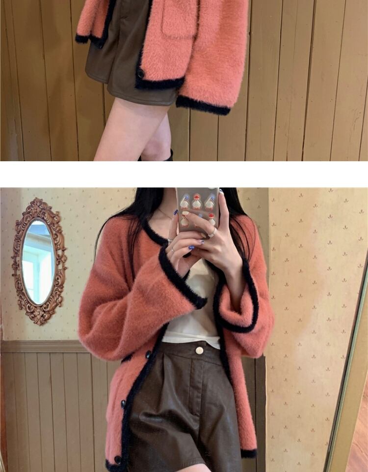 カラーニットカーディガンジャケット ルーズ薄手セーター オータムトップス ロング 秋物 萌量不足14849829810