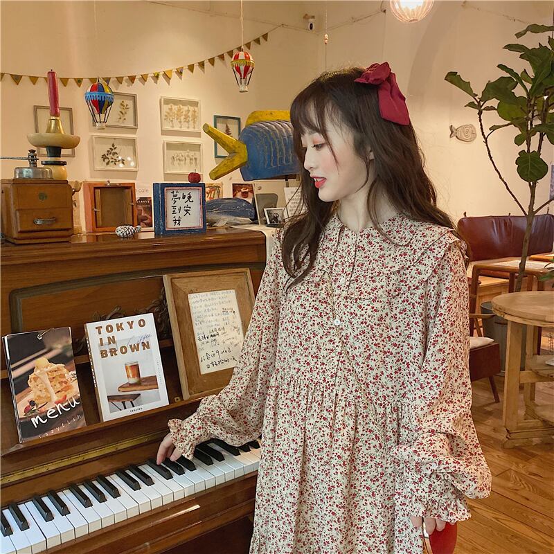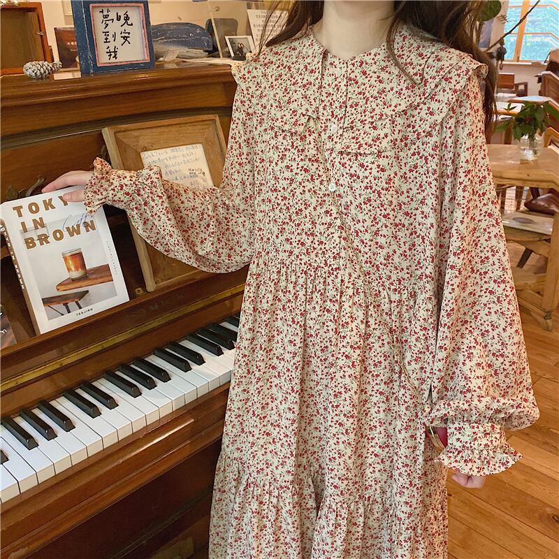 カラー薄手フローラルドレス スプリングスカート ロング 春物 花柄 萌量不足37831734040