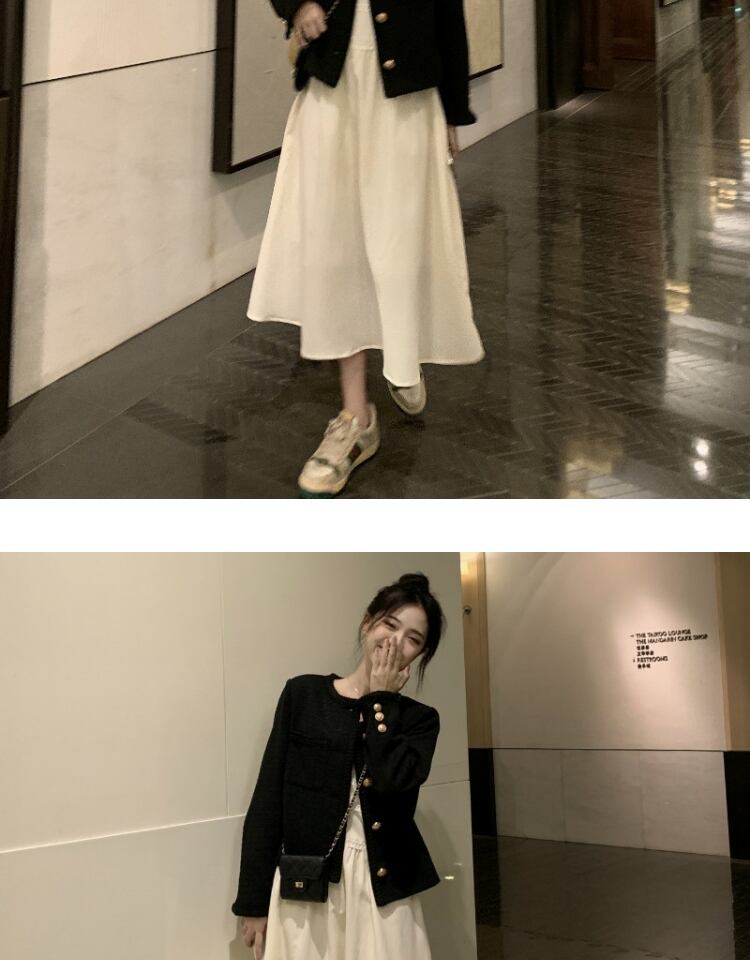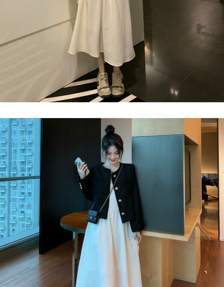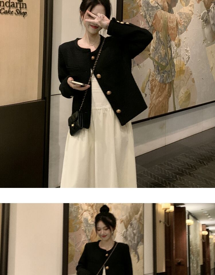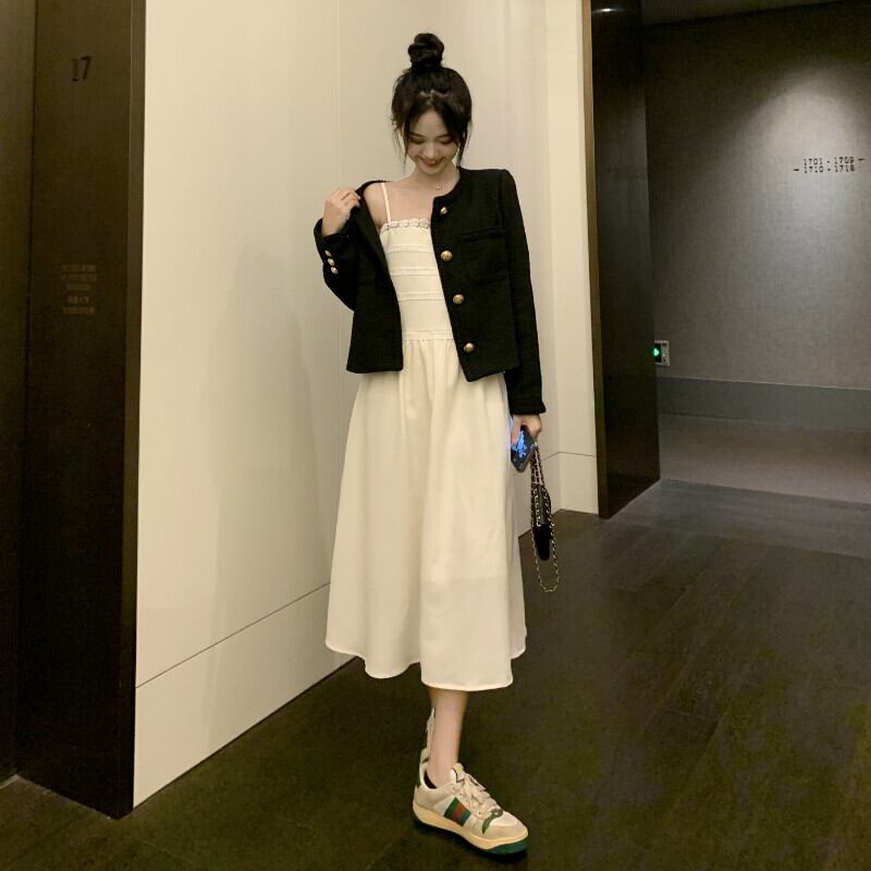 色:ブラックジャケットワンピース,アプリコットキャミソールワンピース
