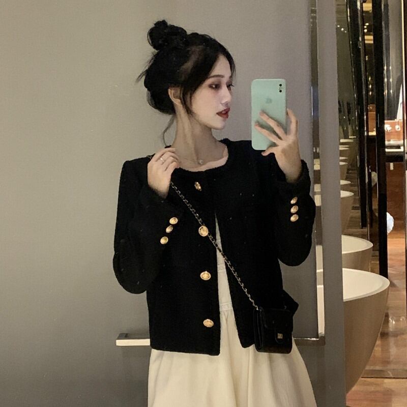 ジャケット オータムスタイルショート薄手ブラックトップス レディース ロング 秋物 萌量不足50393821336