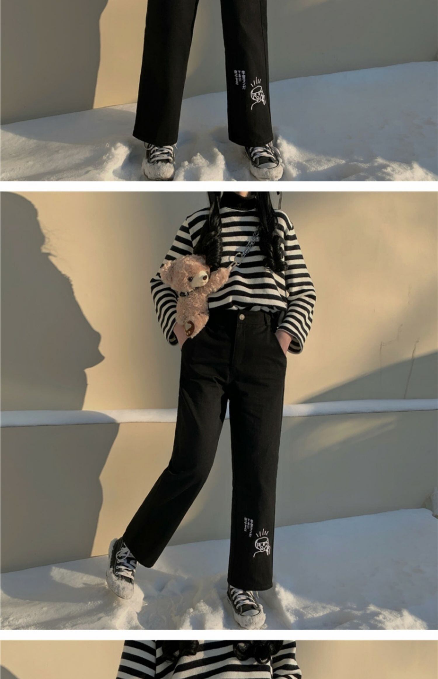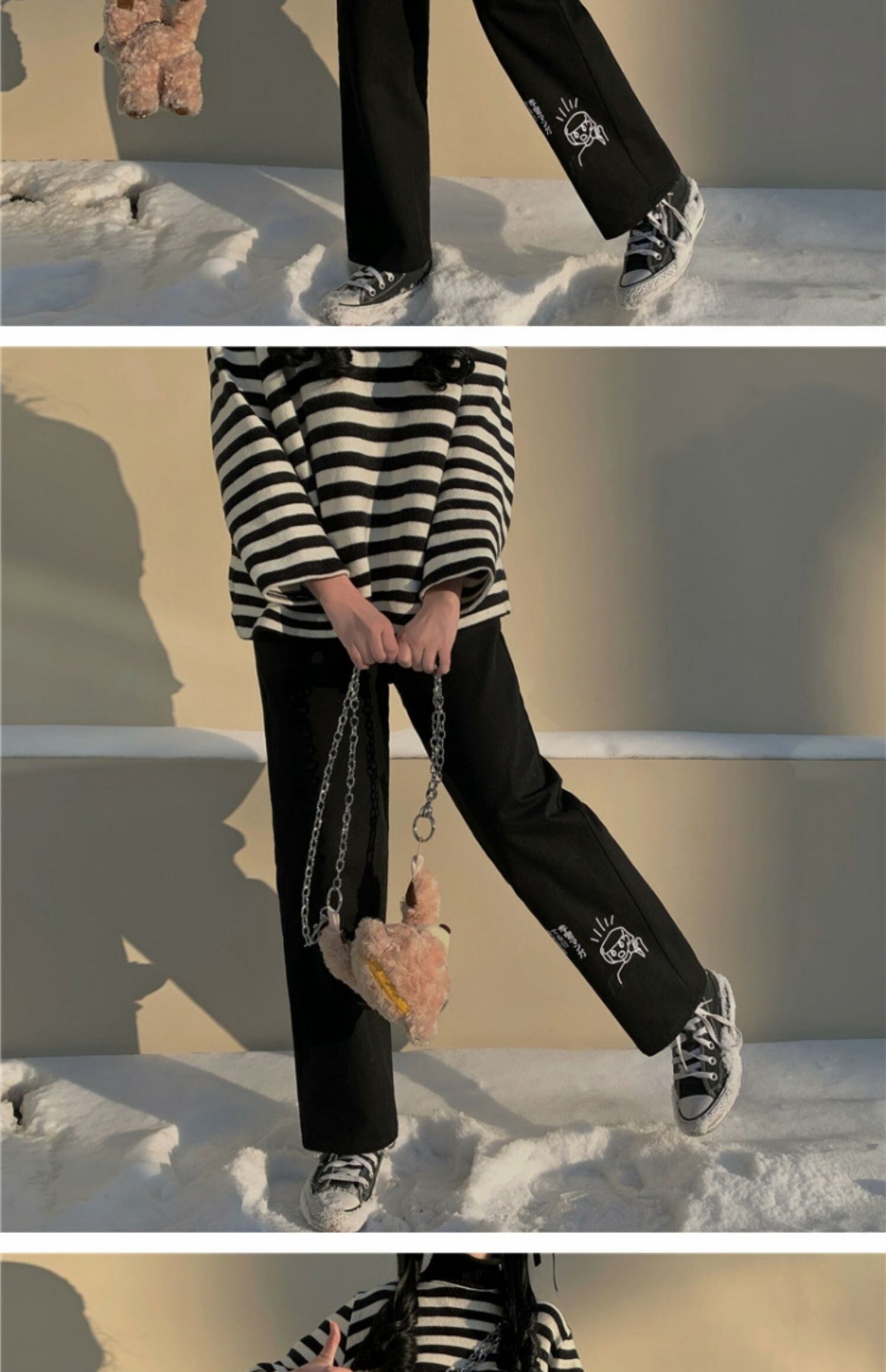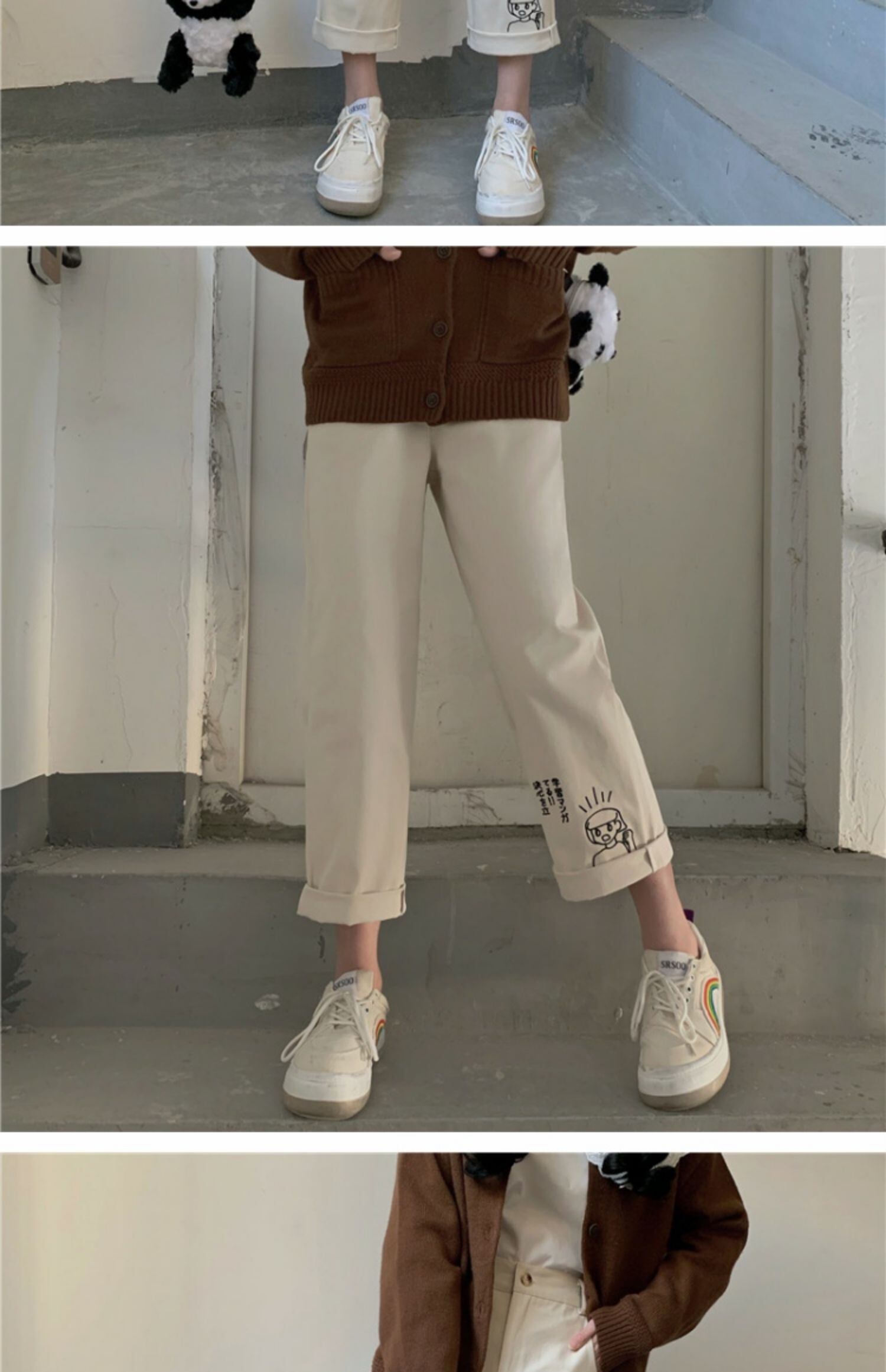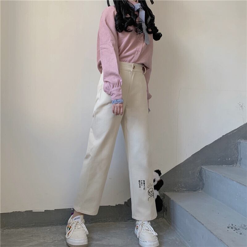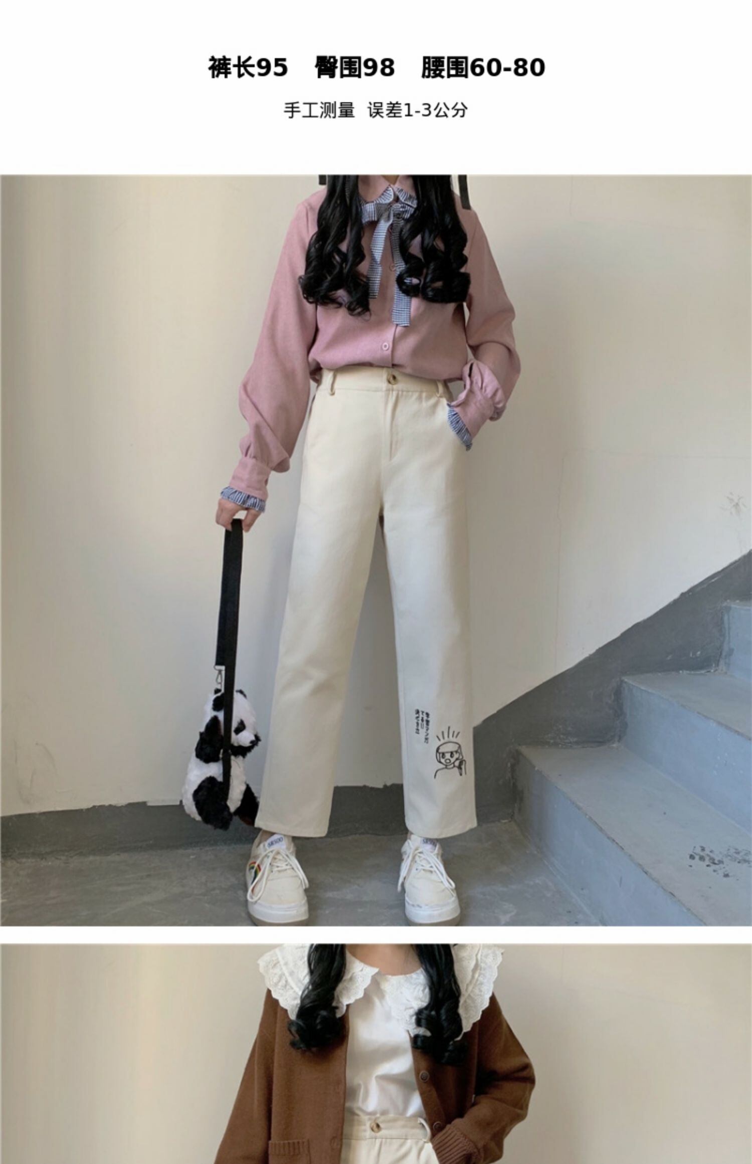 パンツ スプリング刺繍カジュアルルーズスタイルハイウェストウェスト薄手ワイドレッグ 大人ガーリー スウィート キュート 春物 ワイドパンツ 萌量不足67656021665