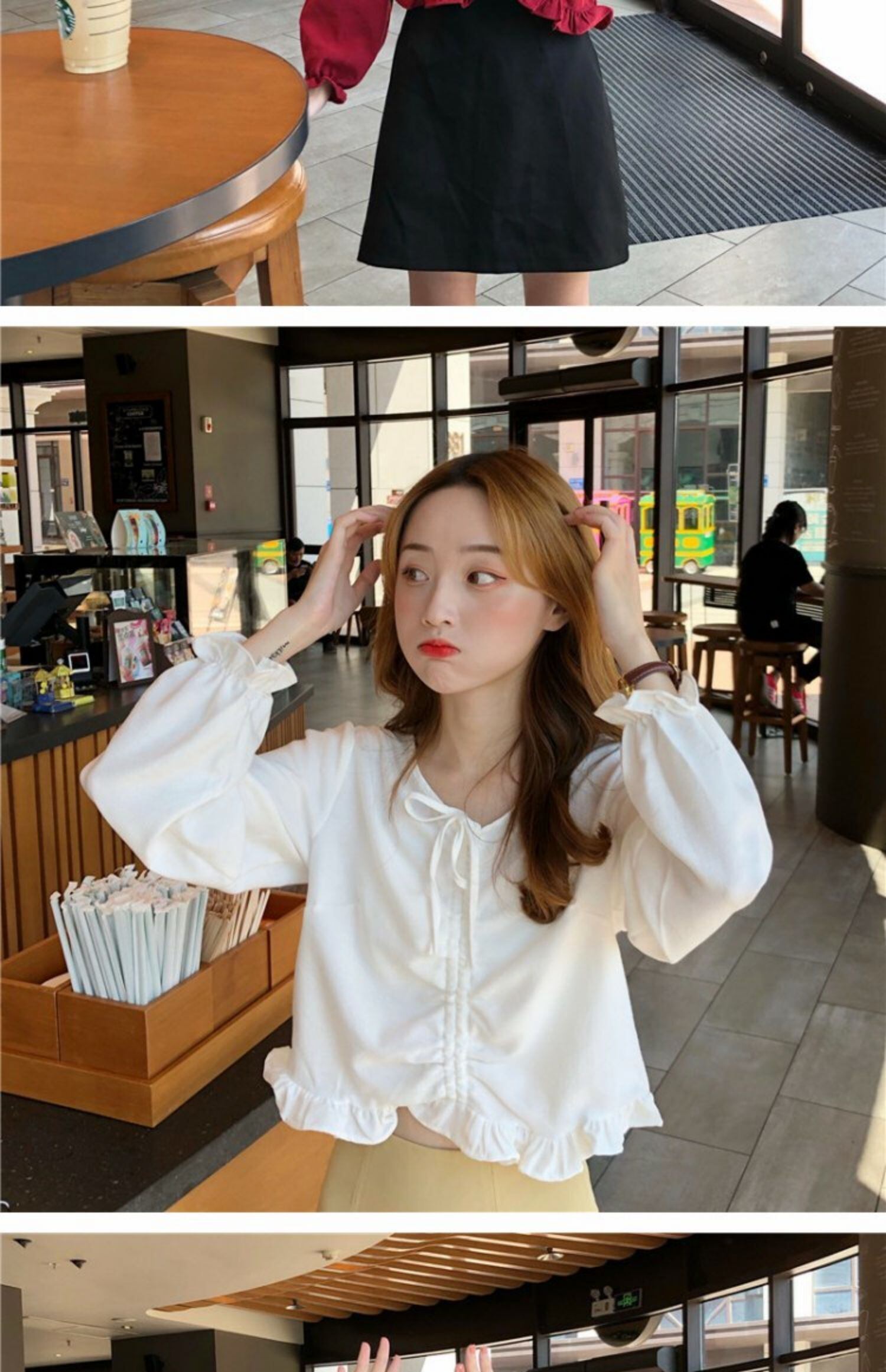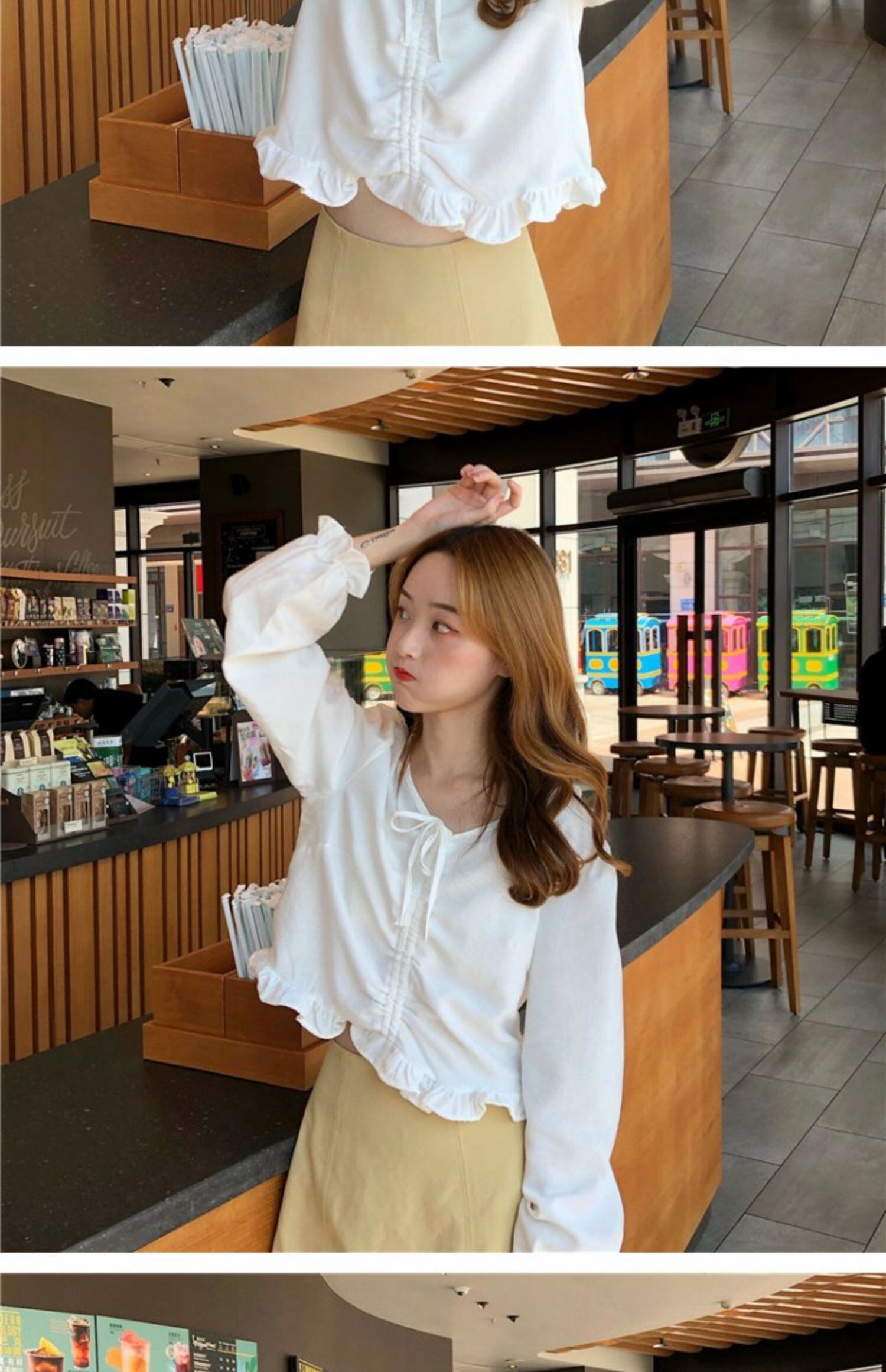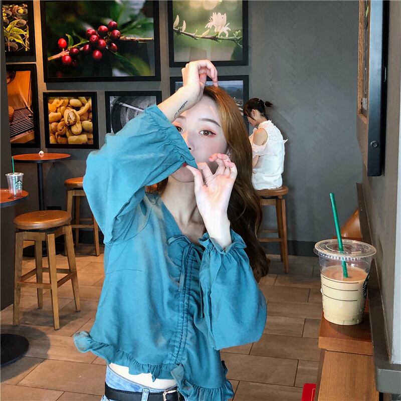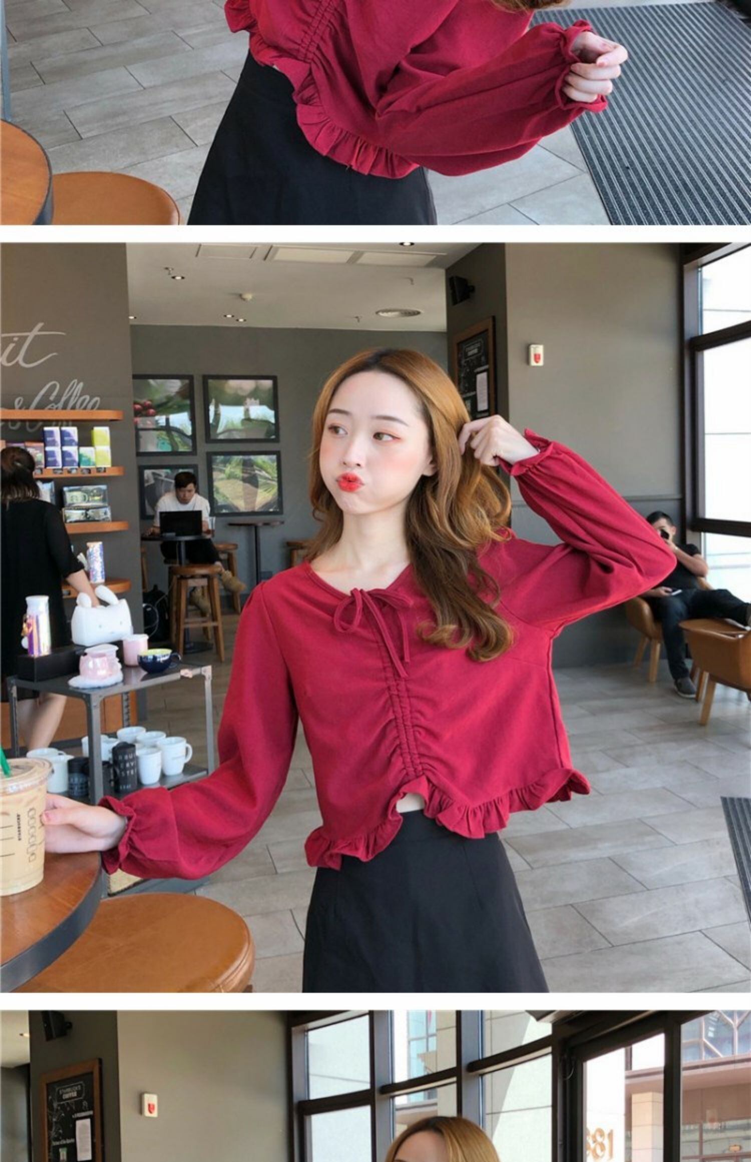 オータムVネックシャツ スタイルギャザーショートスリーブトップス 大人ガーリー スウィート キュート カジュアル 秋物 萌量不足38426773347