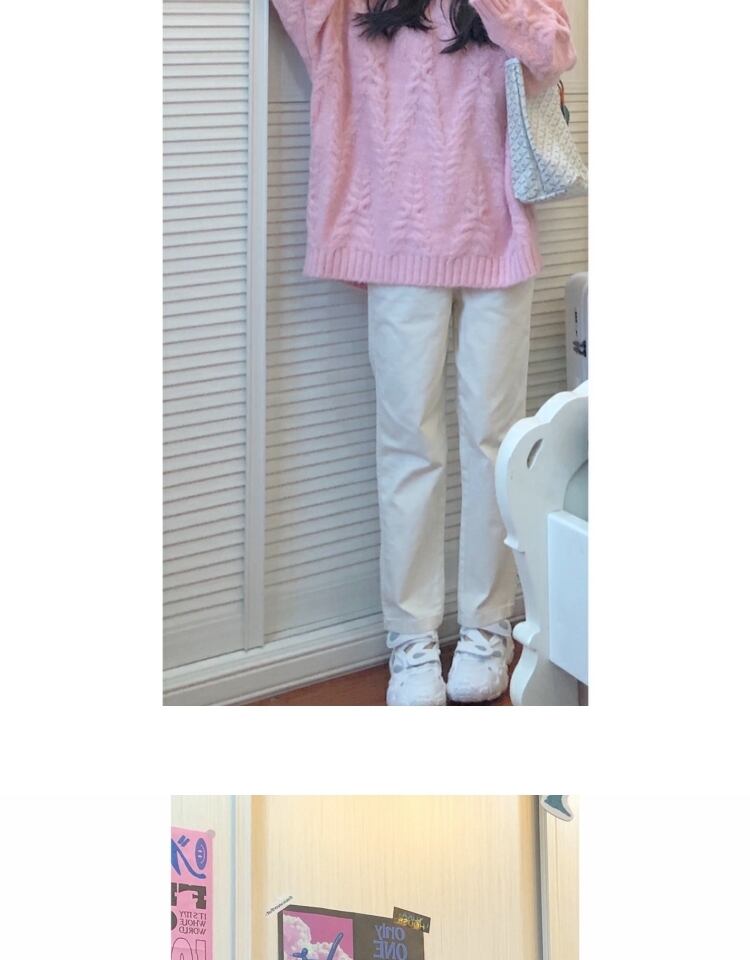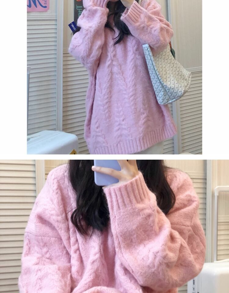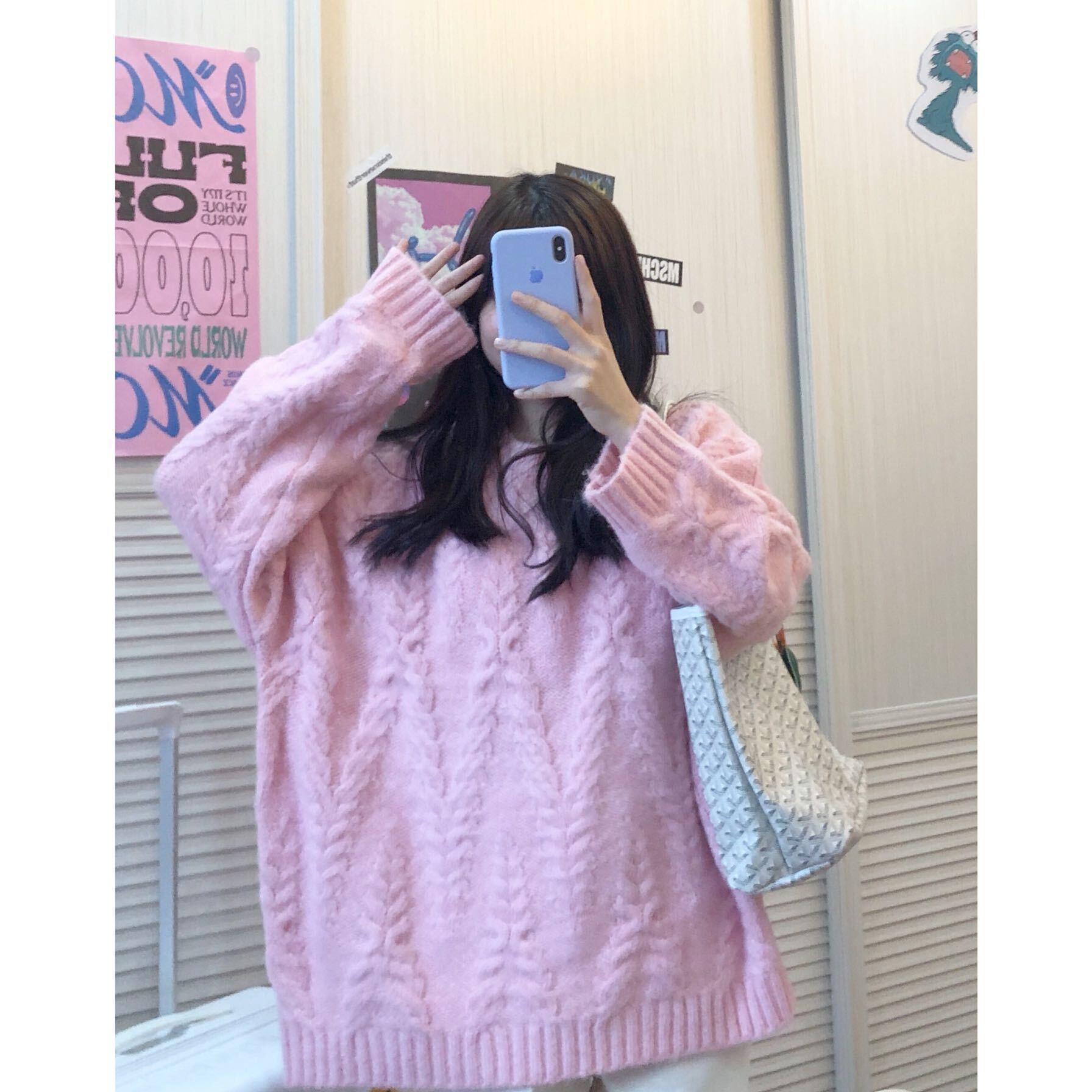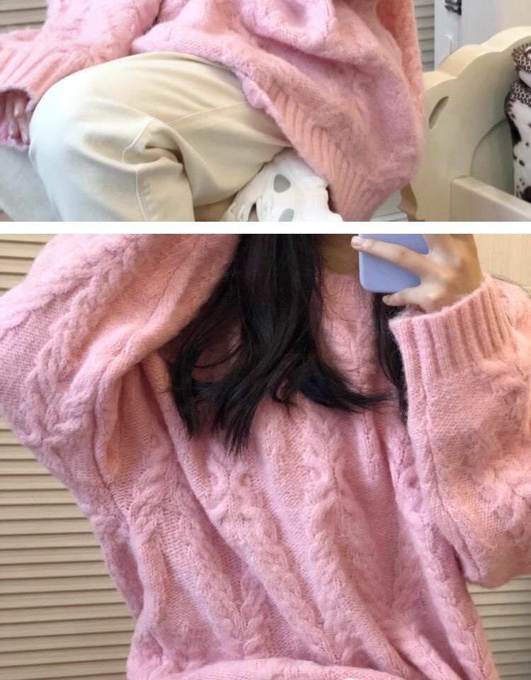 ラインルーズセーター レディースオータムウィンターニットジャケット ピンク 秋物 冬物 萌量不足50242725341