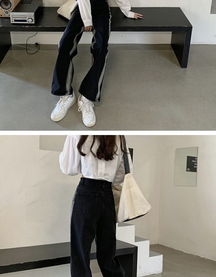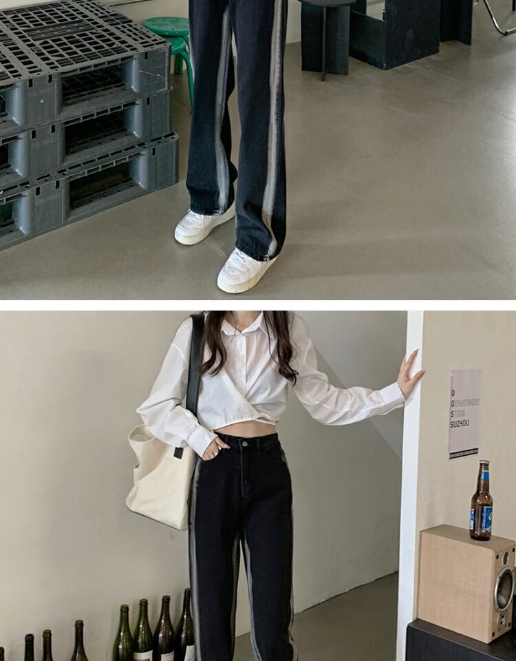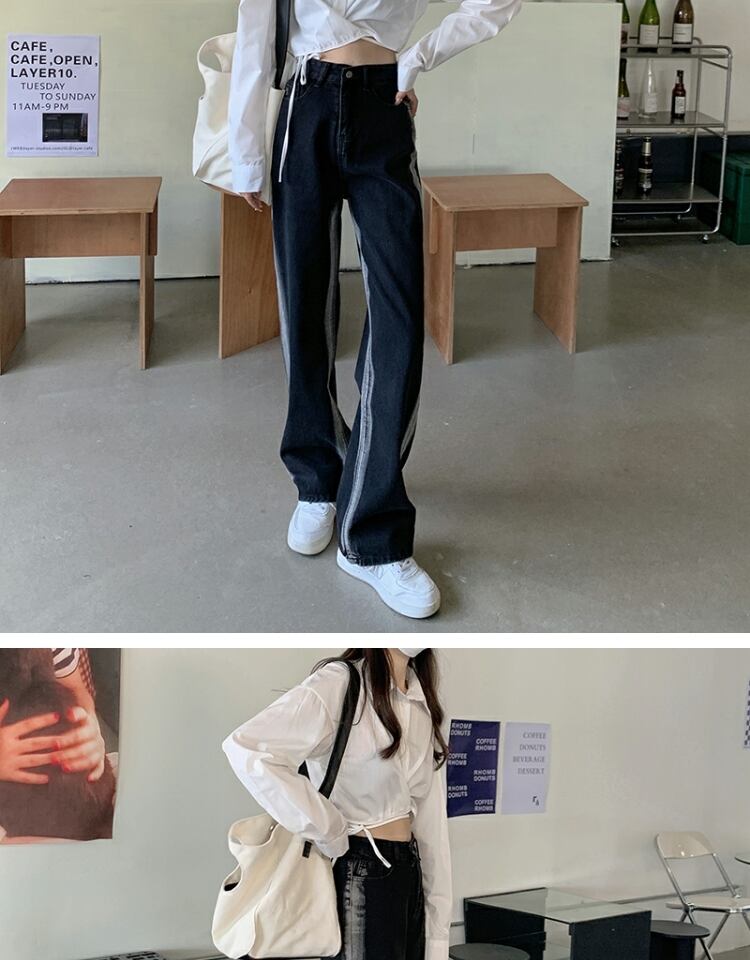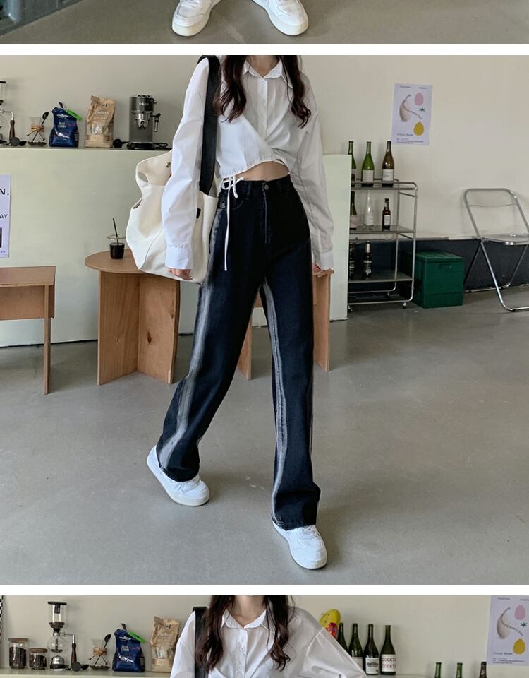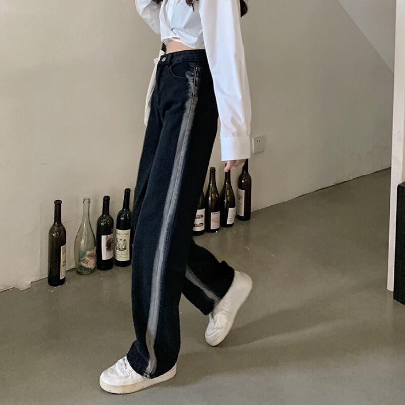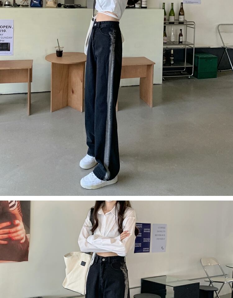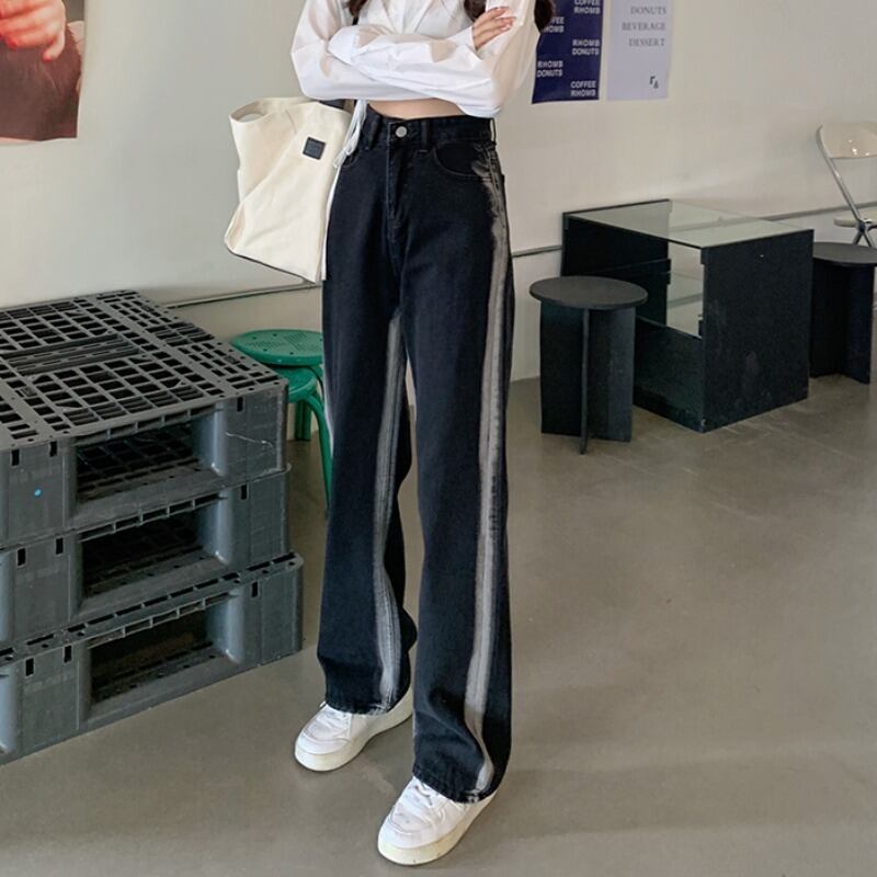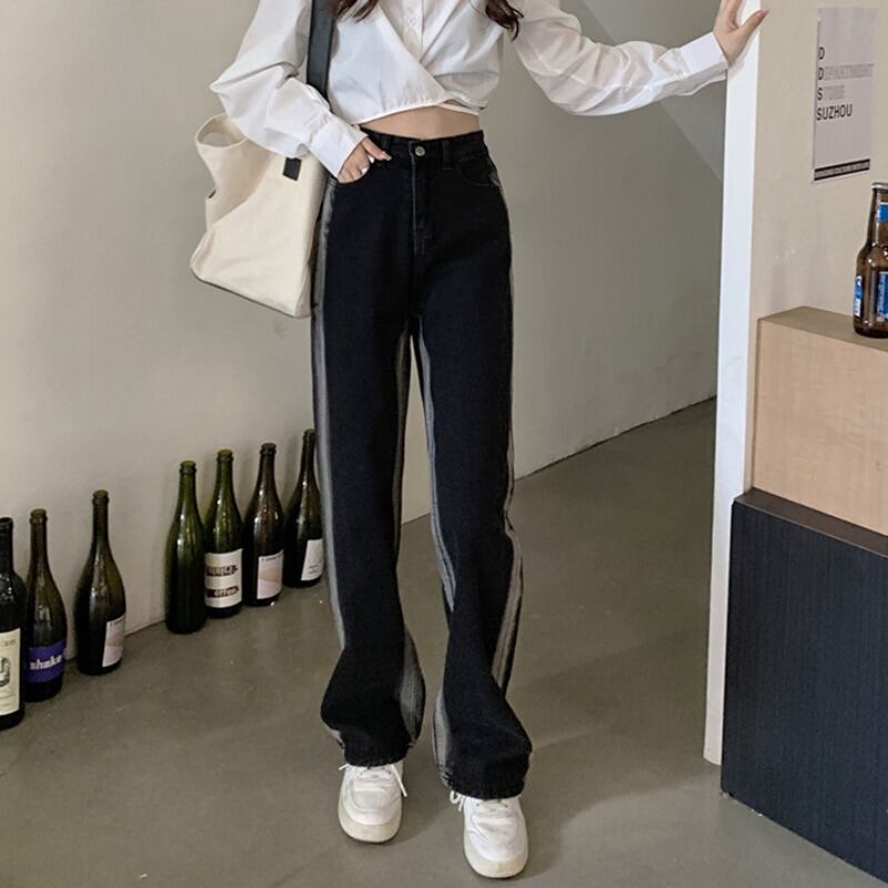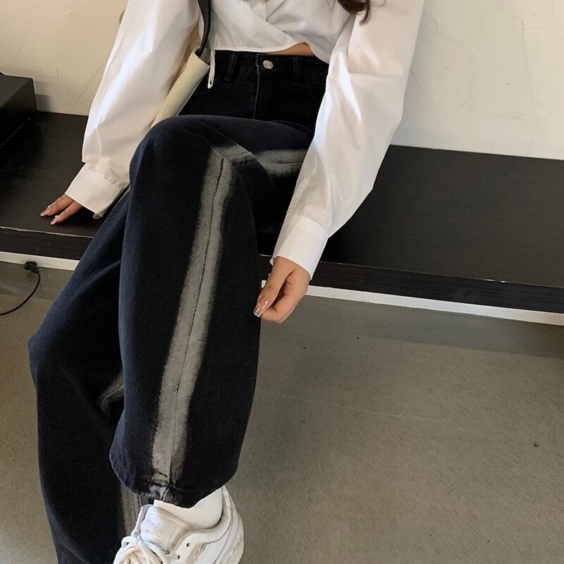 サイドブラックジーンズ オータムハイウェストウェストルーズワイドレッグパンツ 秋物 ワイドパンツ 萌量不足53028323541