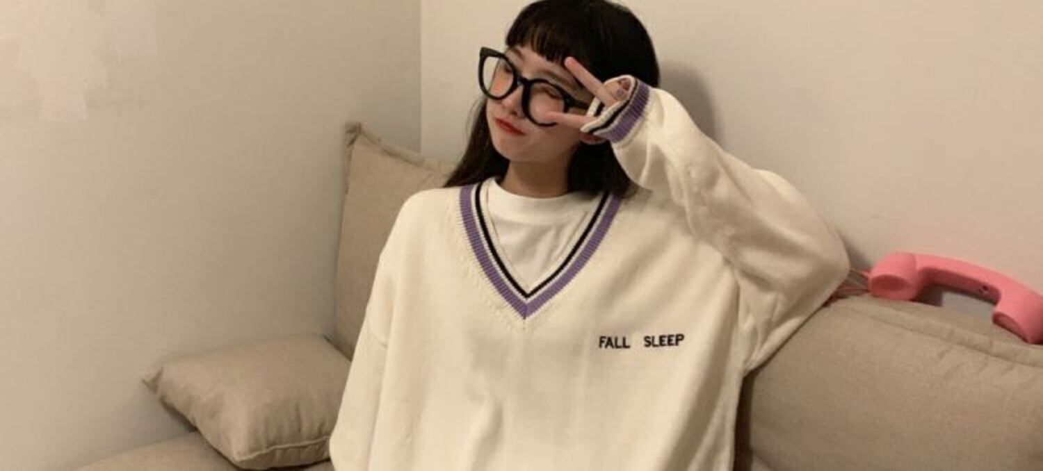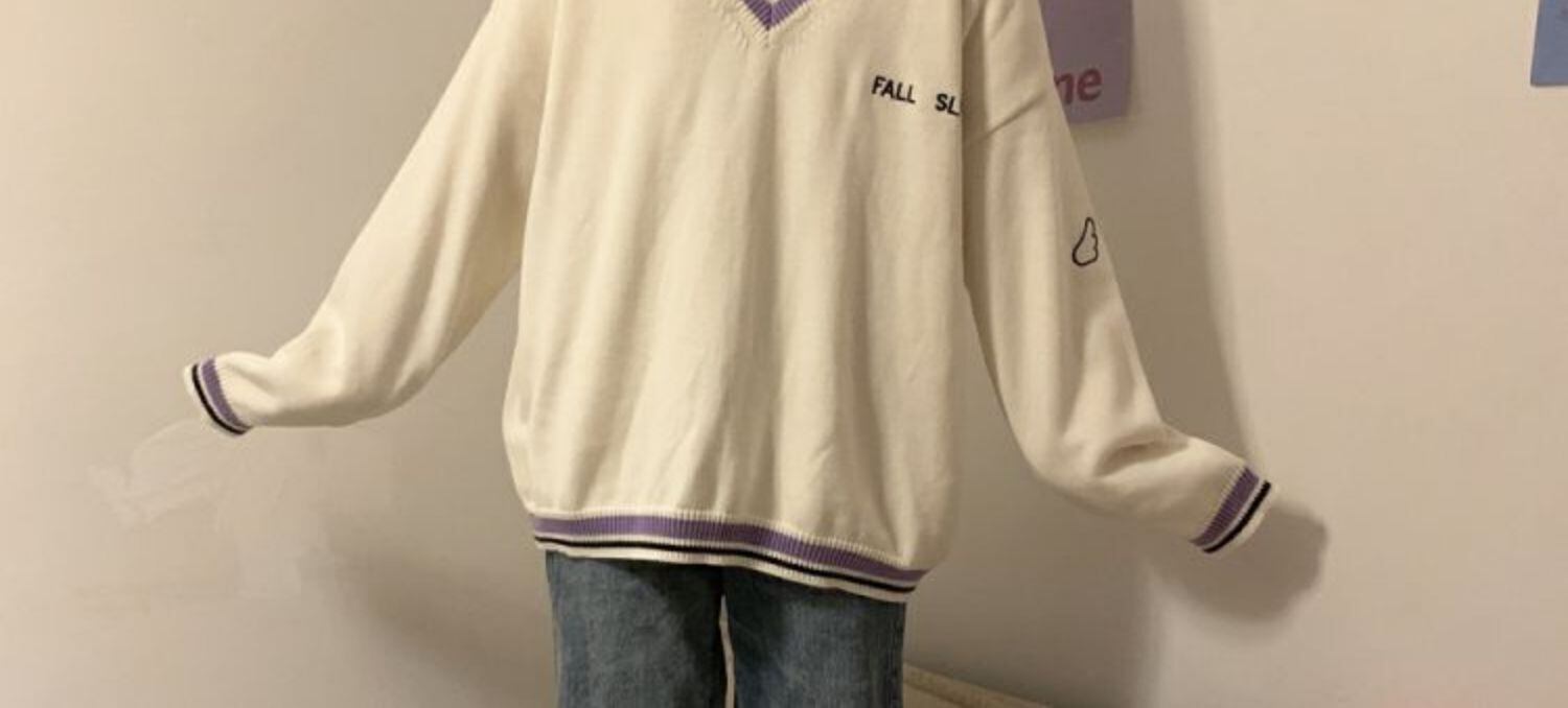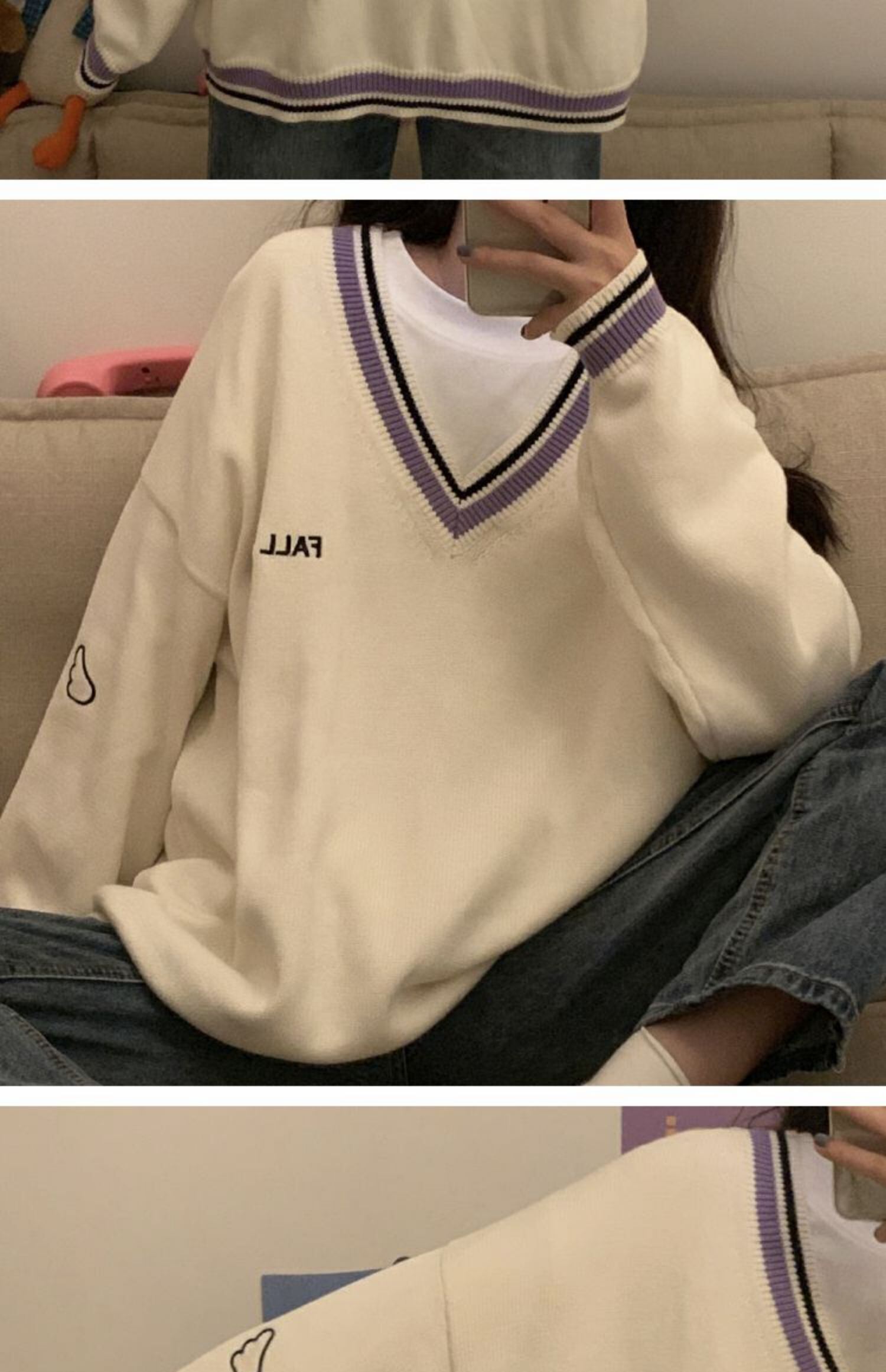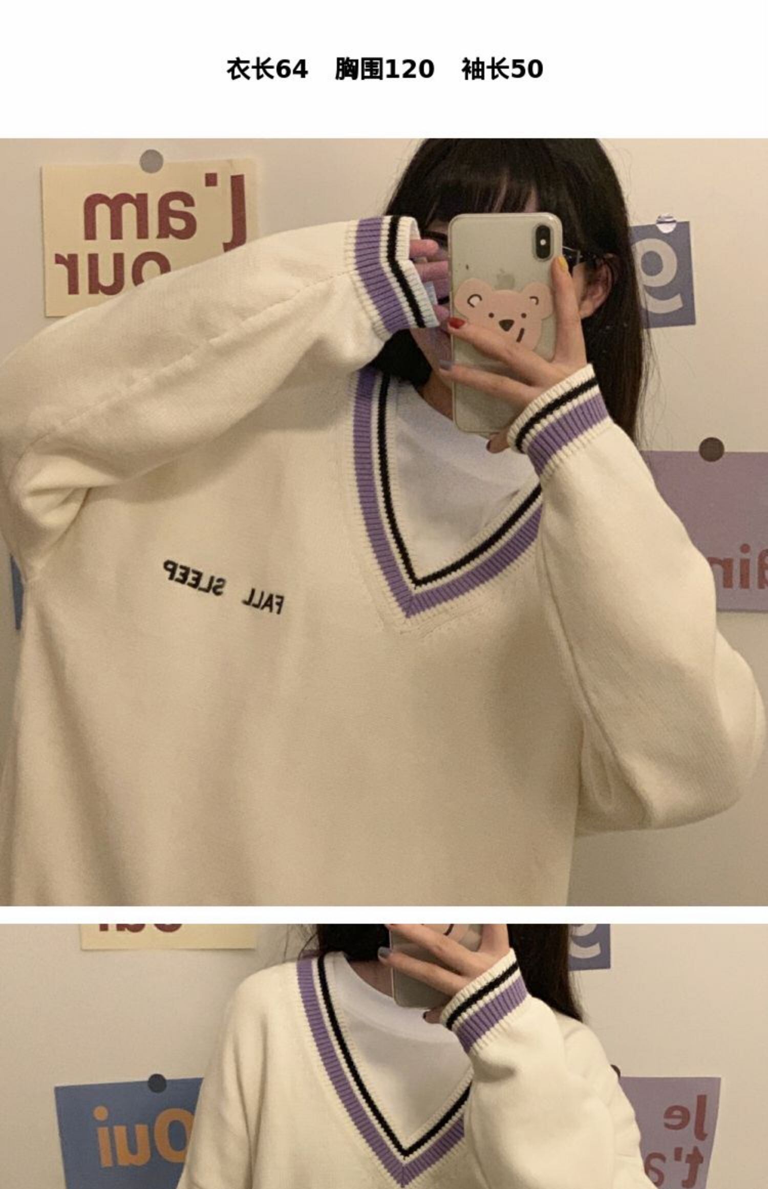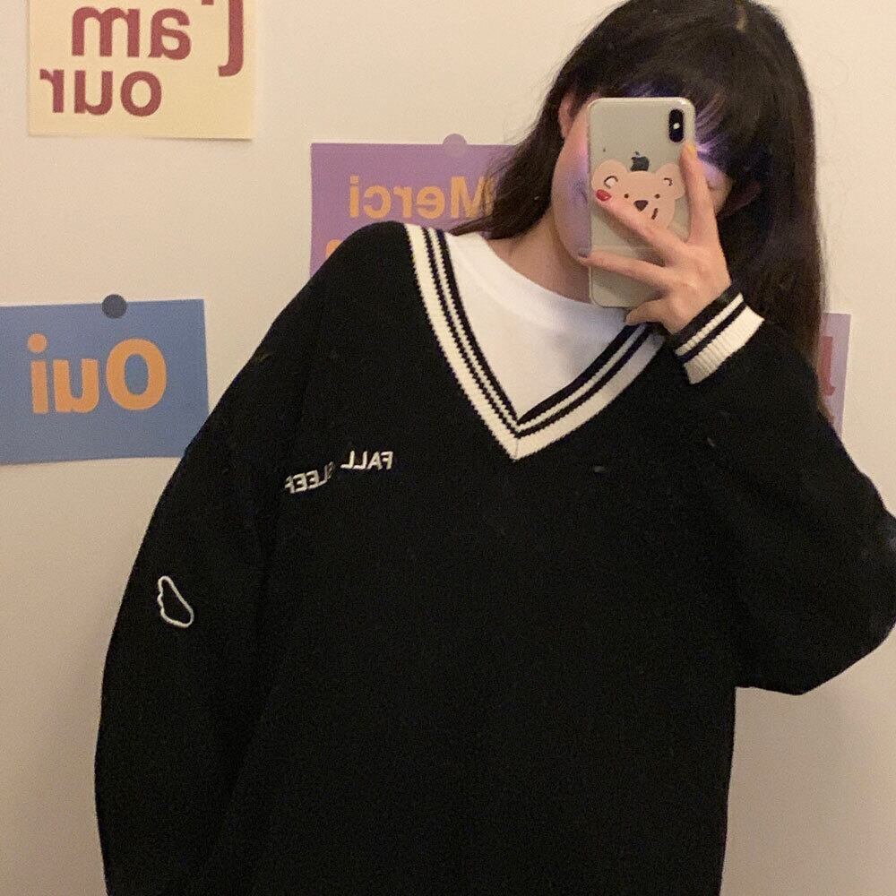 スタイルVネックプルオーバー セーター トップス ルーズオータムウィンター ロング 秋物 冬物 萌量不足24108226071
