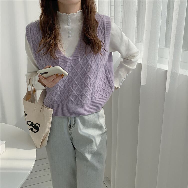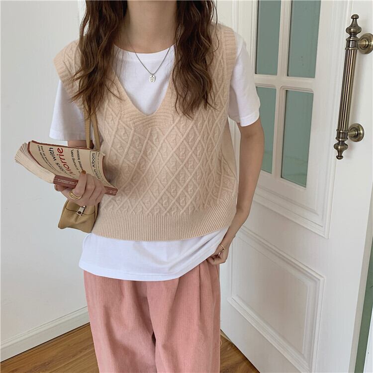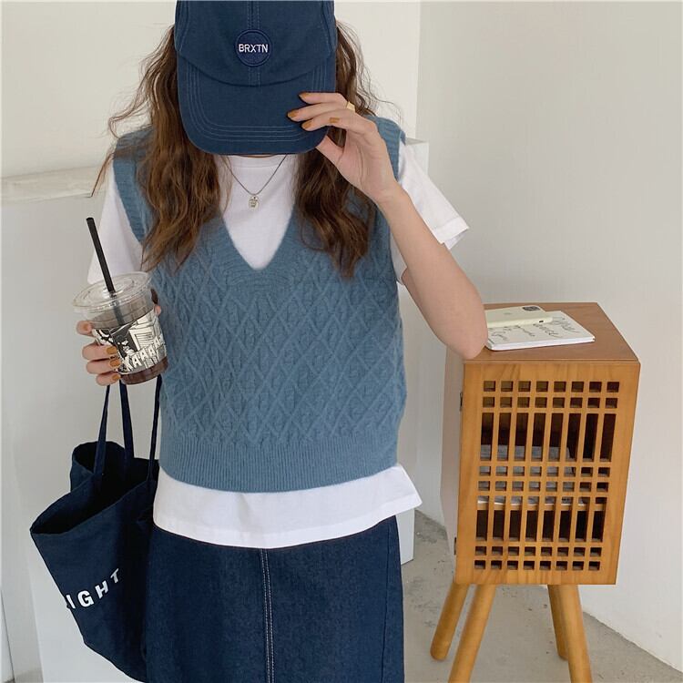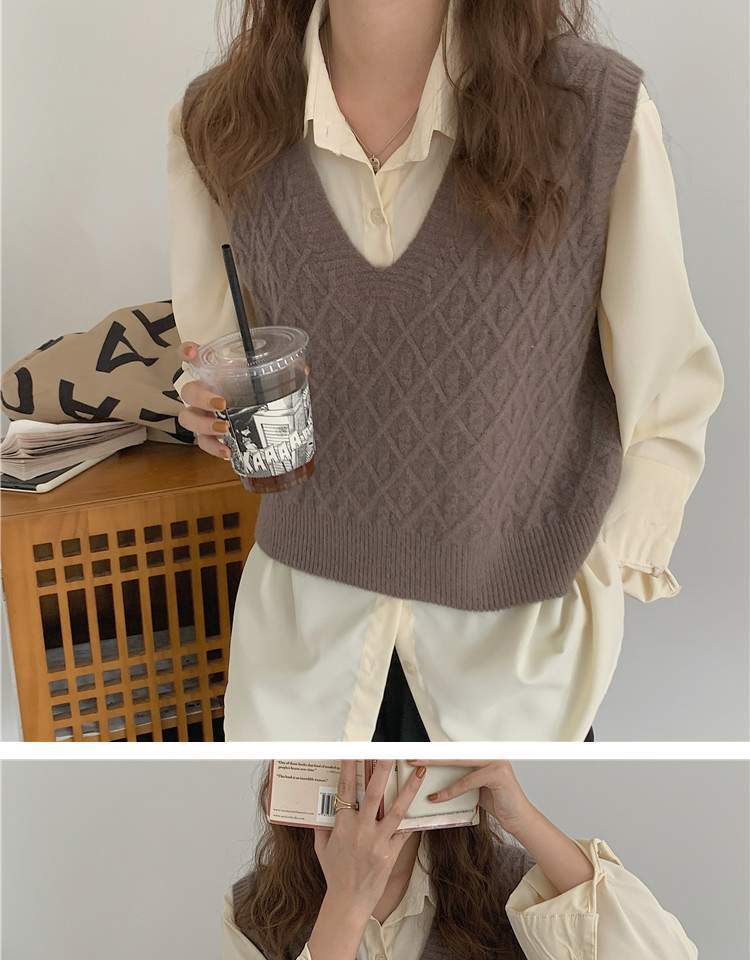 オータムスタイルVネックスタンダードショートセーター ニット レトロ ストリート 秋物 萌量不足48073987207