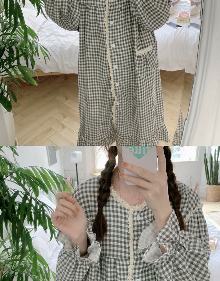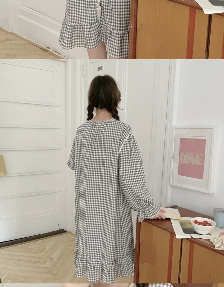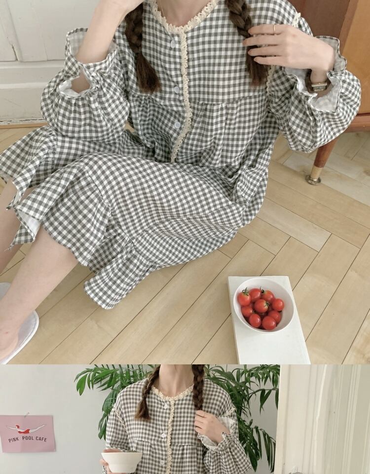格子柄レディースオータム ロング コットン 秋物 萌量不足74635884344