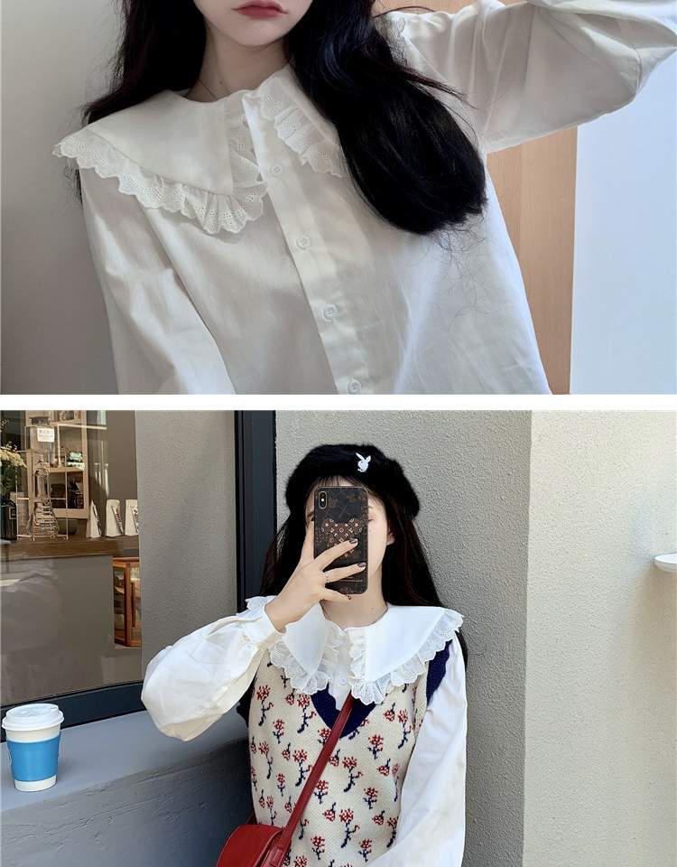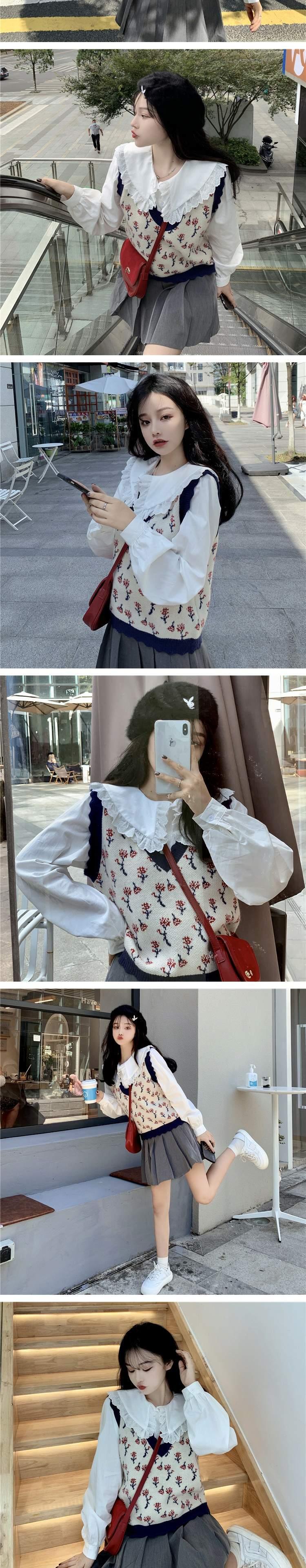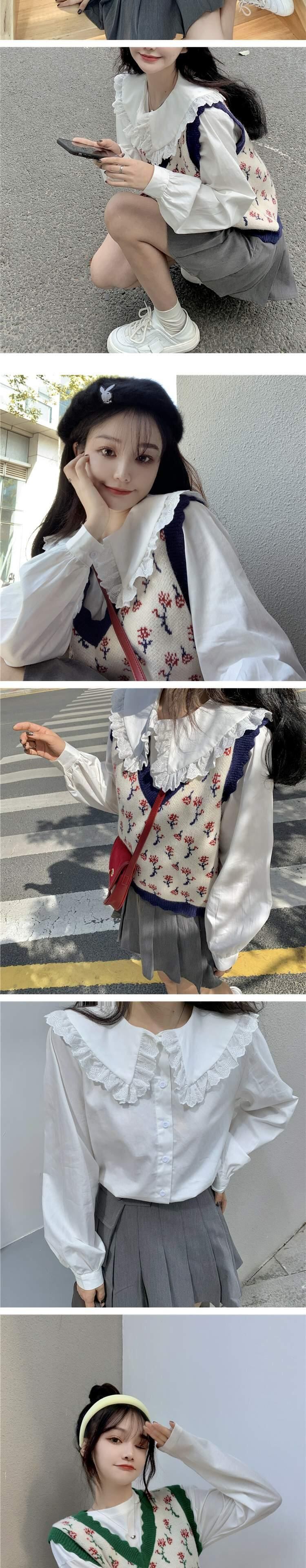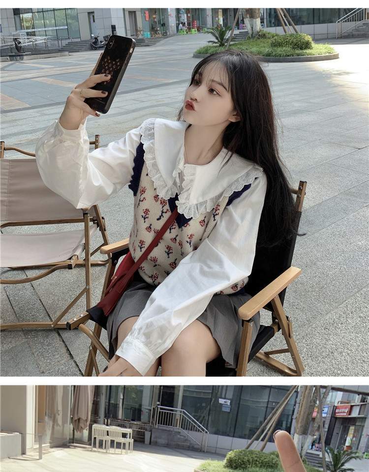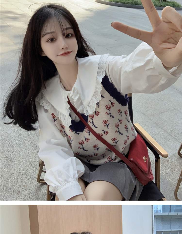 色:ヴィンテージブルーベスト,レトロなグリーンのベスト,ドールカラーレースシャツ