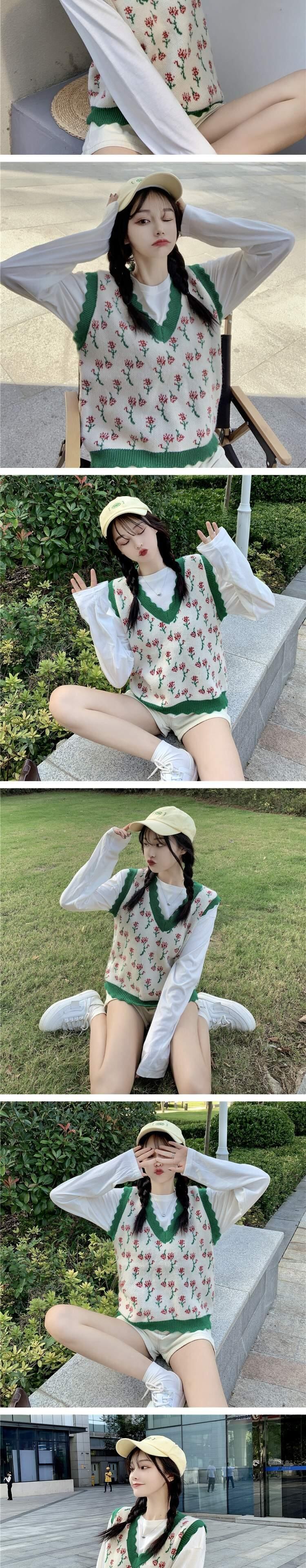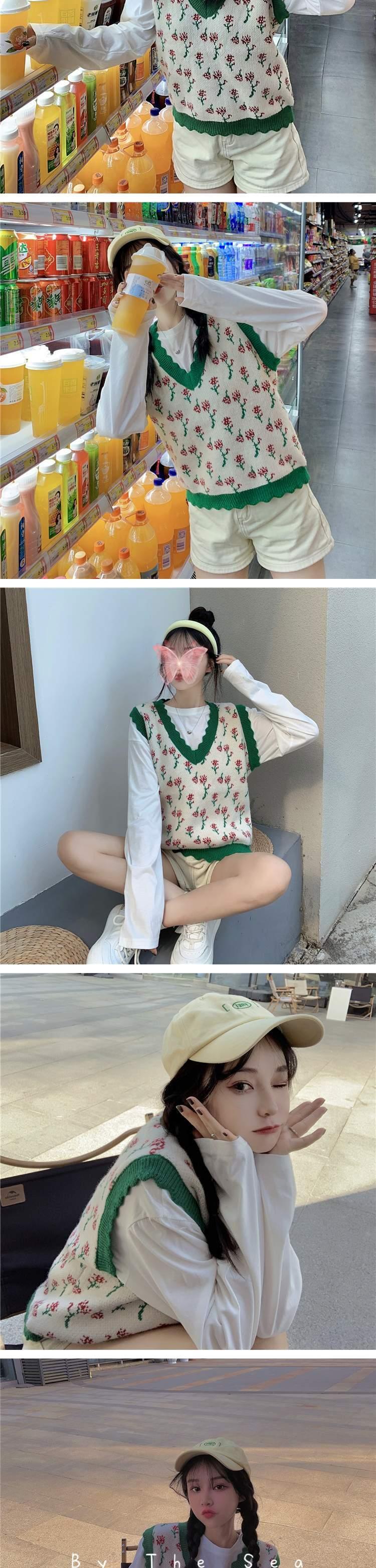 カラージャカードVネックニットセーター スプリングオータムショートトップス 春物 秋物 萌量不足29889724649