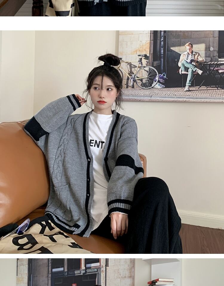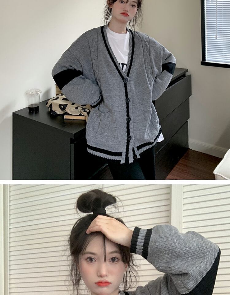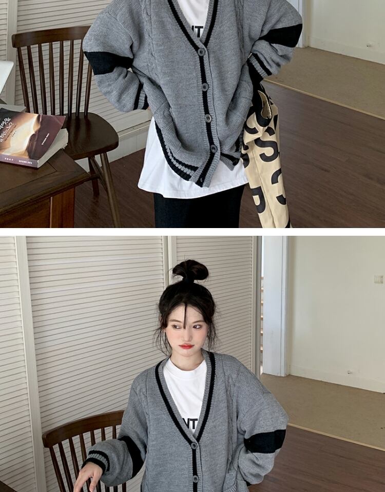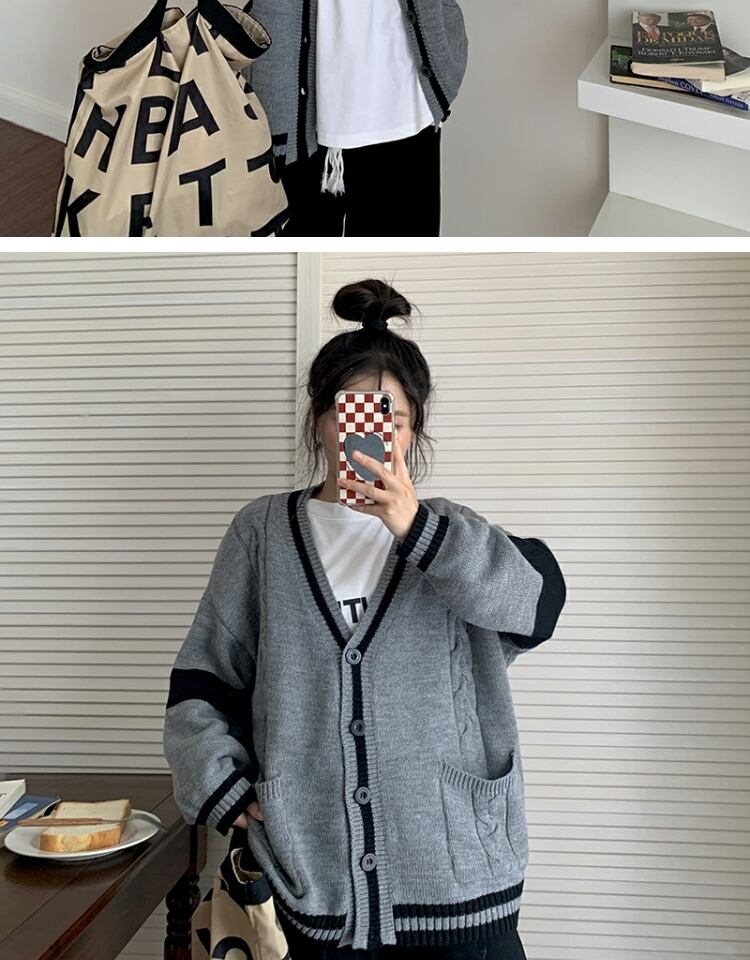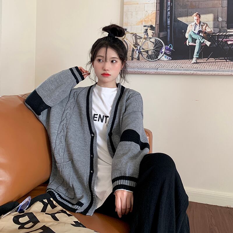 スタイルVネックセーター オータムウィンタールーズロングニットカーディガンジャケット 秋物 冬物 萌量不足60443212690