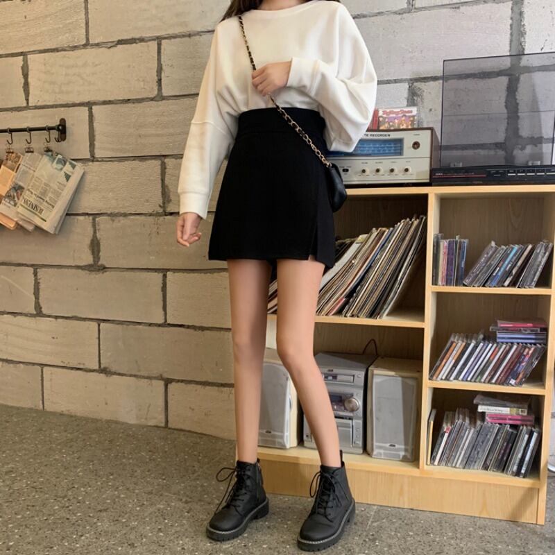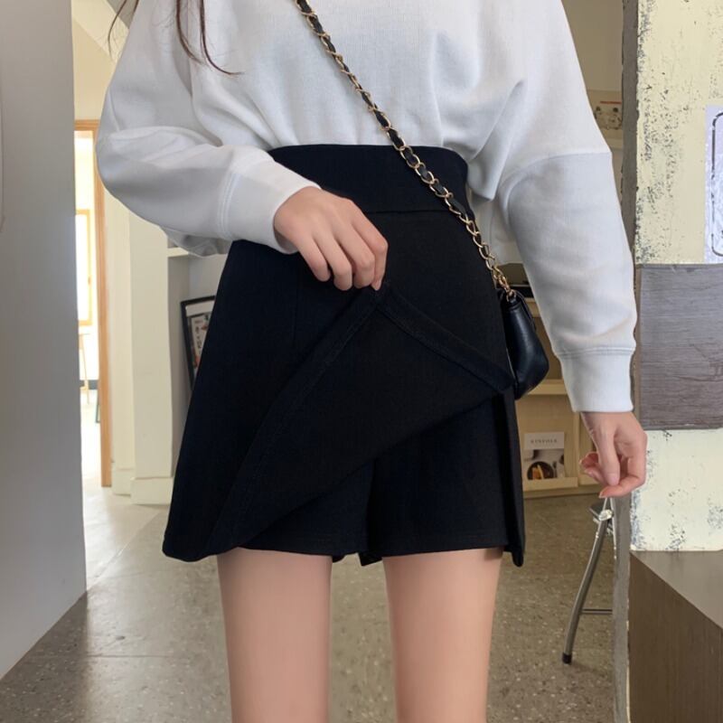 ブラックスカート オータムハイウェスト薄手ショート 秋物 萌量不足76751936192