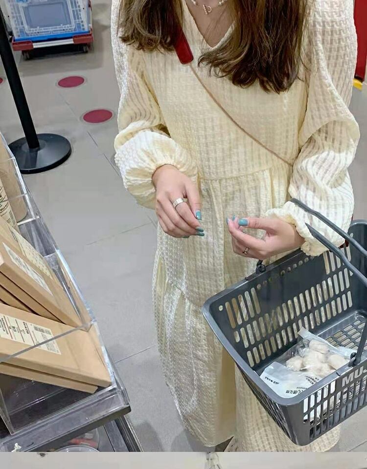 ドレス ロングスカート Vネックオータムウェスト 秋物 萌量不足28732732601