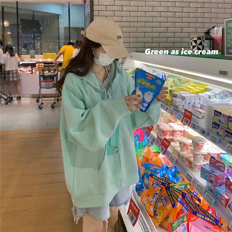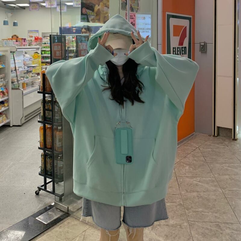 スタイルカジュアルフードセーター レディースオータムルーズジッパーカーディガンジャケット 秋物 萌量不足9391384892