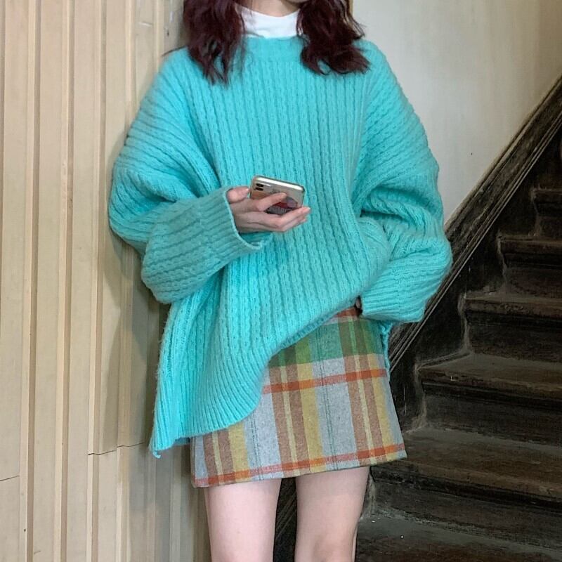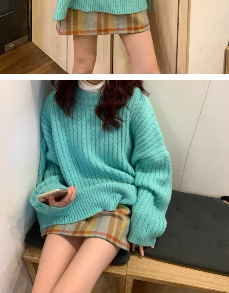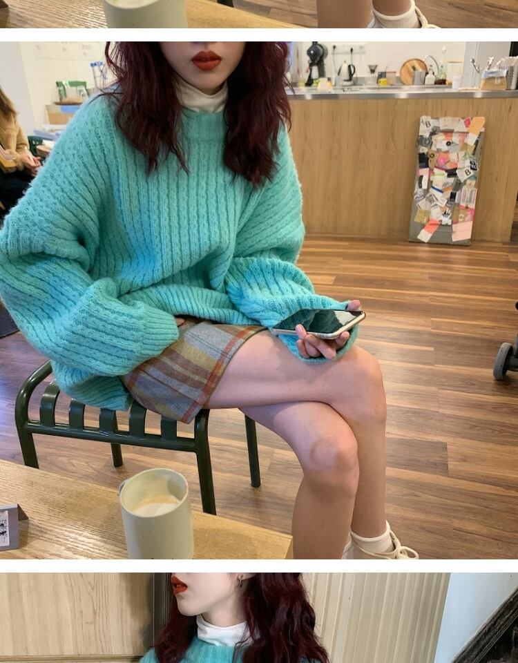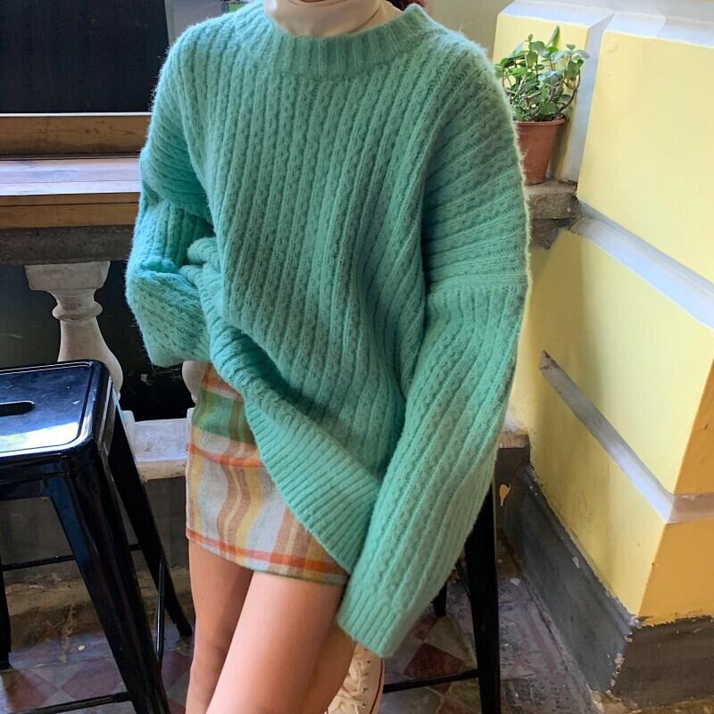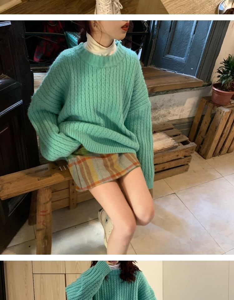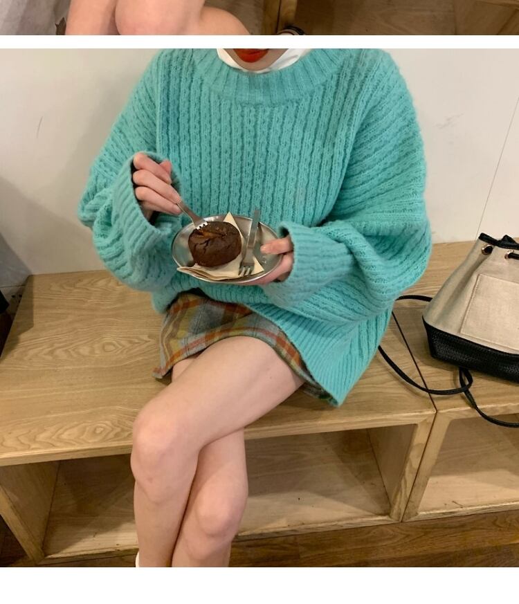 スタンダードスタイルセーター レディーススプリングオータムルーズ薄手ラウンドネックニットトップス レトロ 春物 秋物 Oネック 萌量不足91205810697