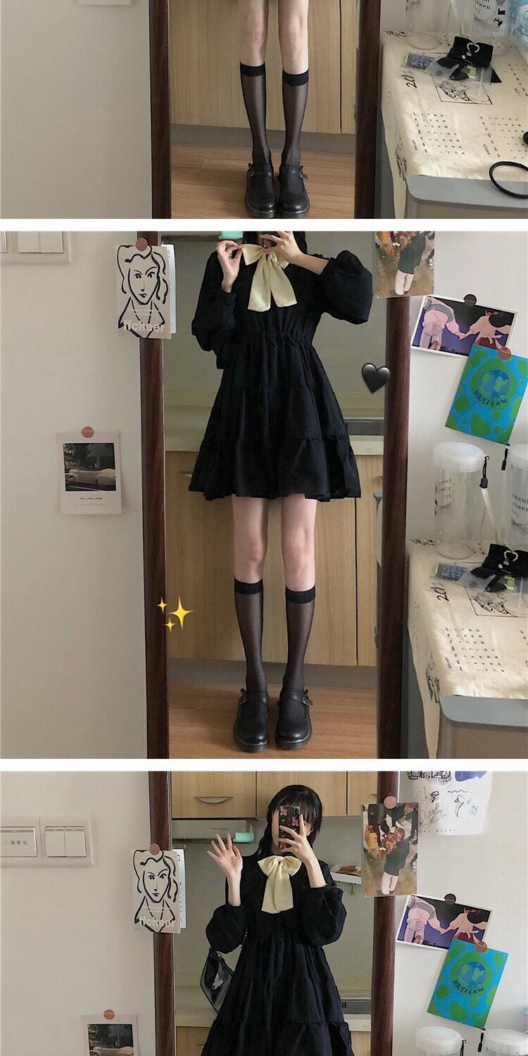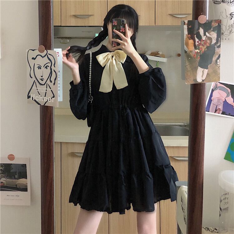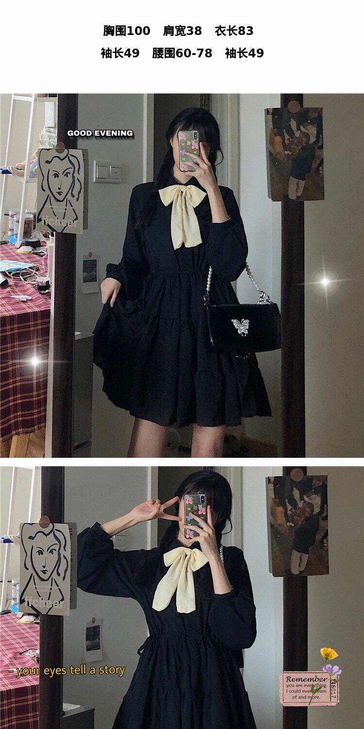 ドレス ブラックスプリングオータム長袖スリーブスカート ロング 大人ガーリー スウィート キュート カジュアル 春物 秋物 萌量不足197842666