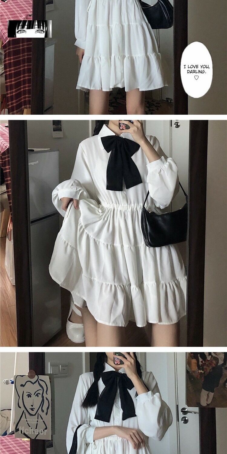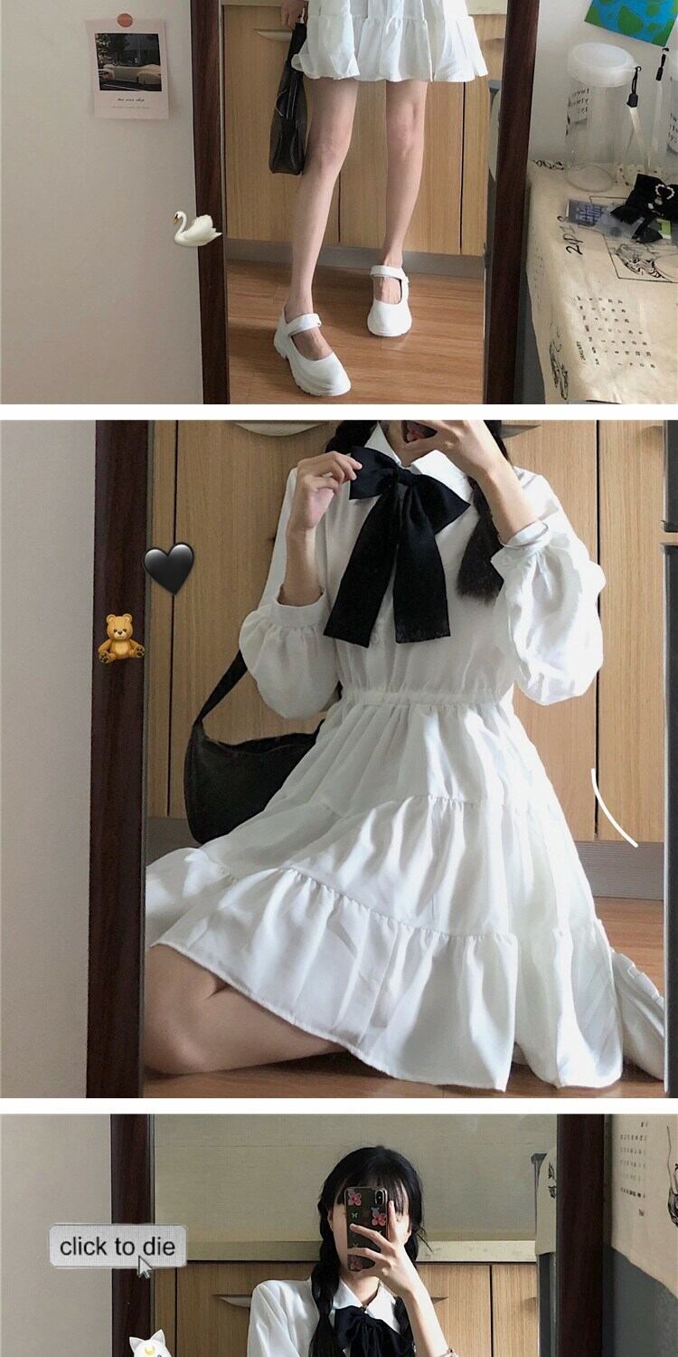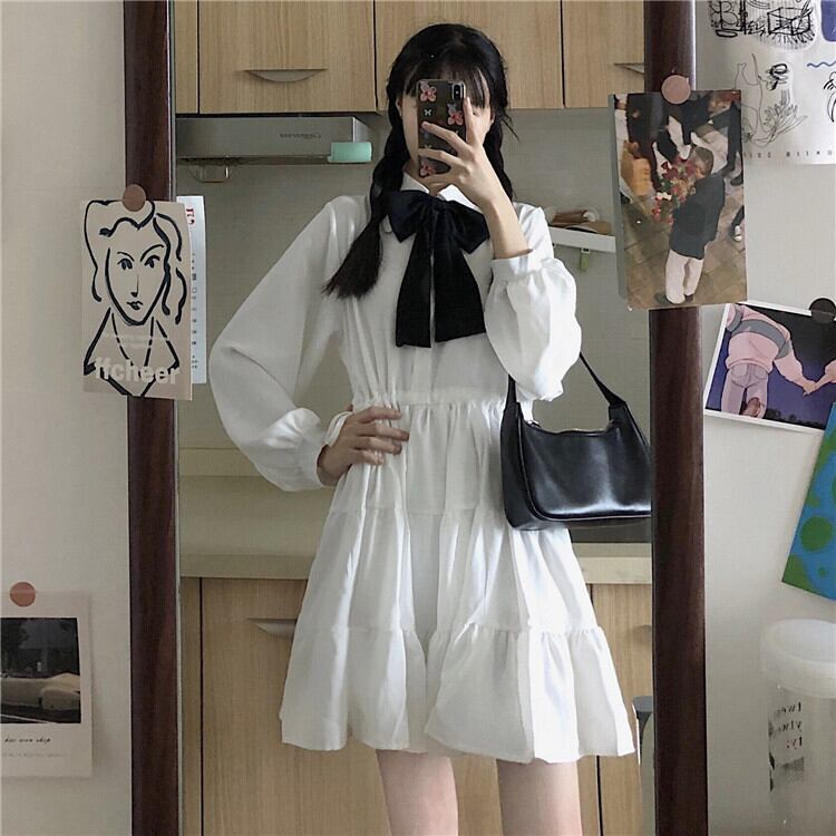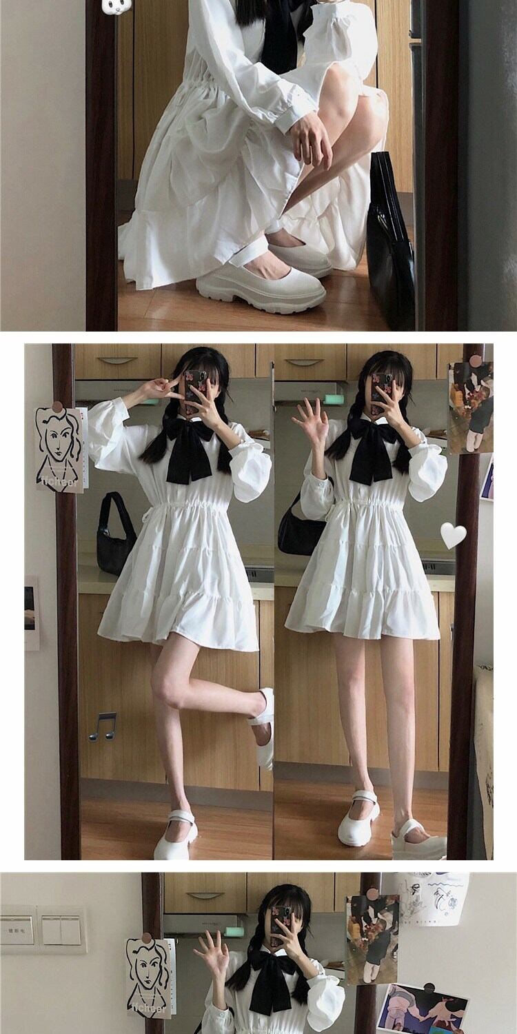 ドレス ブラックスプリングオータム長袖スリーブスカート ロング 大人ガーリー スウィート キュート カジュアル 春物 秋物 萌量不足197842666