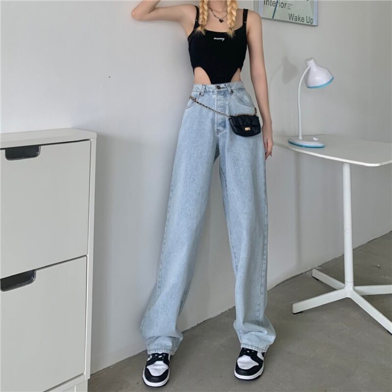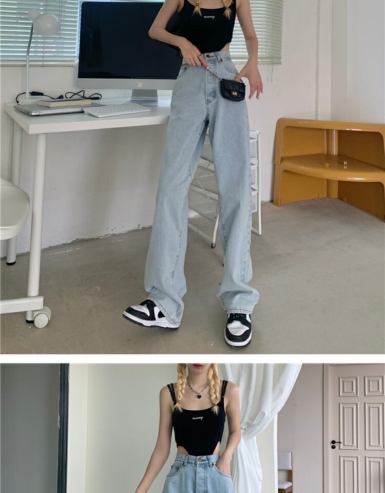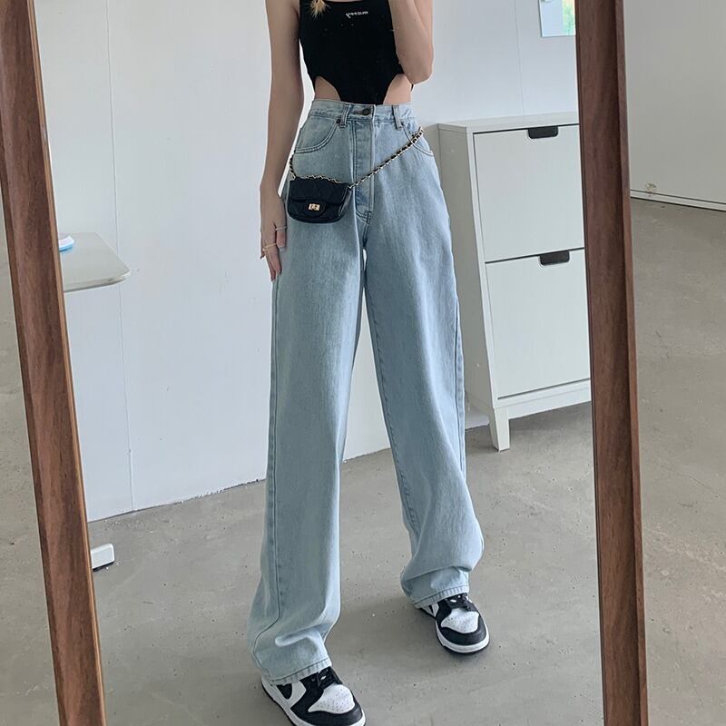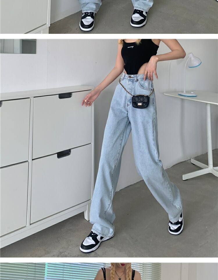 ハイウェストジーンズ サマー薄手パンツ ルーズオータム レッド 夏物 秋物 萌量不足18397905562